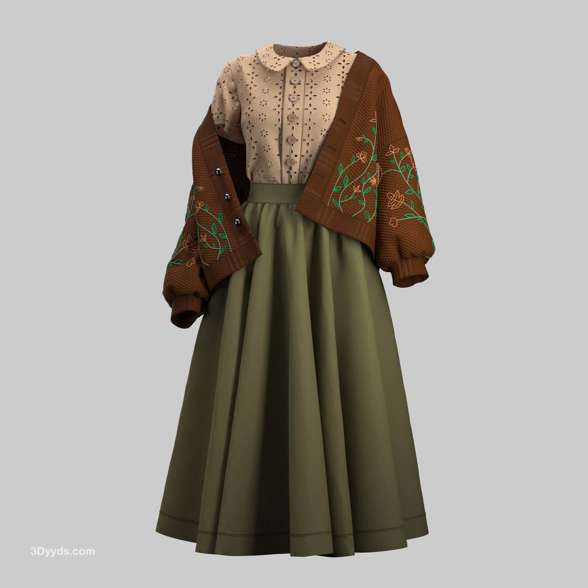 MD606-女士古典毛衣长裙子套装