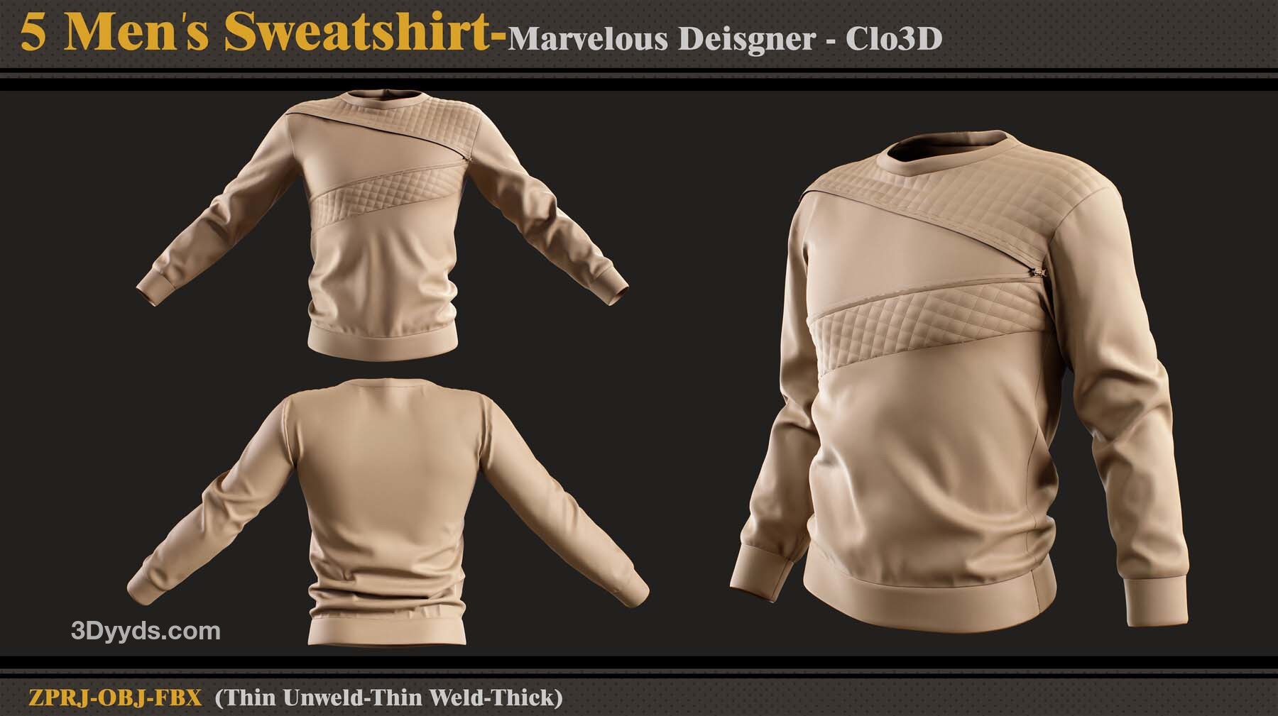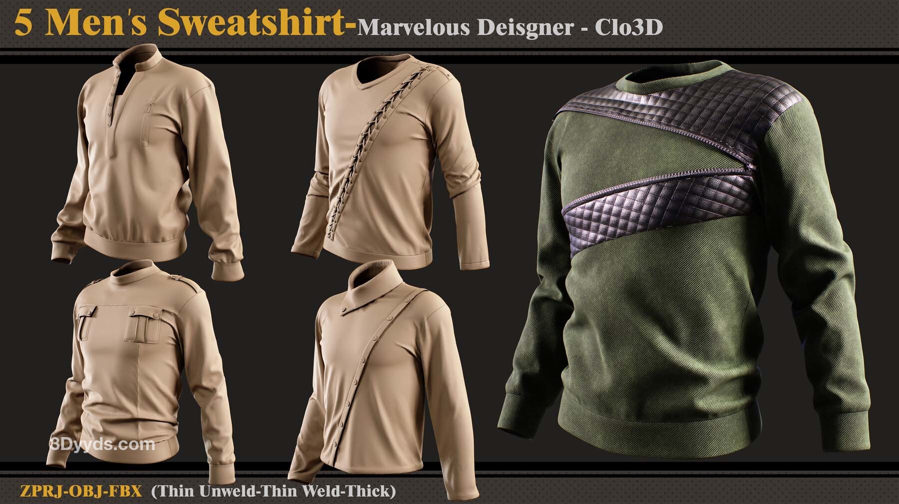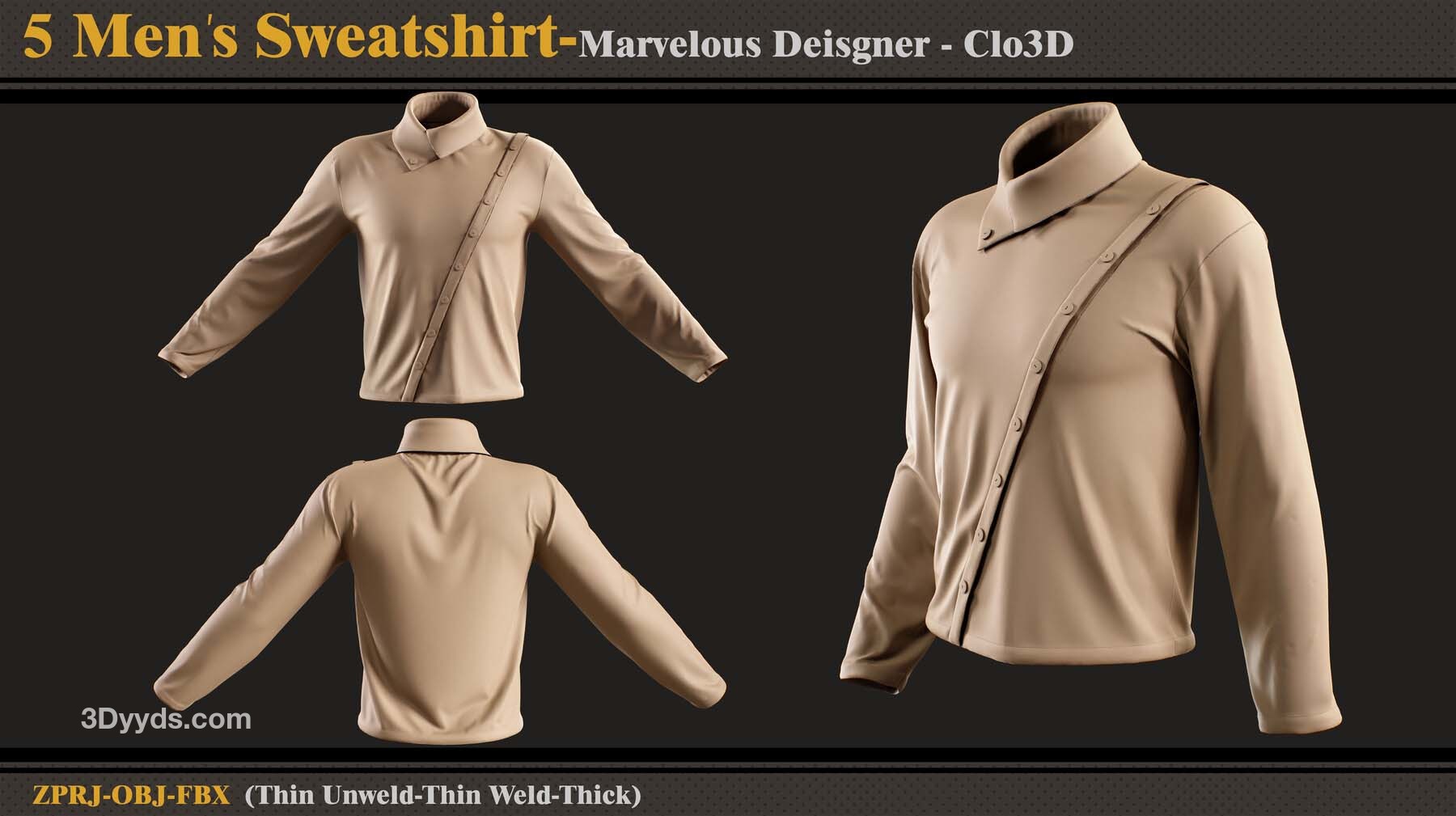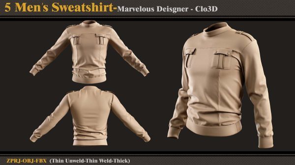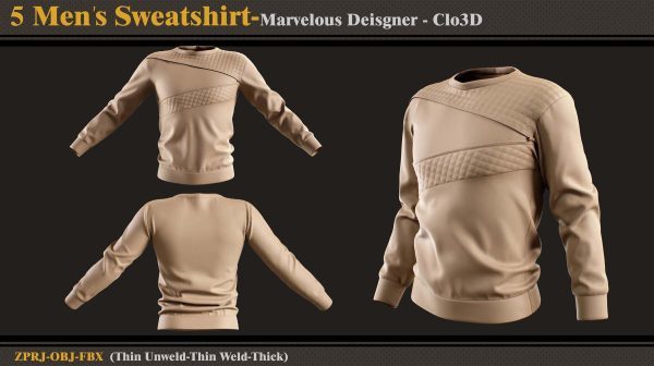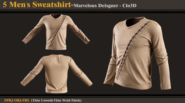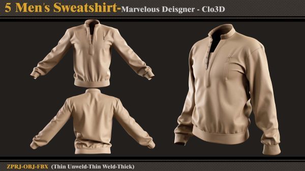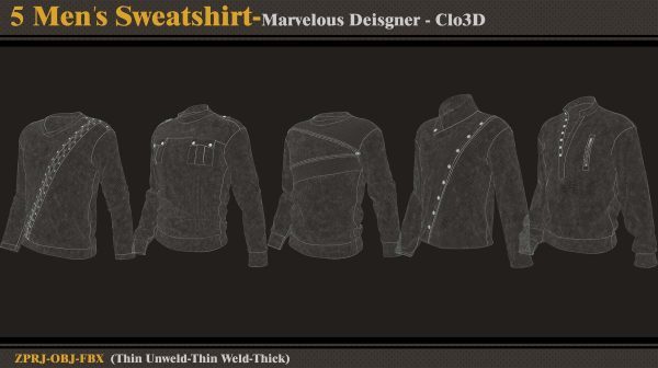 本产品包含 5 件男士运动衫和 5 个文件。在每个文件中,有: