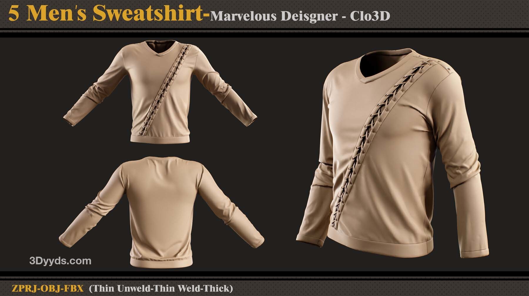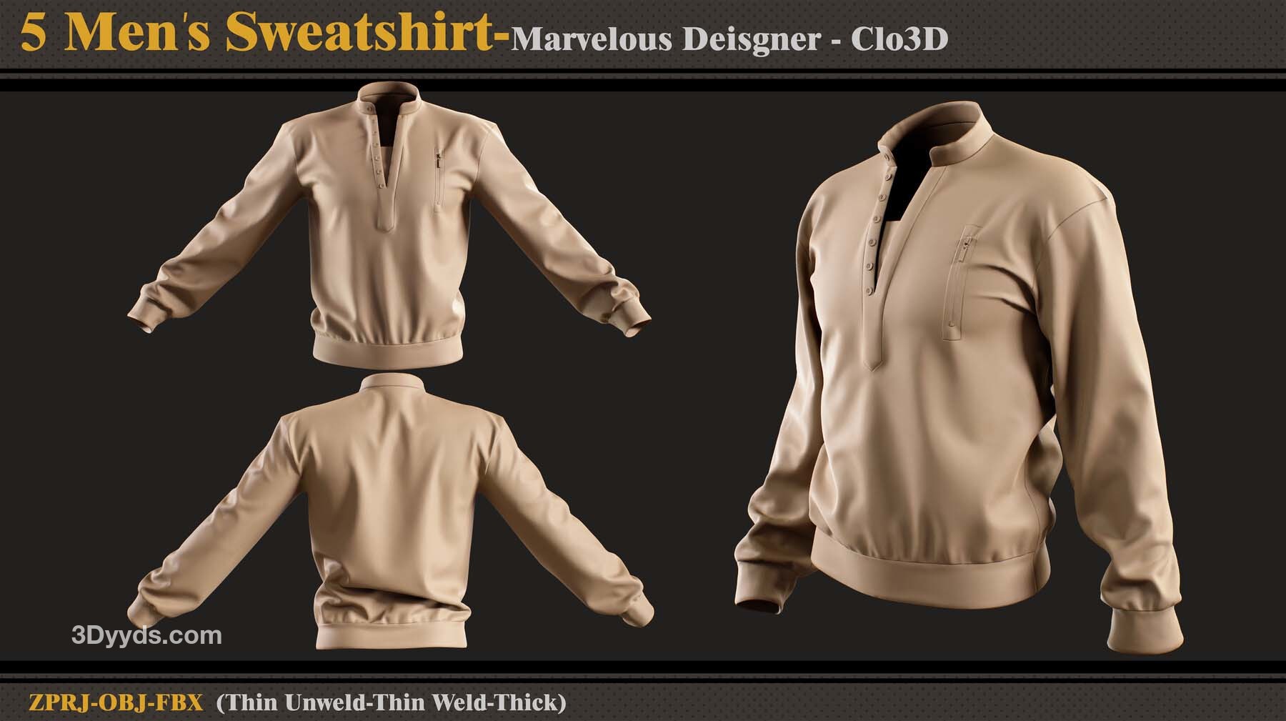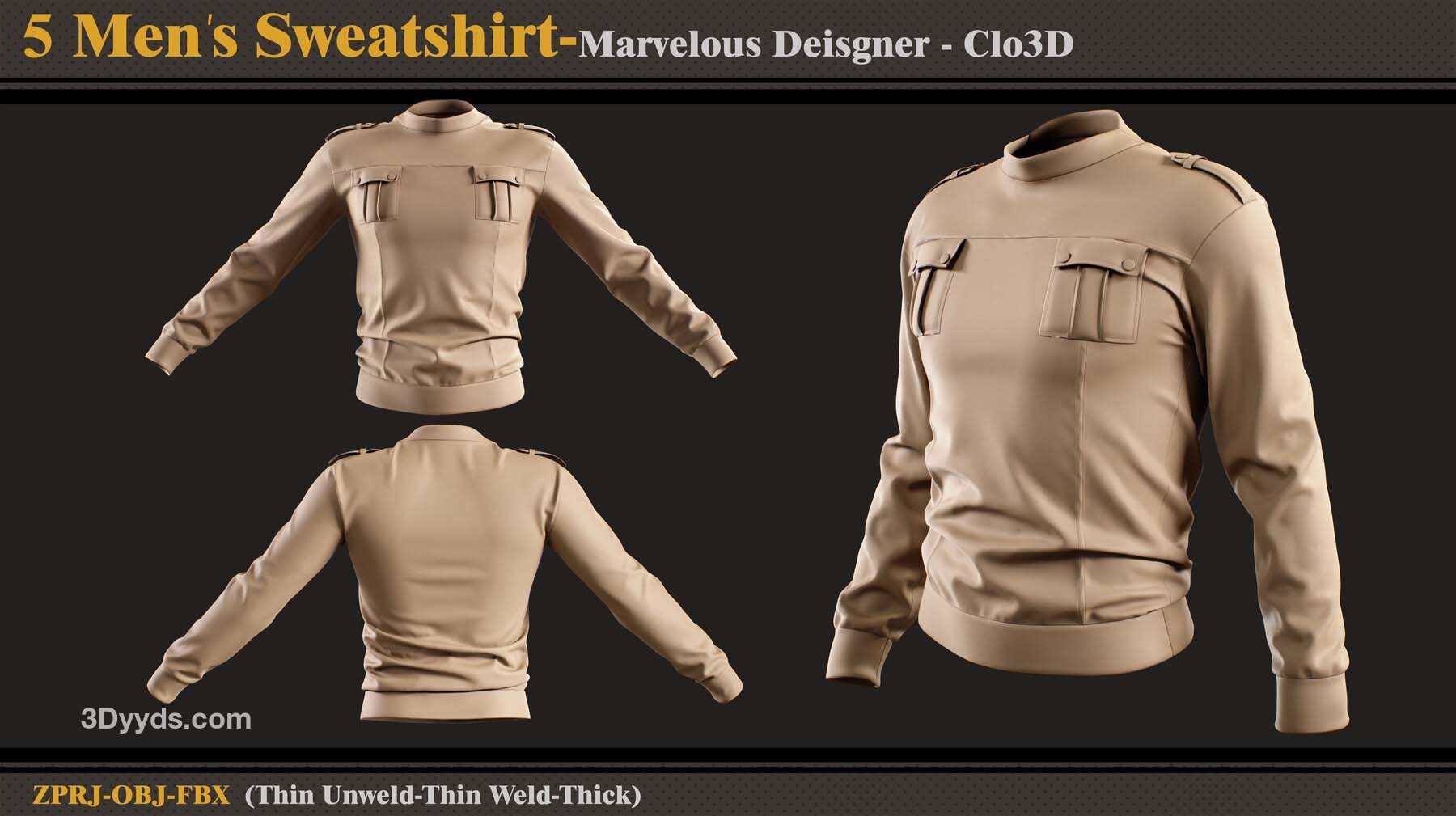 本产品包含 5 件男士运动衫和 5 个文件。在每个文件中,有:
