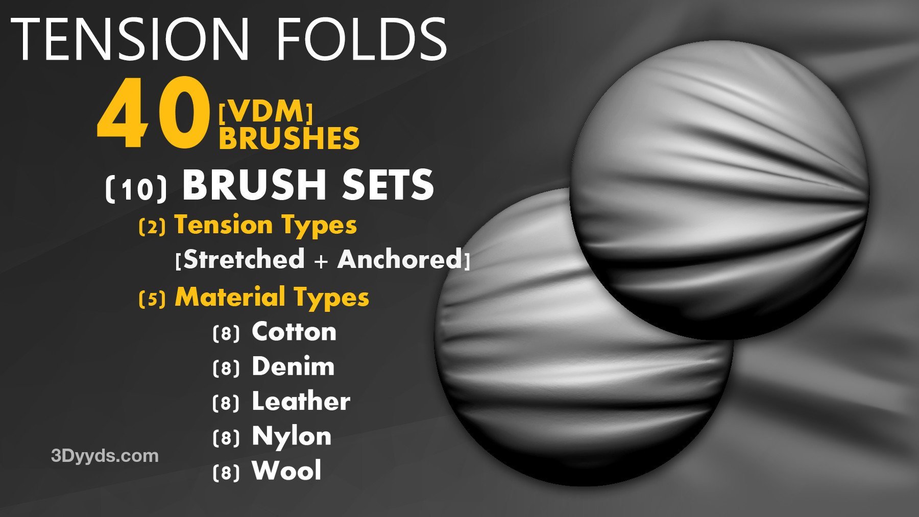 zbrush女性牛仔裤衣服褶皱皮革布料裤子压痕VDM笔刷