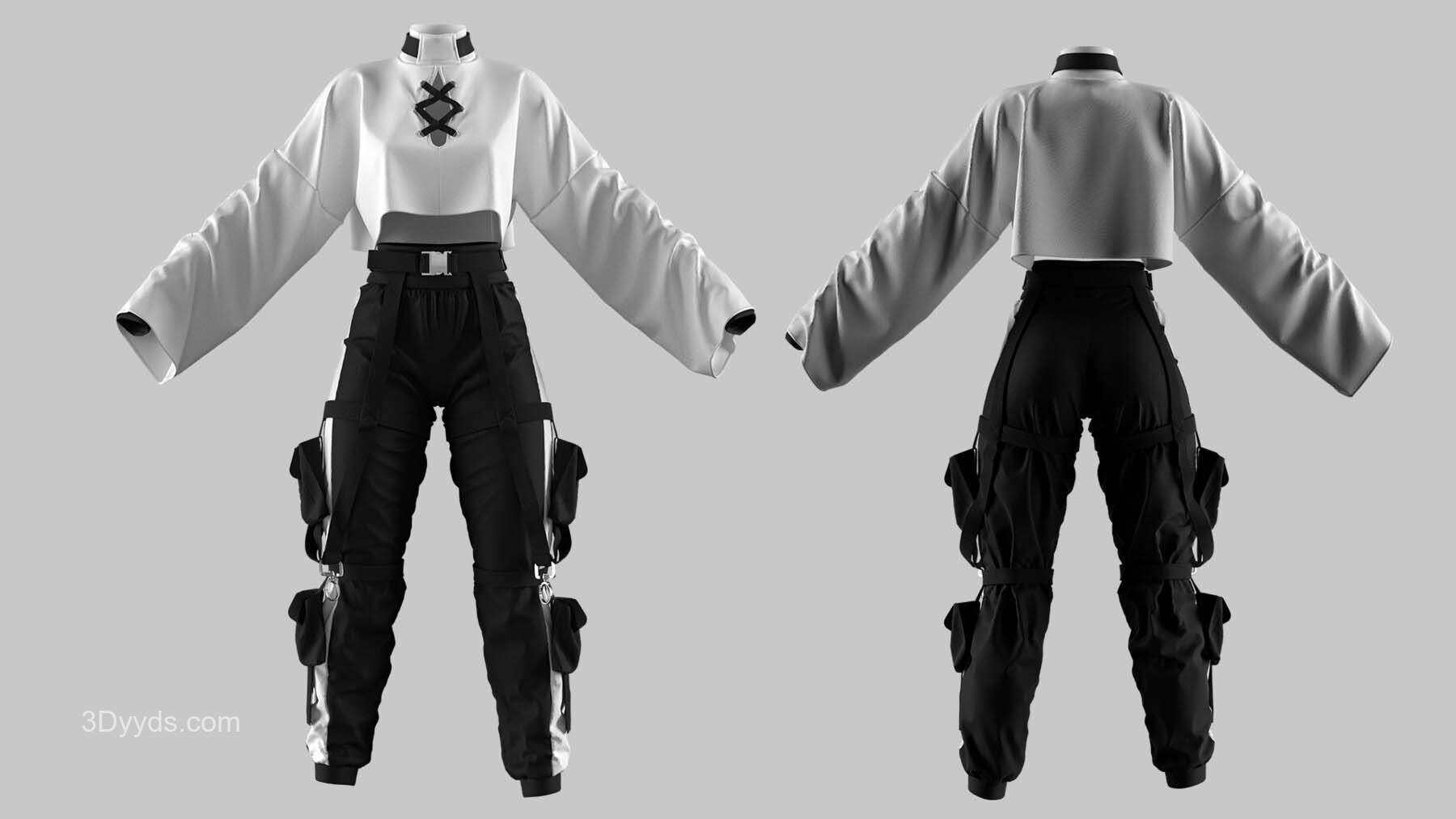 高多边形模型 - Clo3D,Marvelous Designer 项目 - OBJ - FBX - 三角形几何 - 无重新拓扑 - A 姿势