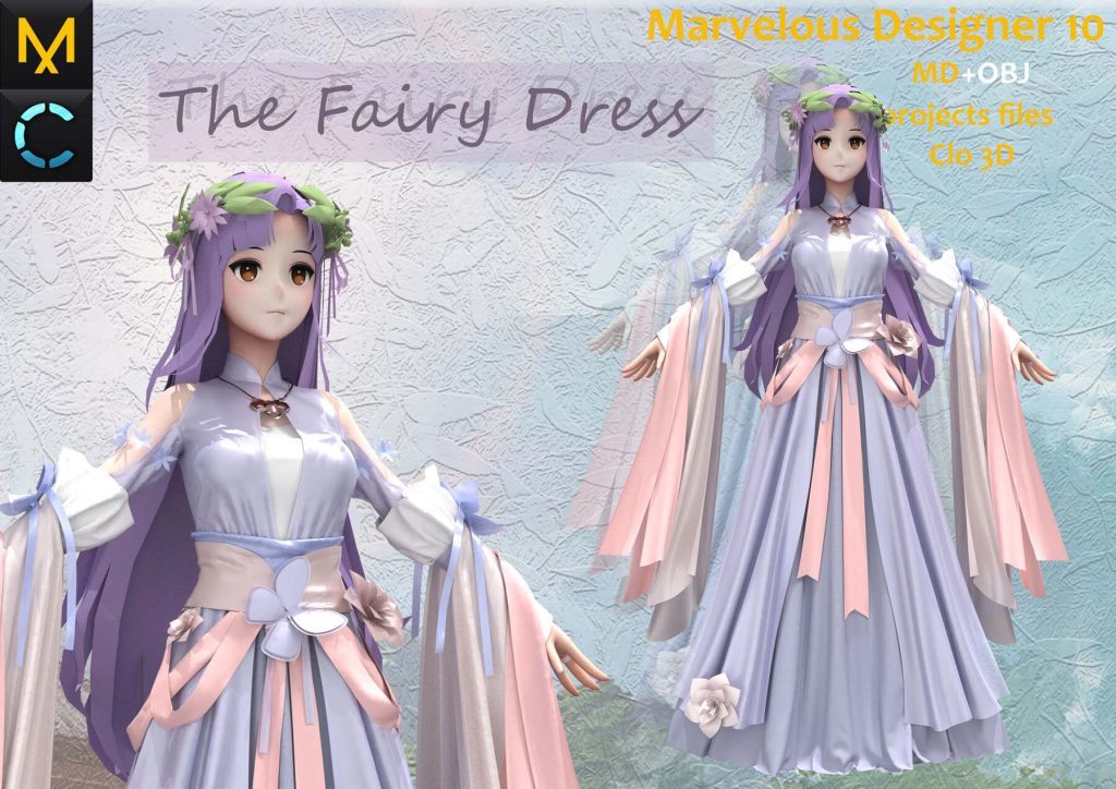 MD656-中国风古风仙女连衣裙子CLO3D衣服ZPRJ