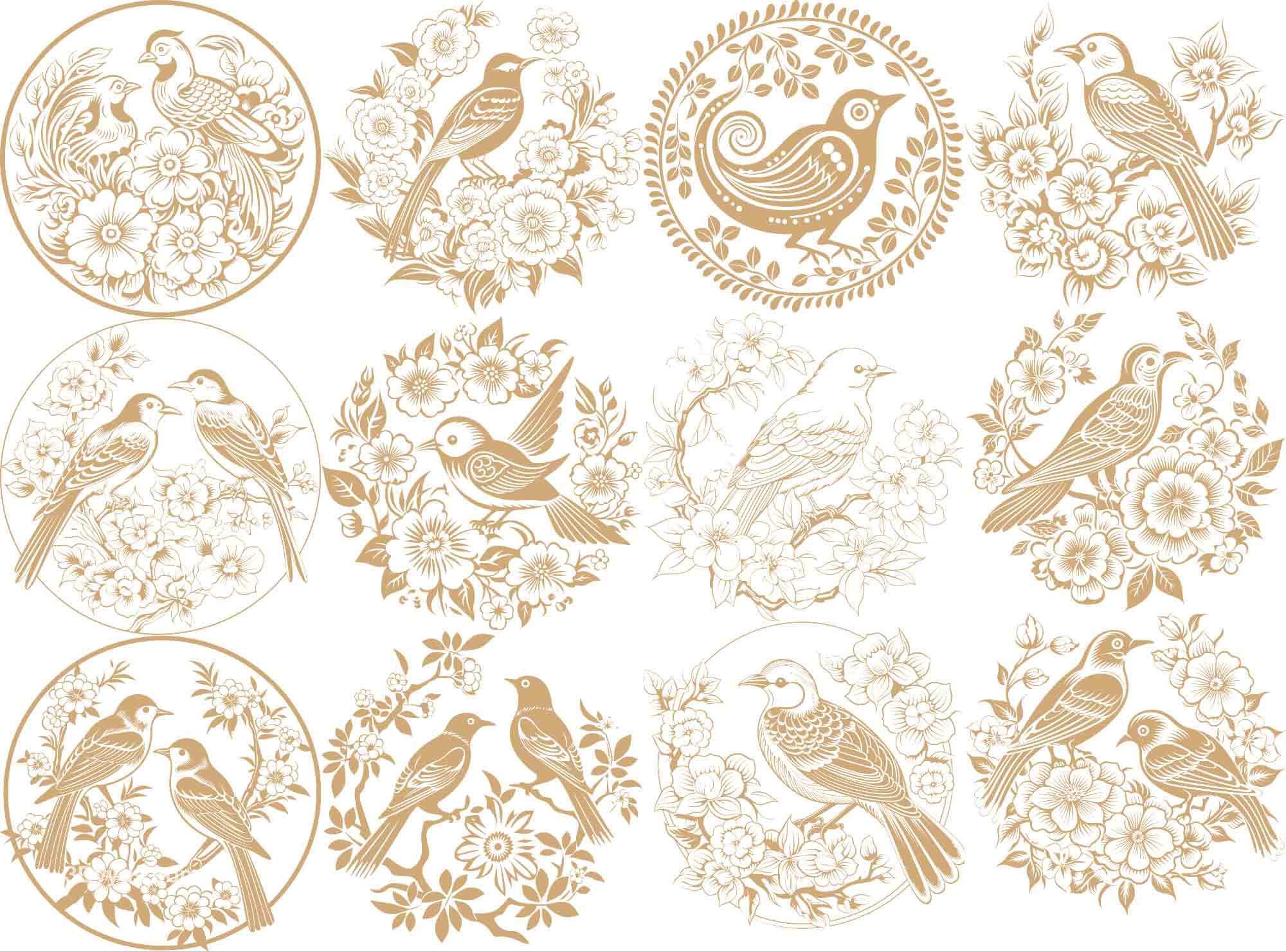 中国风中式古代古典传统凤凰鸟纹图案纹样AI矢量PNG