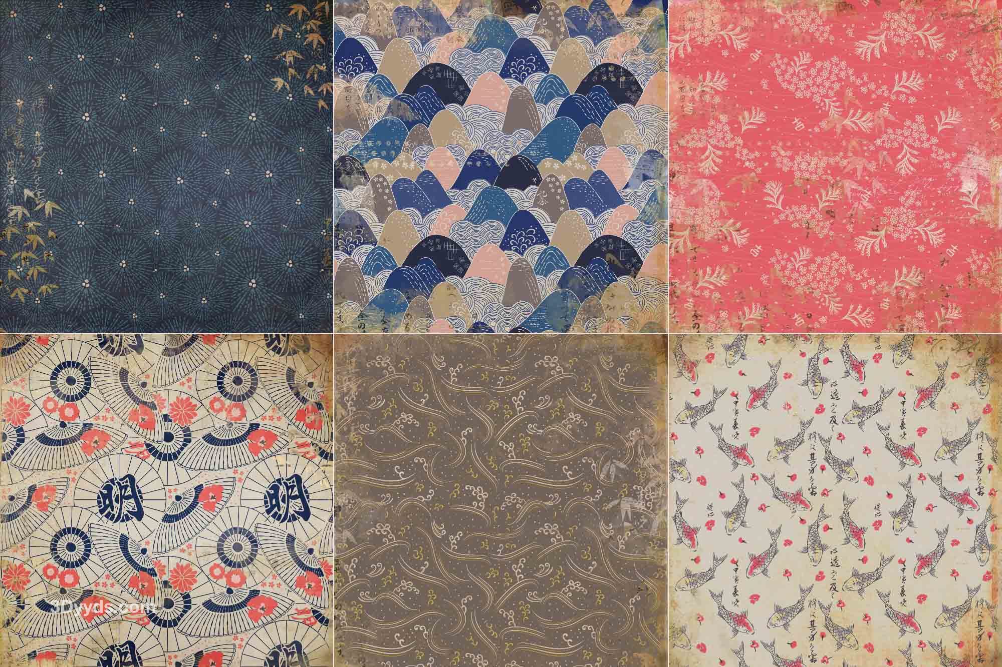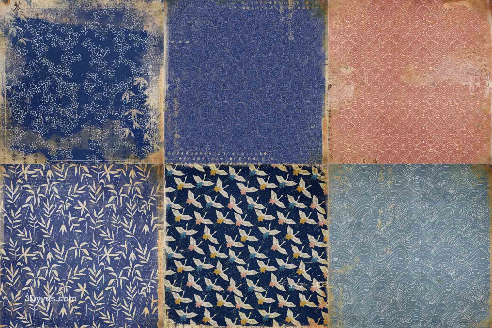 日式和风复古做旧传统纸纹布纹磨痕纹理贴图平面包装素材