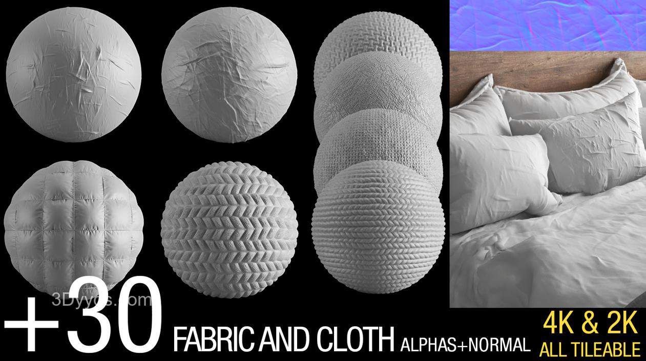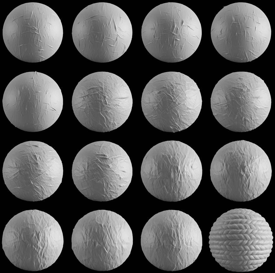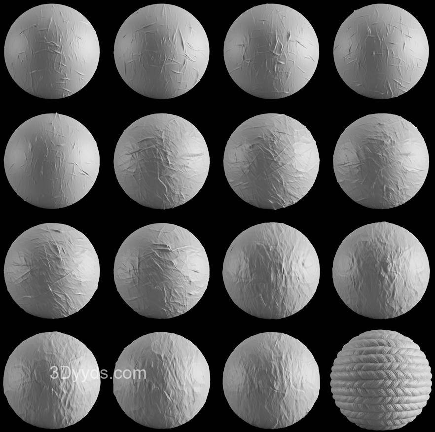 zbrush30布料面临法线Alpha笔刷&枕头床单针线粗布细节TIF