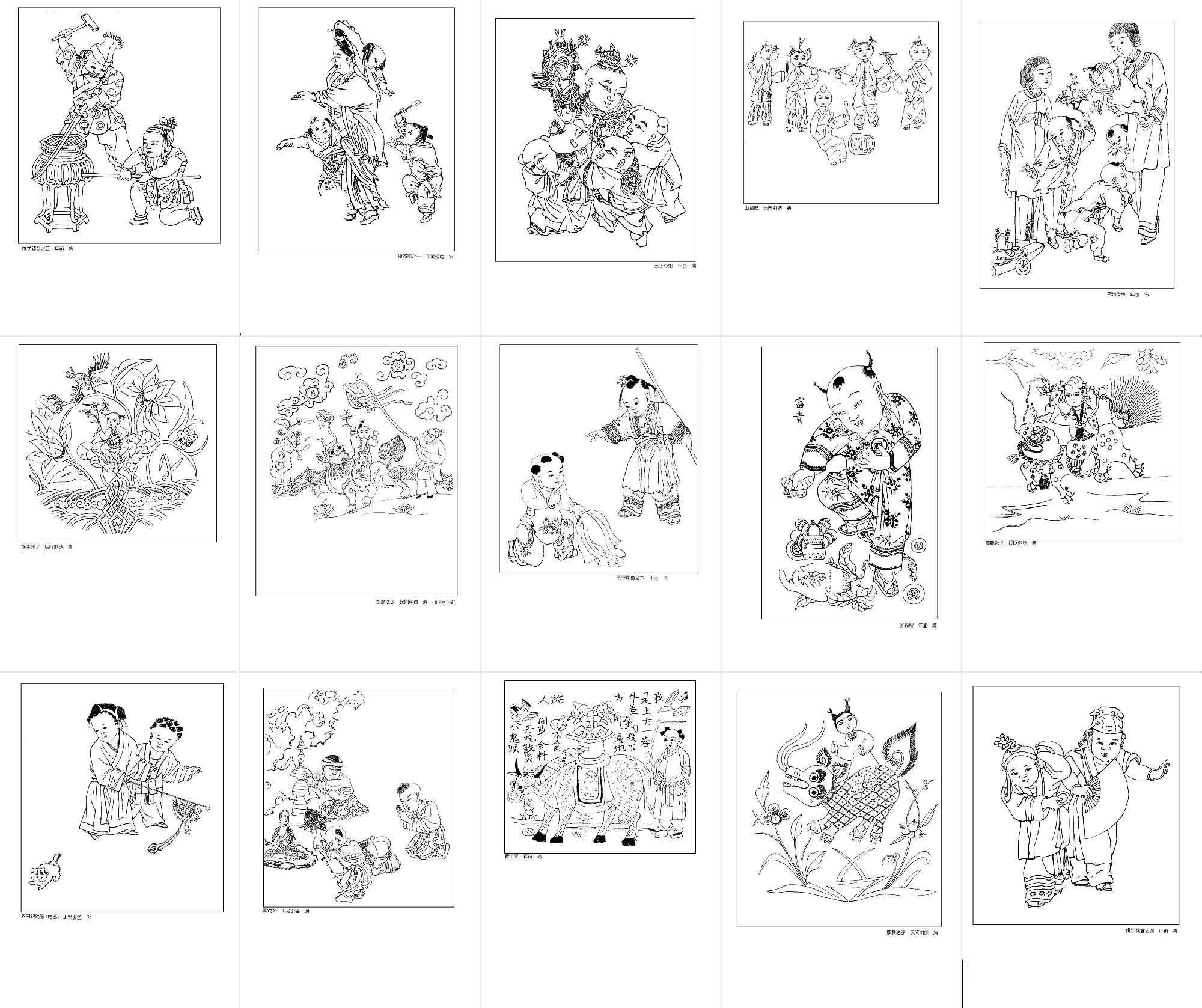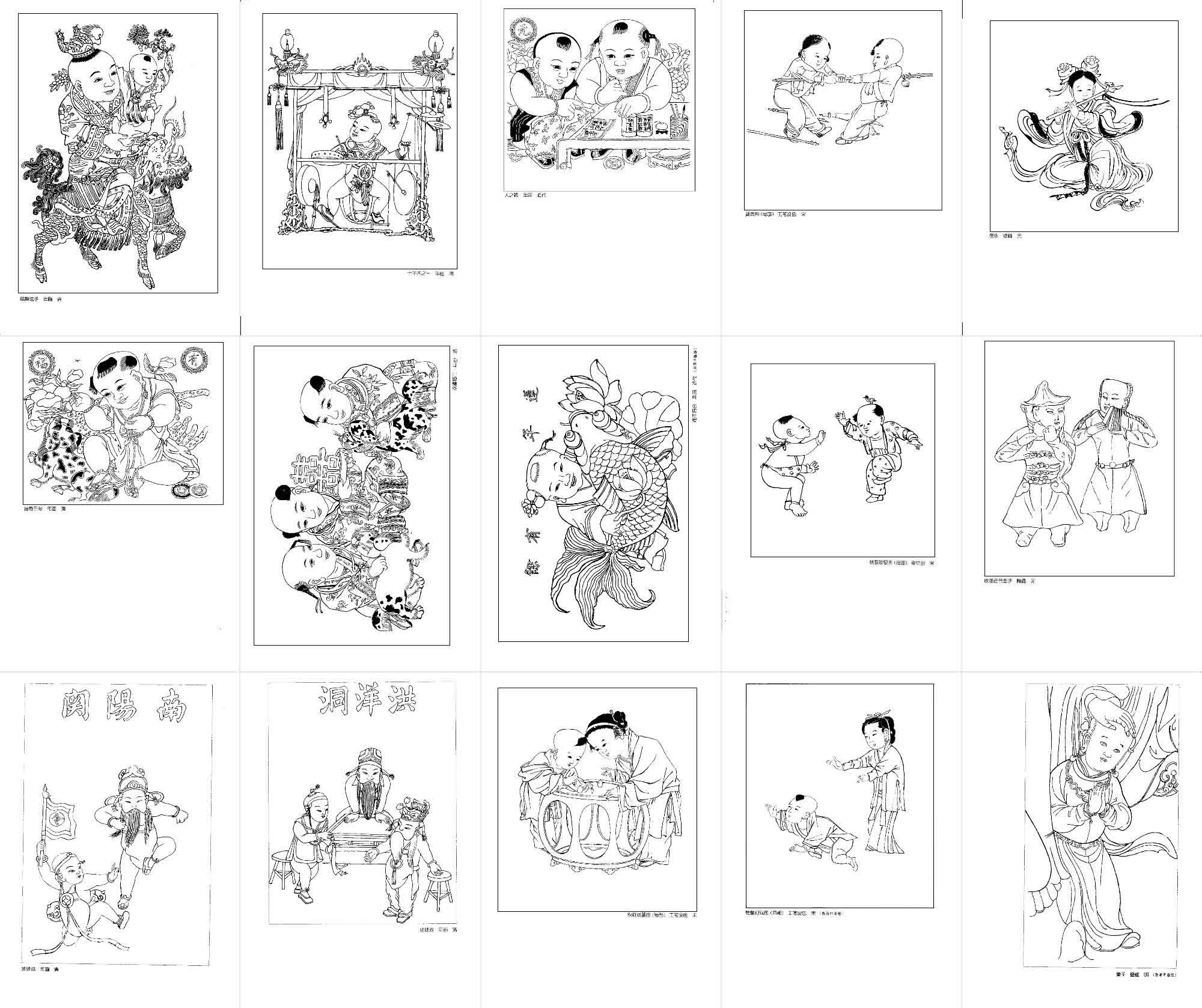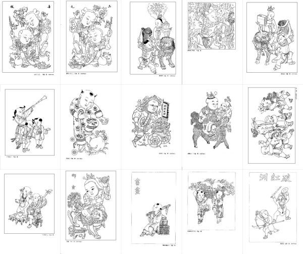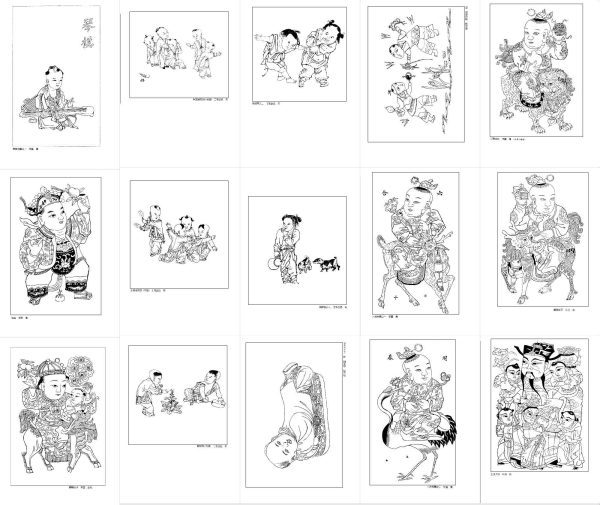 年画白描图集民间艺术杨柳青娃娃线描吉祥人物参考图片
