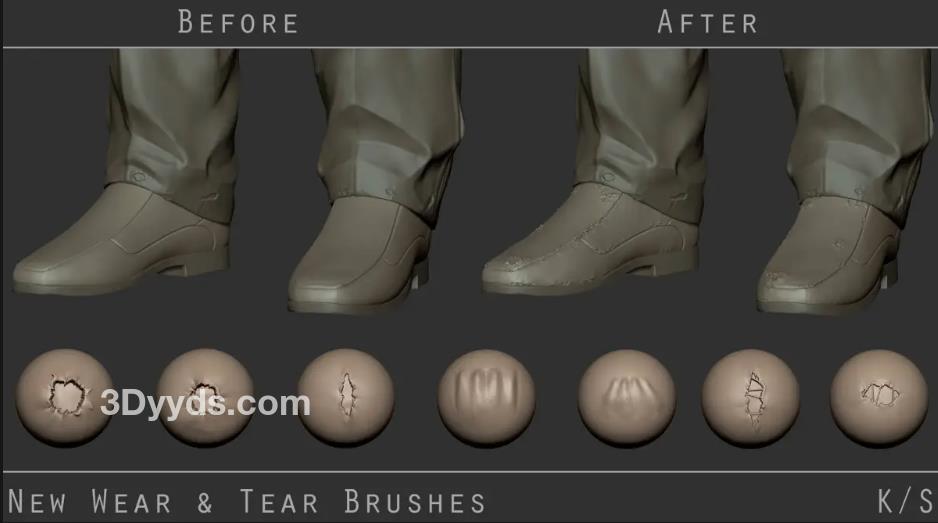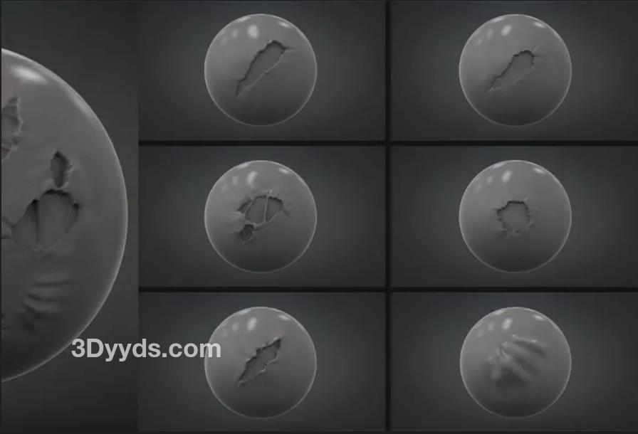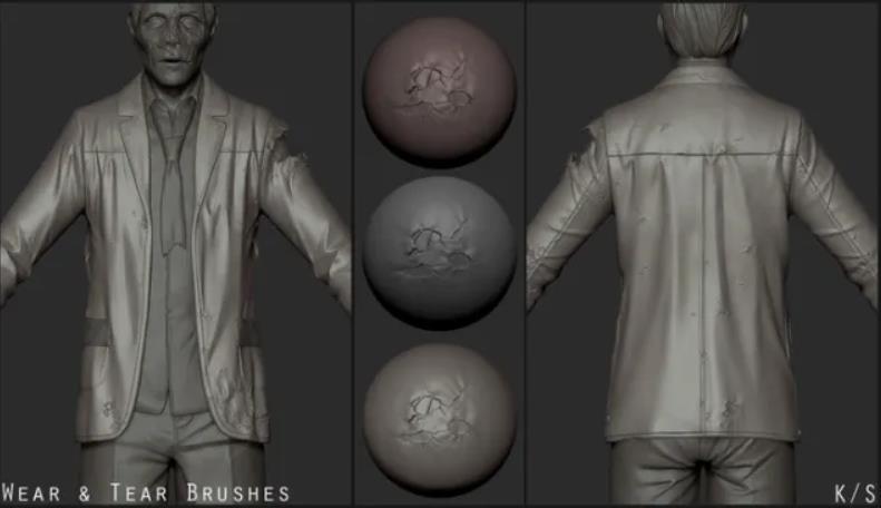 zbrush衣服裤子布料破洞损坏撕裂扯烂面料笔刷
