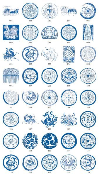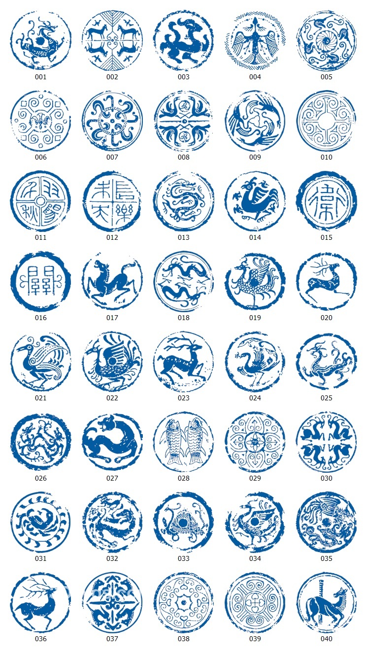瓦当图案中国传统古典纹样拓片中式汉代装饰花纹AI矢量素材