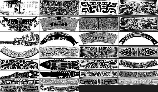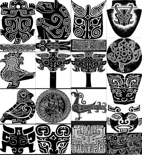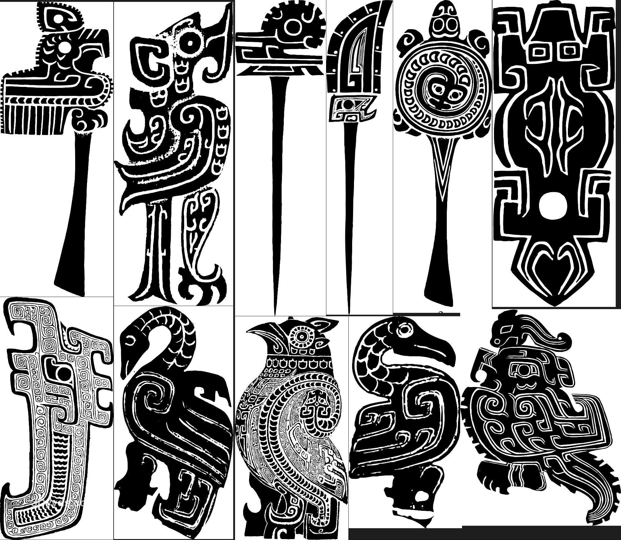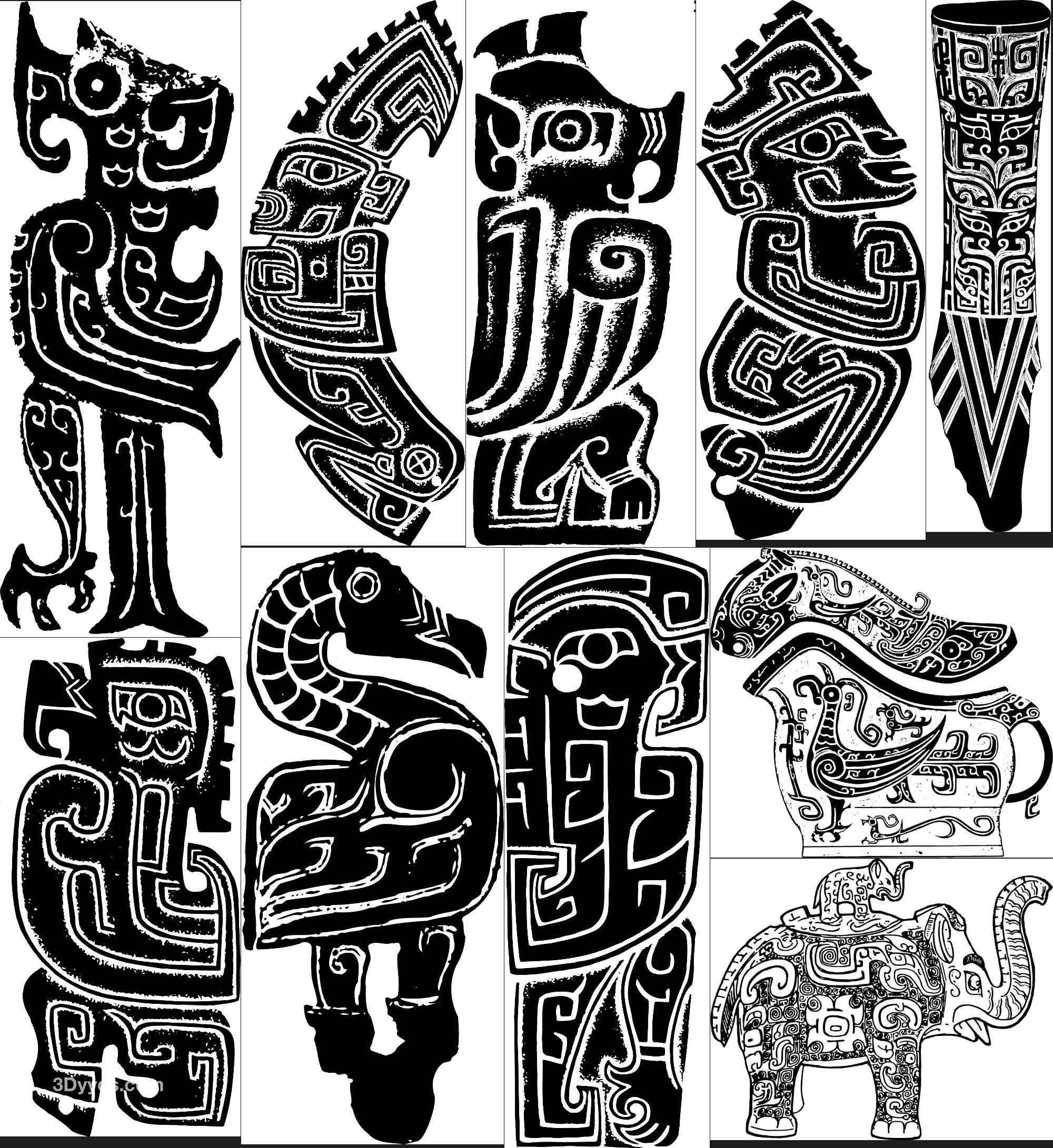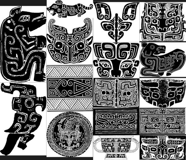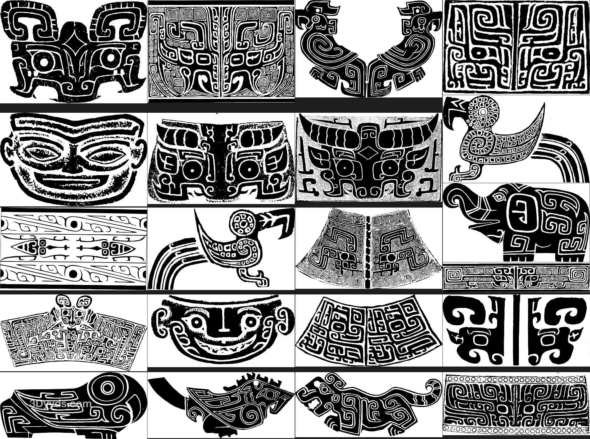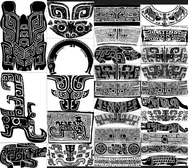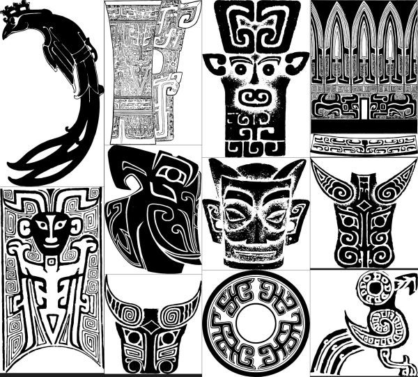 三星堆商周朝青铜器图腾装饰纹样古代拓片器物AI矢量素材