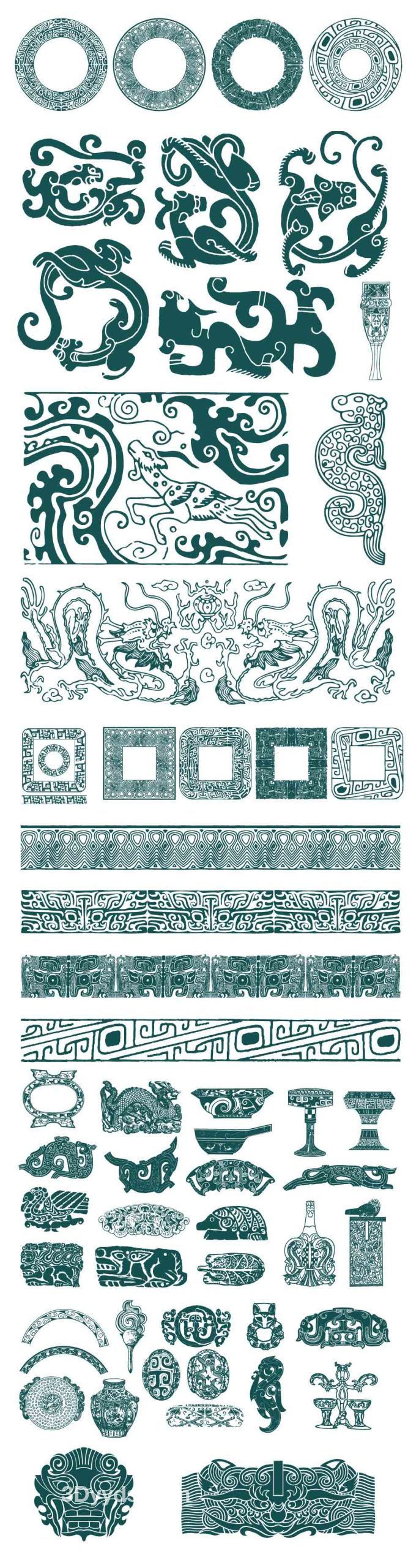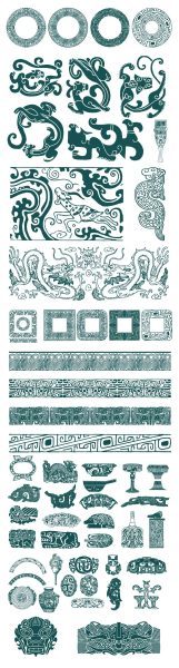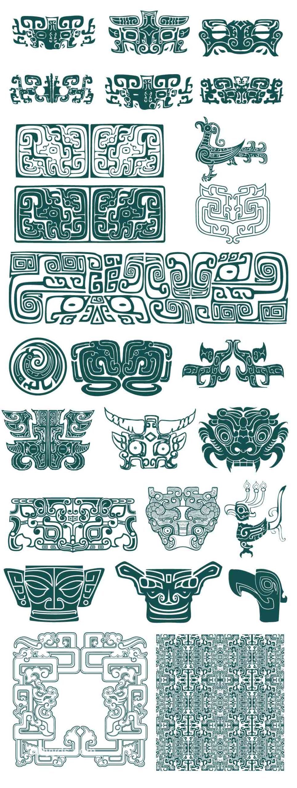 中国传统古典青铜器饕餮纹图案三星堆纹样拓印AI矢量素材PNG