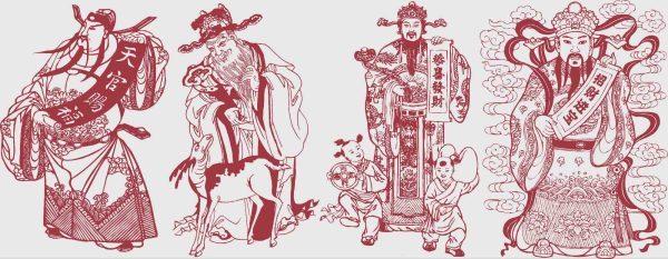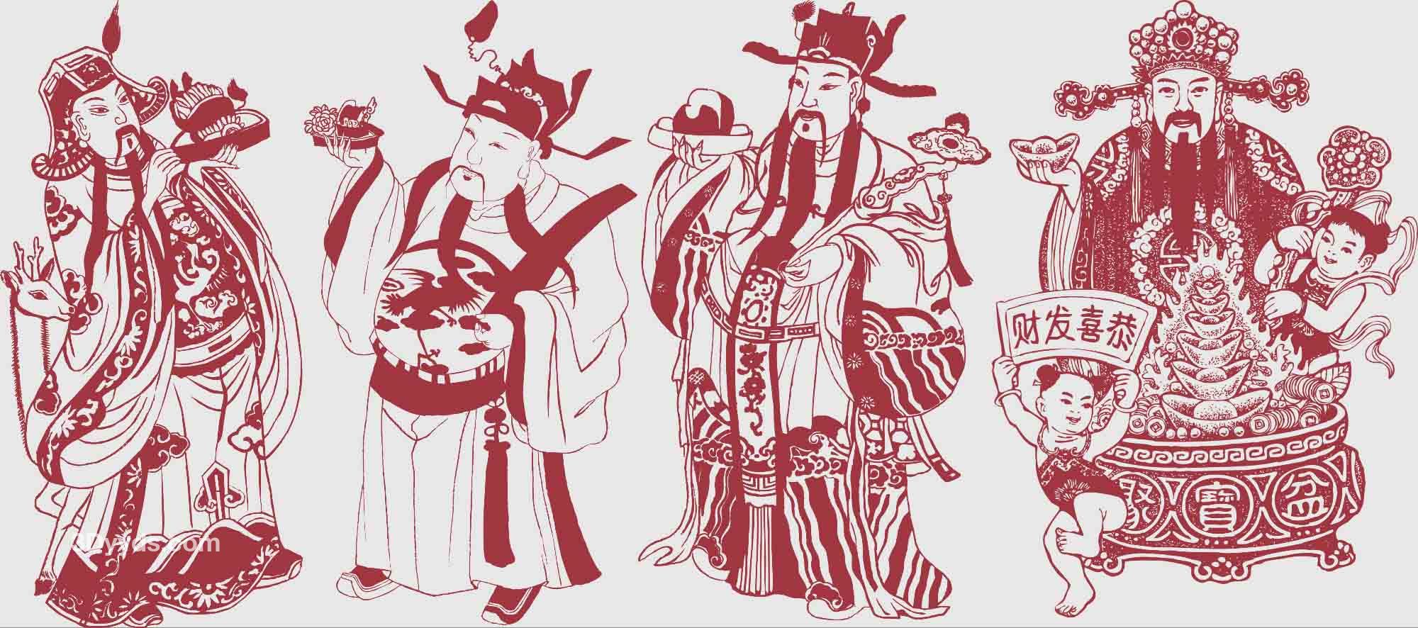 中国传统民间神仙手绘财神剪纸年画线稿图案矢量PNG素材