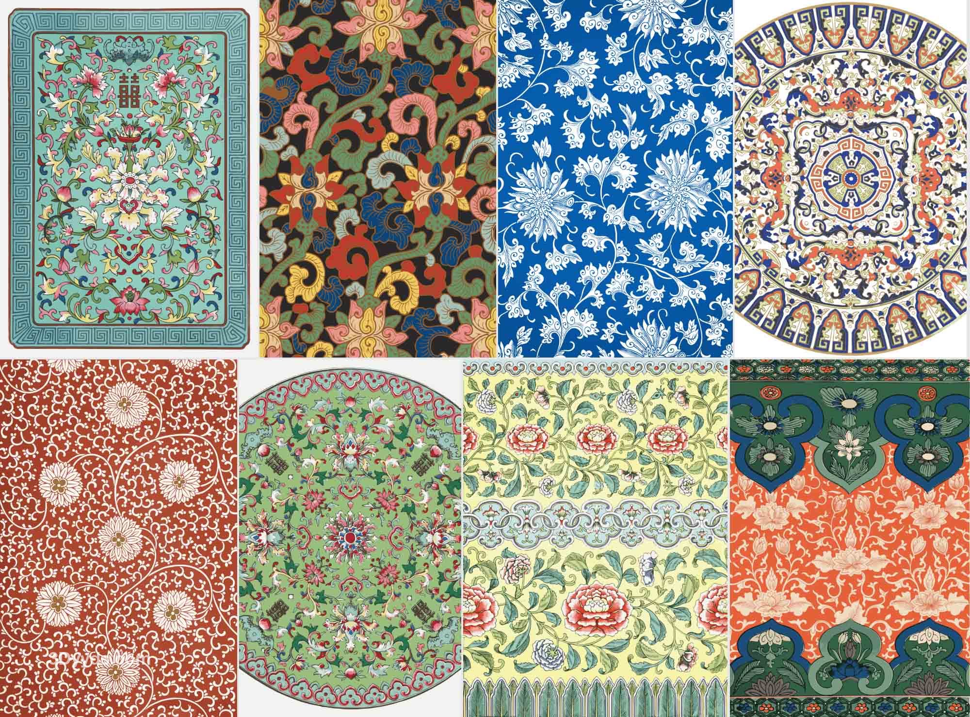 中式传统花纹图案纹样集锦矢量版中国风植物花草纹理背景素材