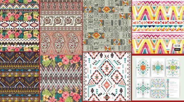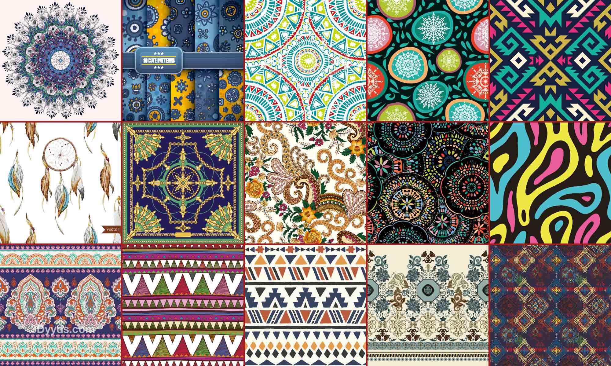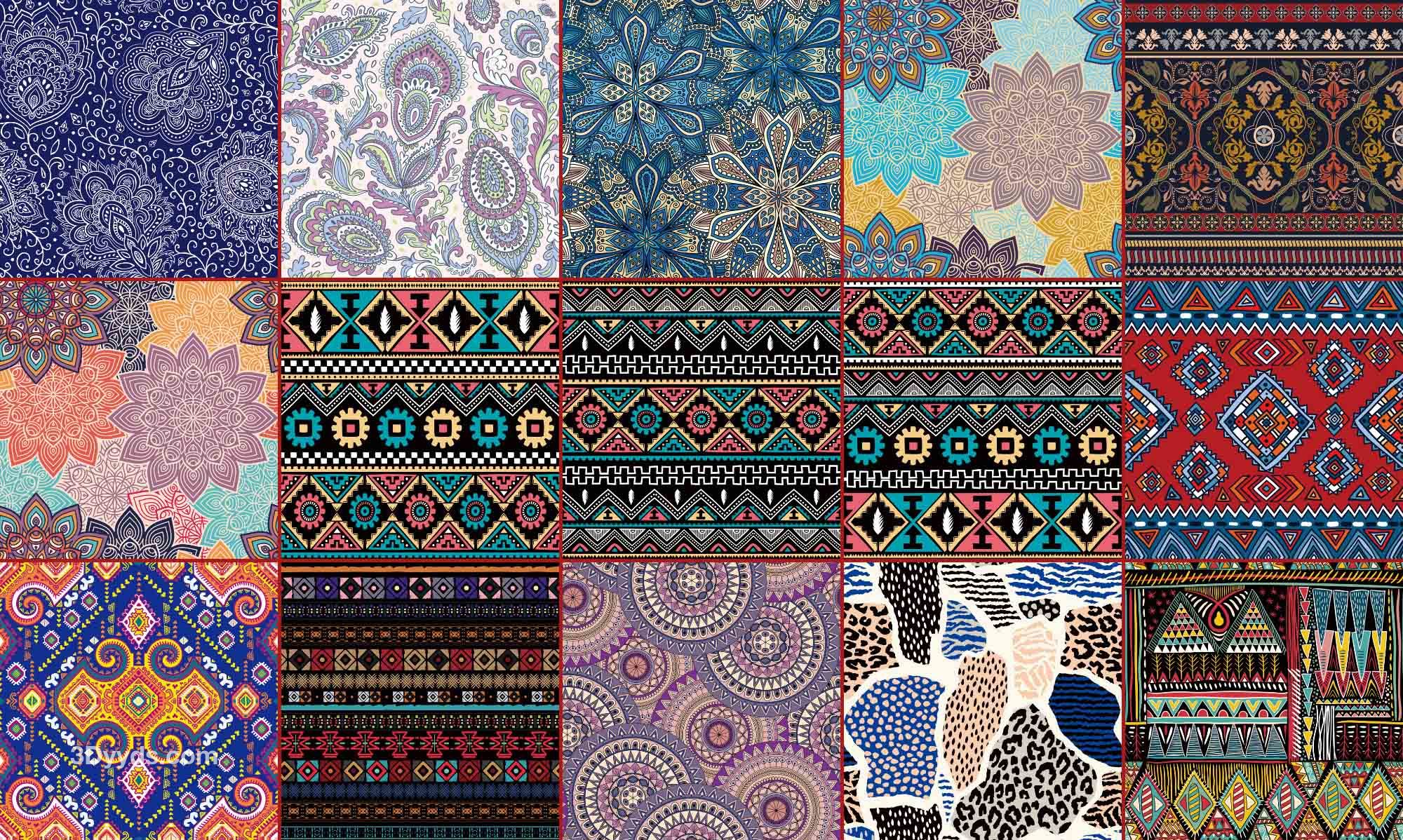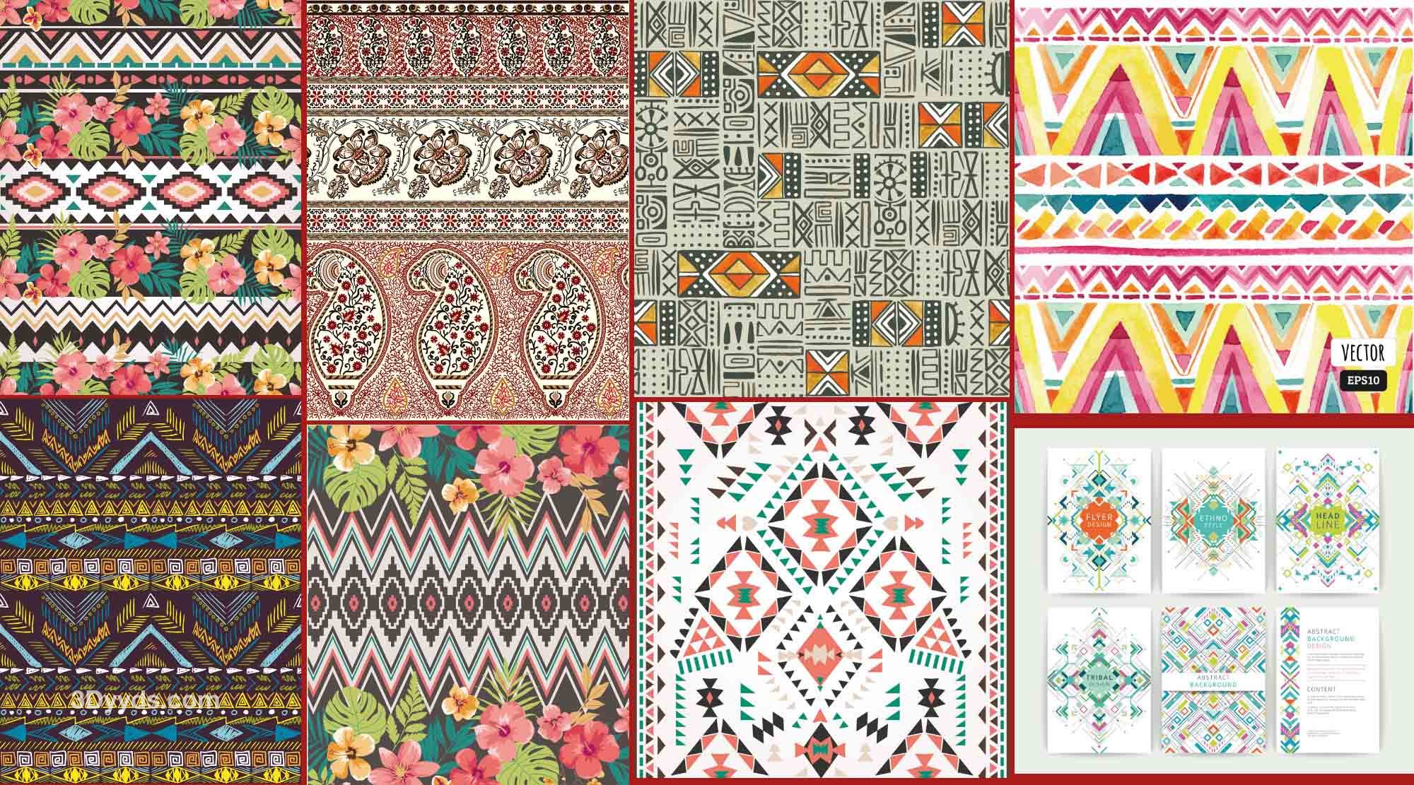 少数民族藏族特色花纹波西米亚风格纹理背景图案设计矢量图片素材