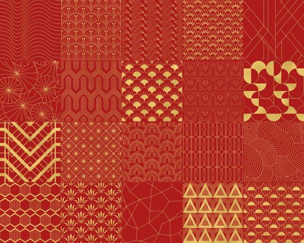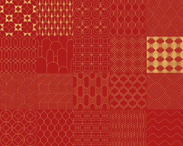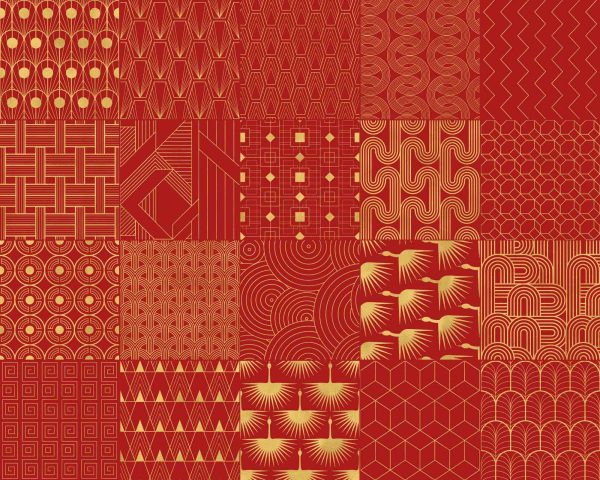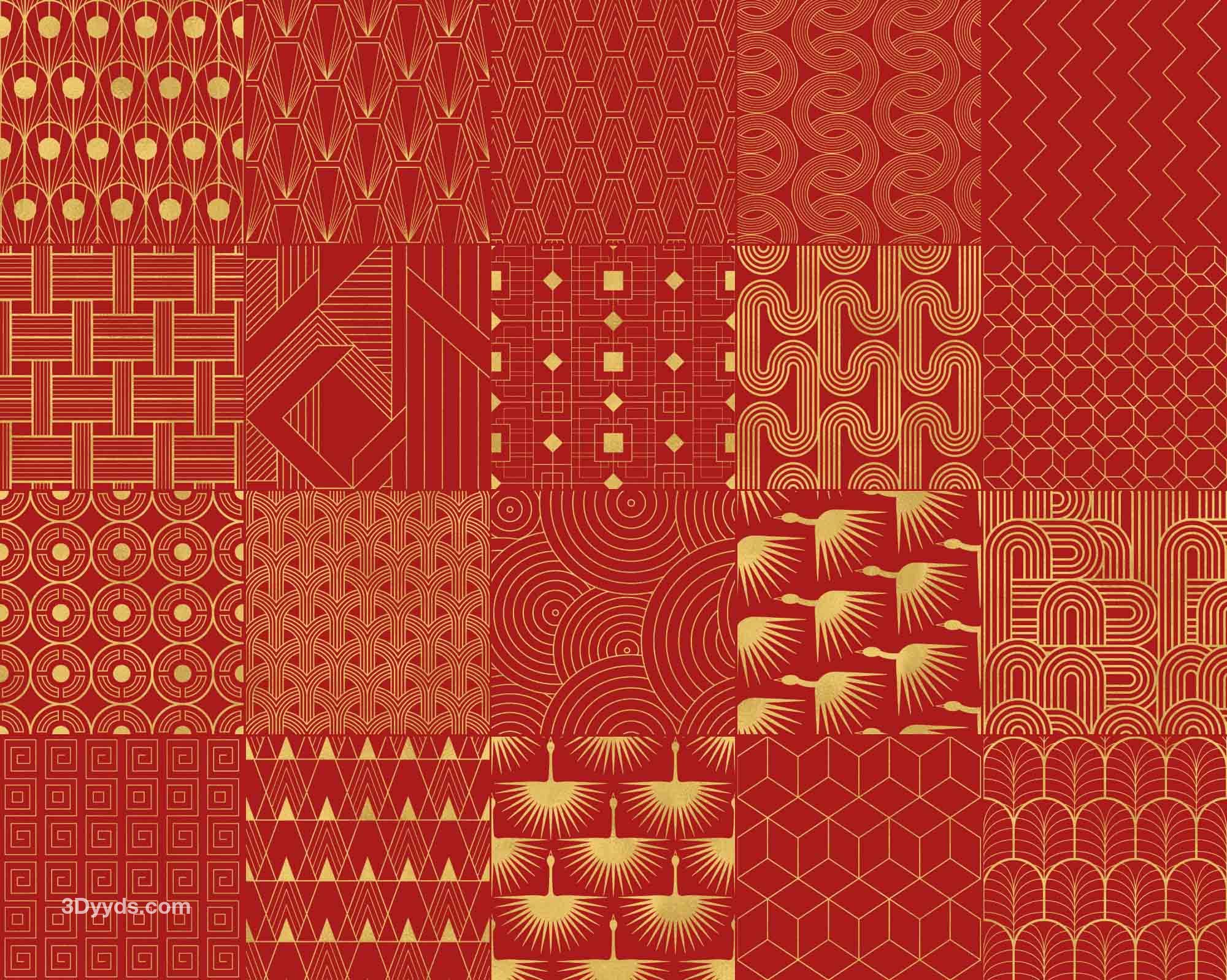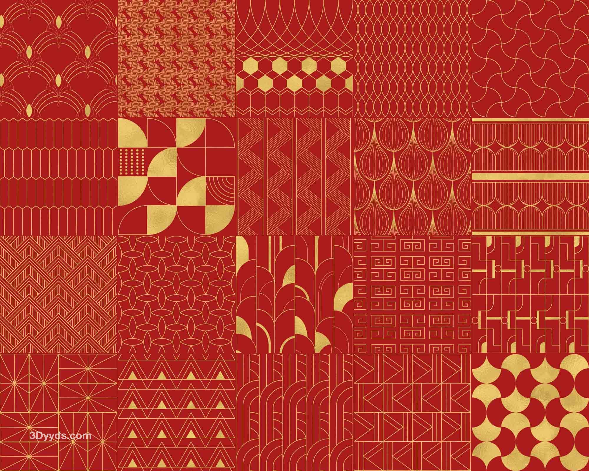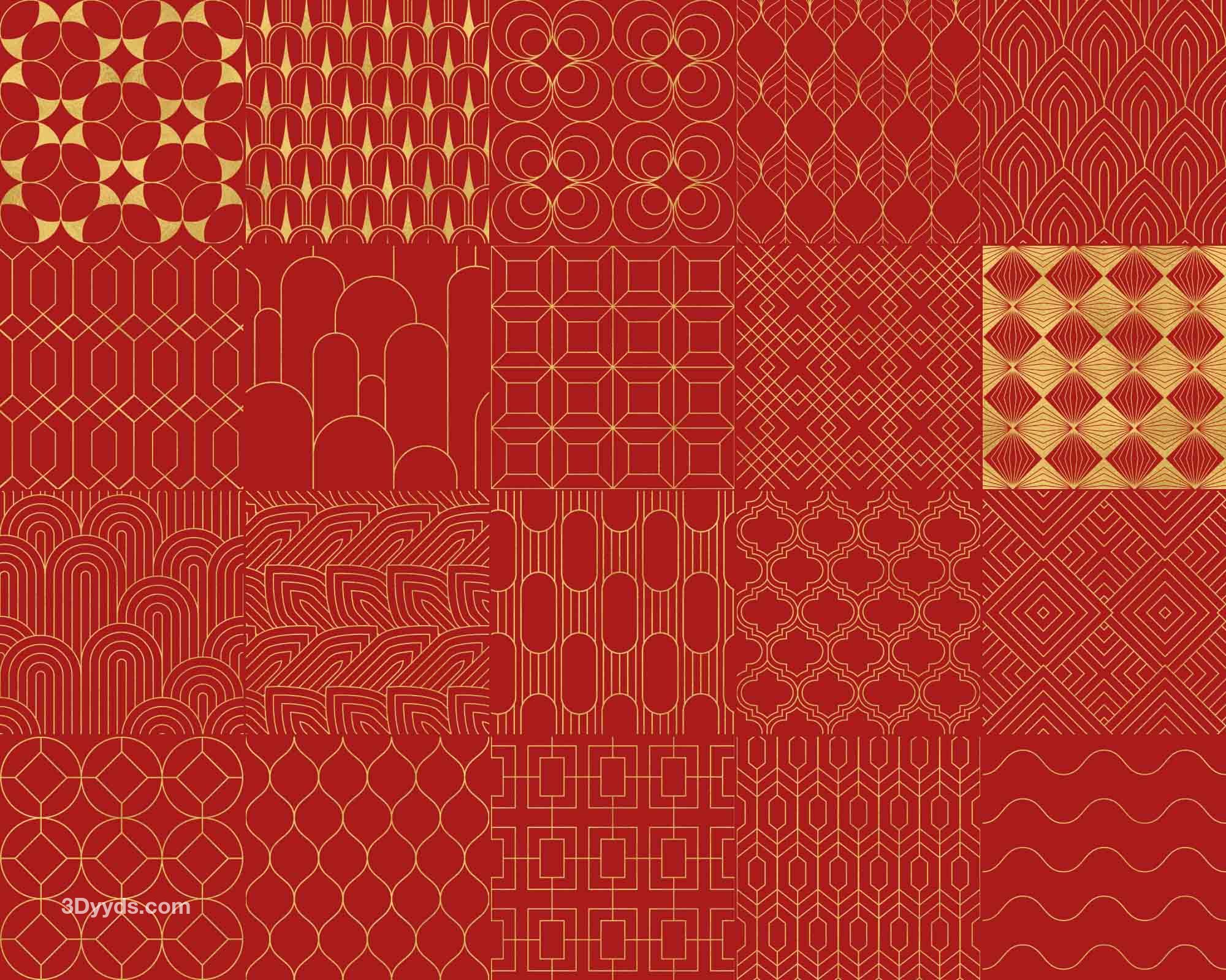 100款中式工业几何奢华艺术装饰边框图案黑白纹理底纹ai矢量素材