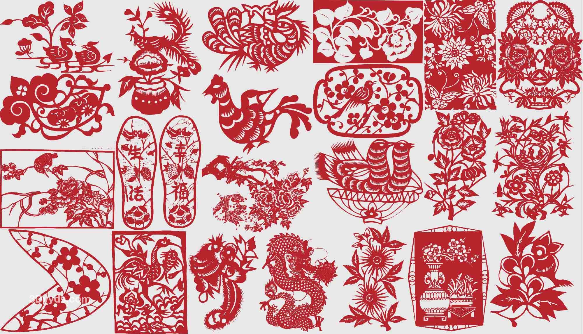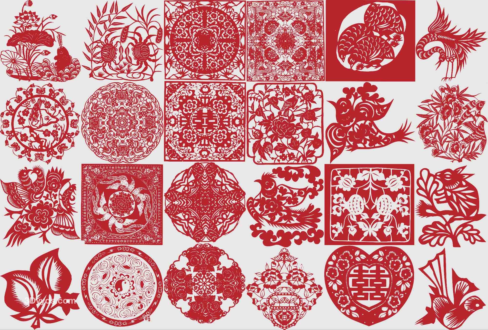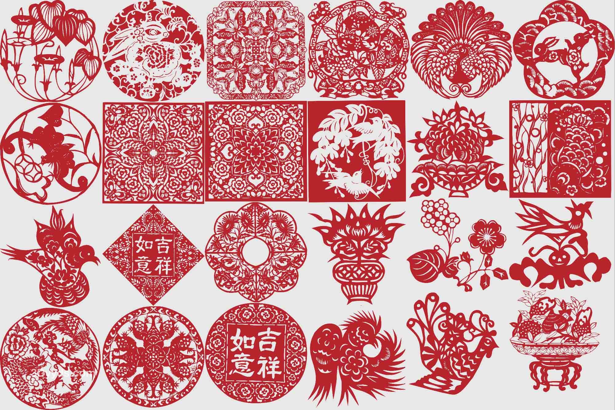 中国风传统民俗吉祥镂空剪纸窗花喜庆纹样图案AI矢量PNG素材