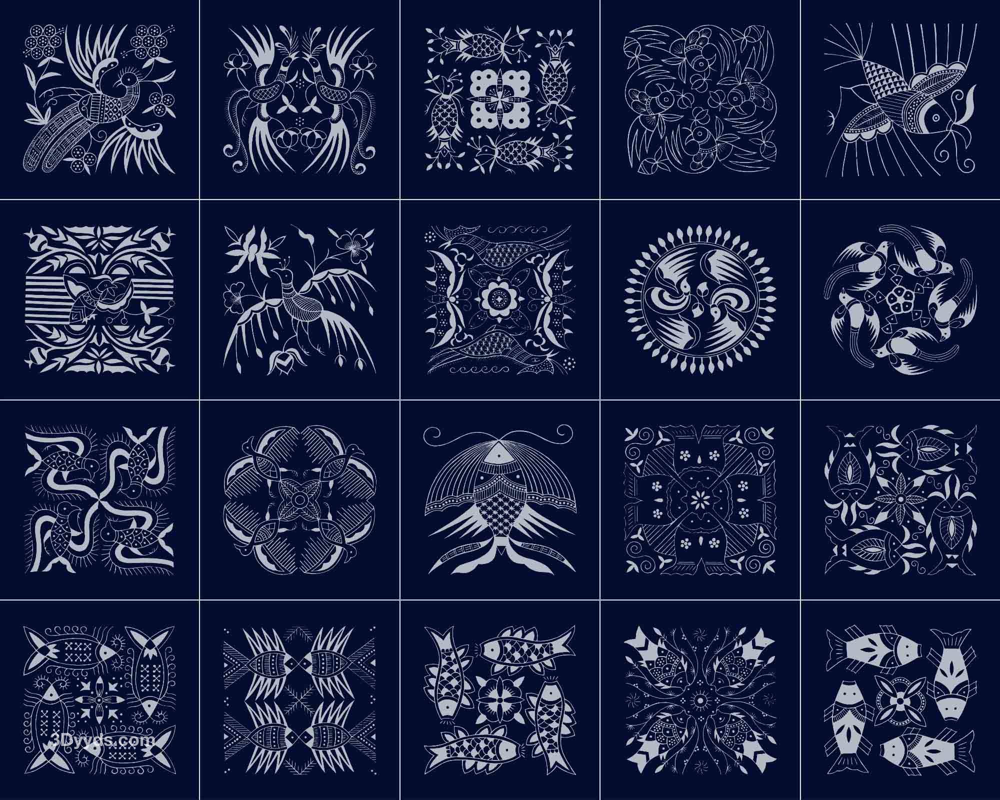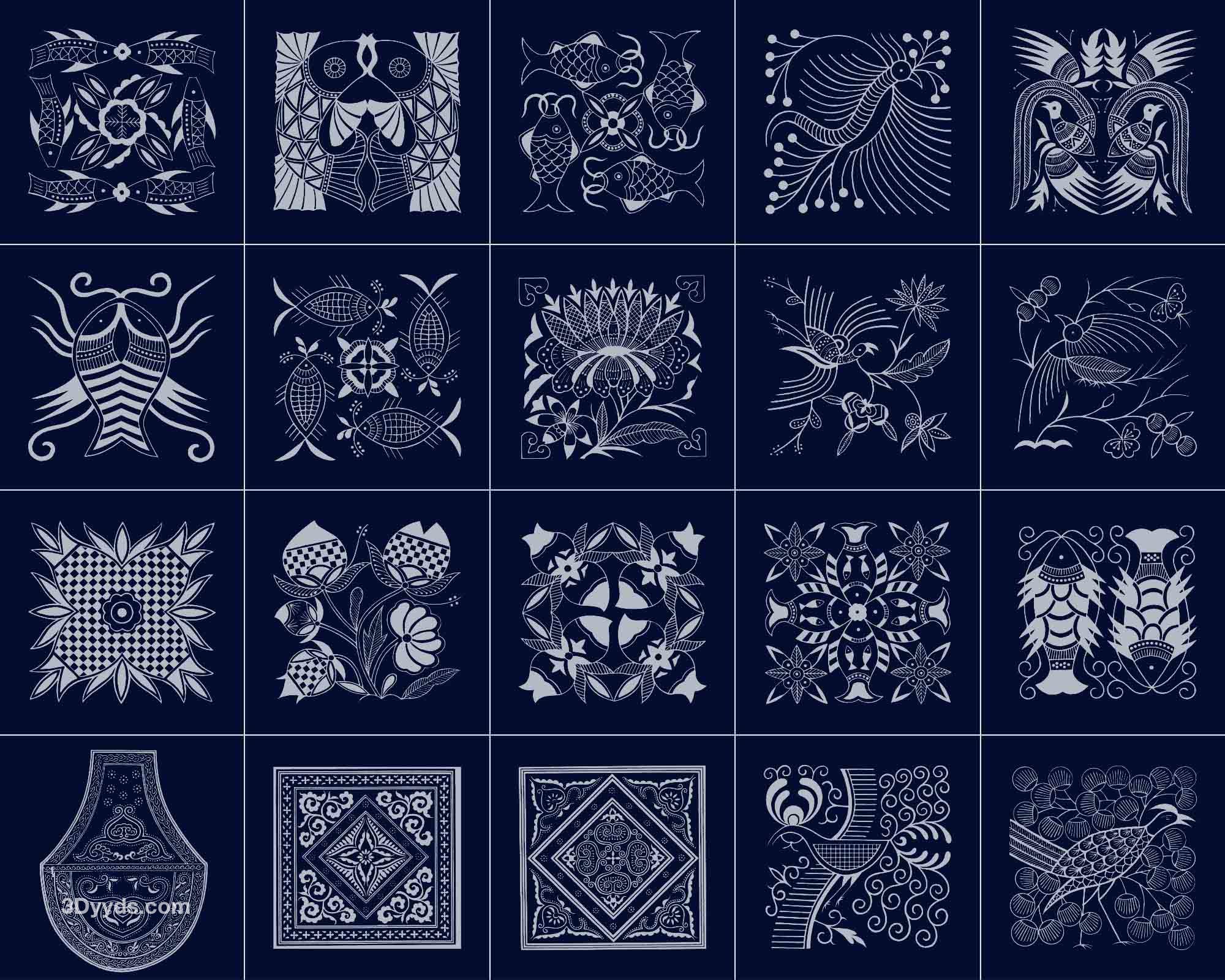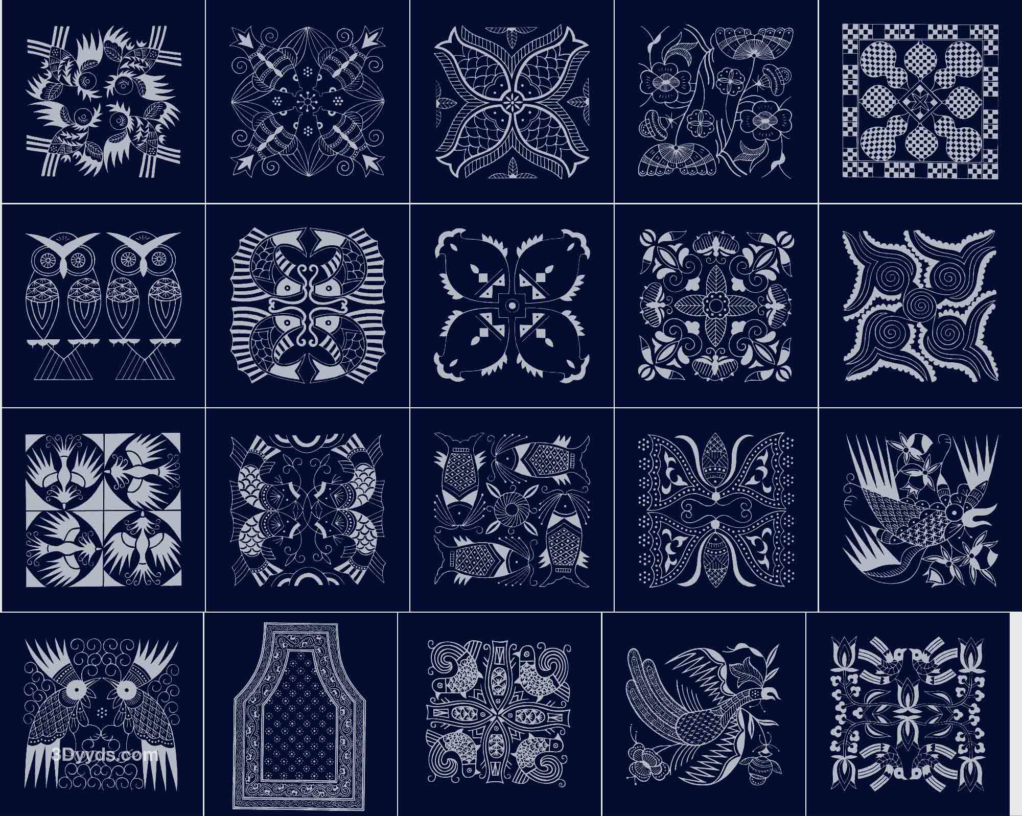 苗族少数民族蜡染图案印花AI矢量素材PNG图片古典纹样