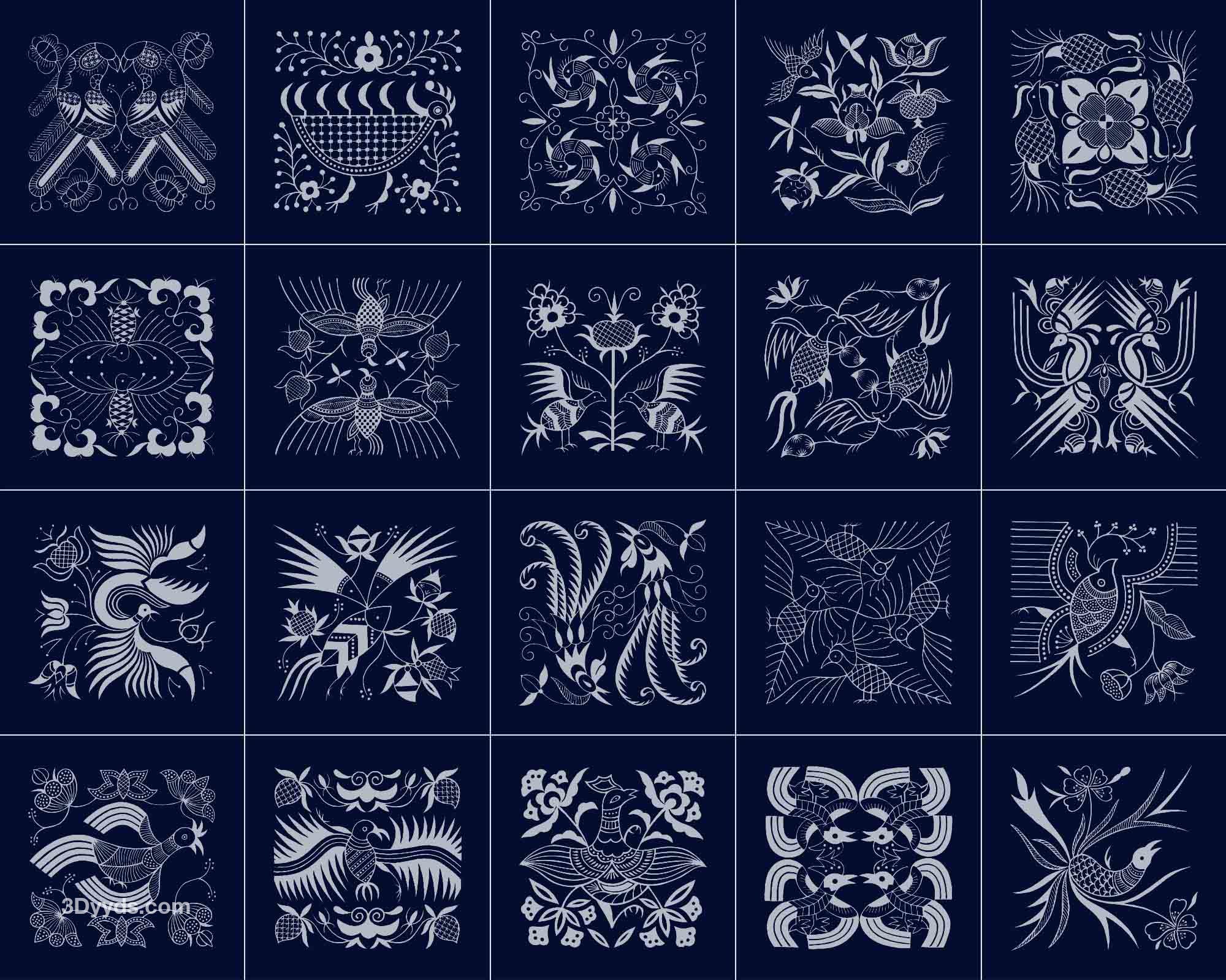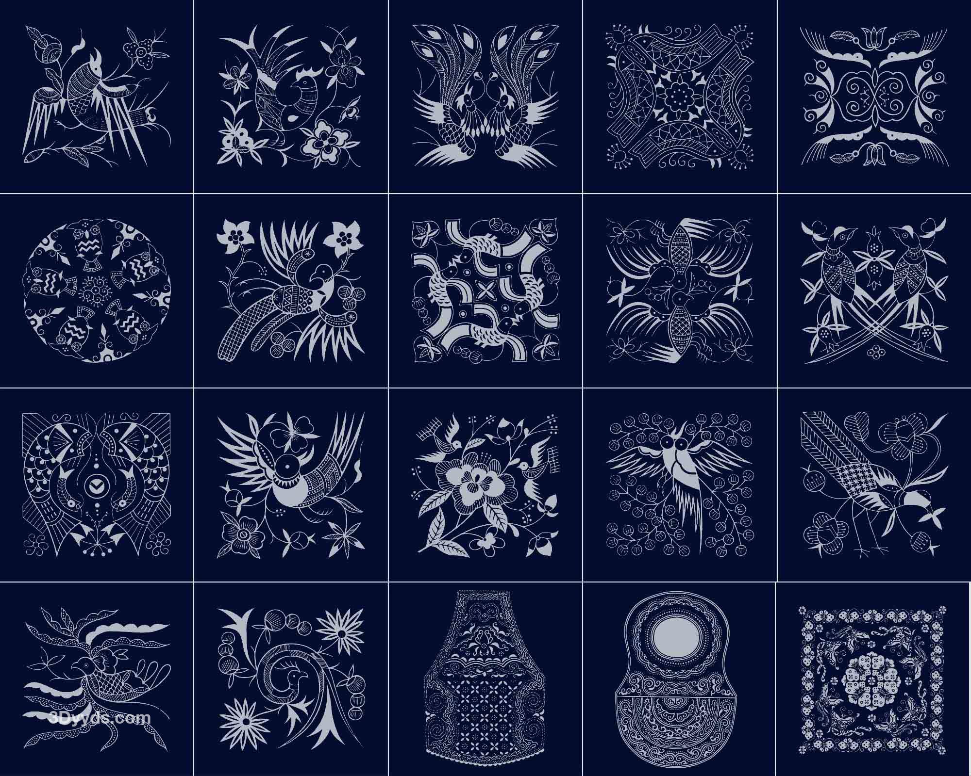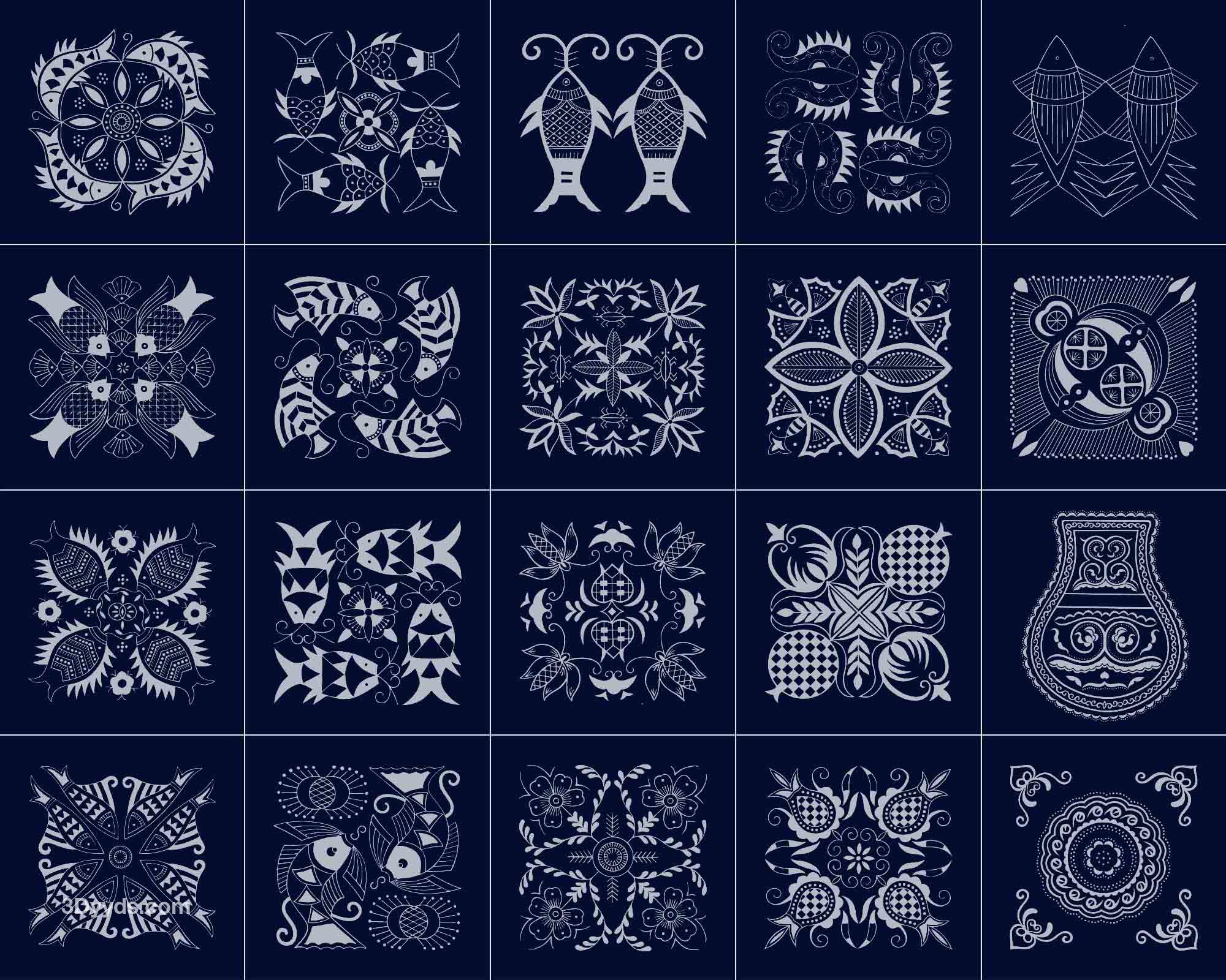 苗族少数民族蜡染图案印花AI矢量素材PNG图片古典纹样