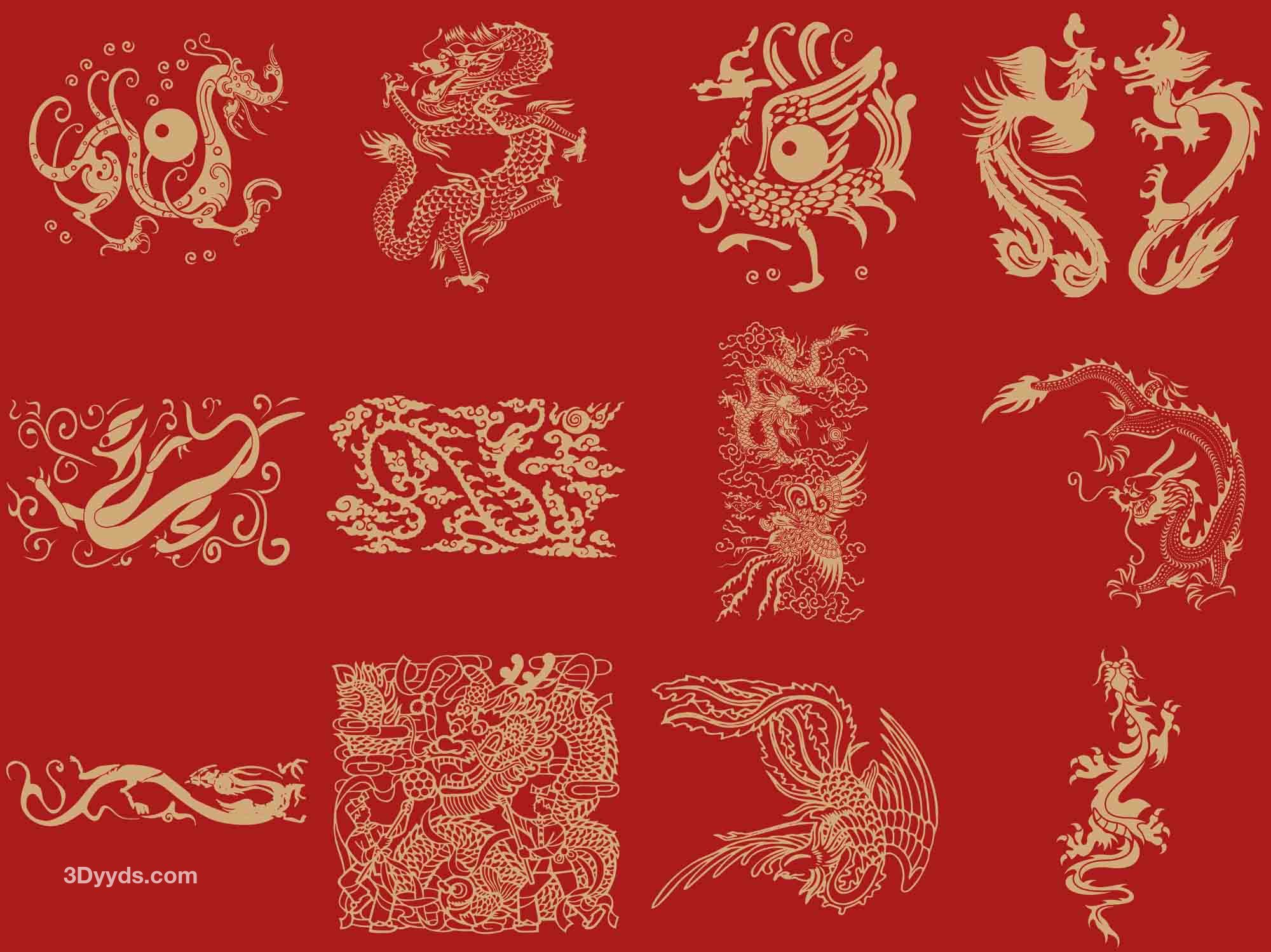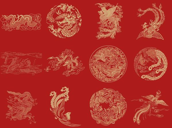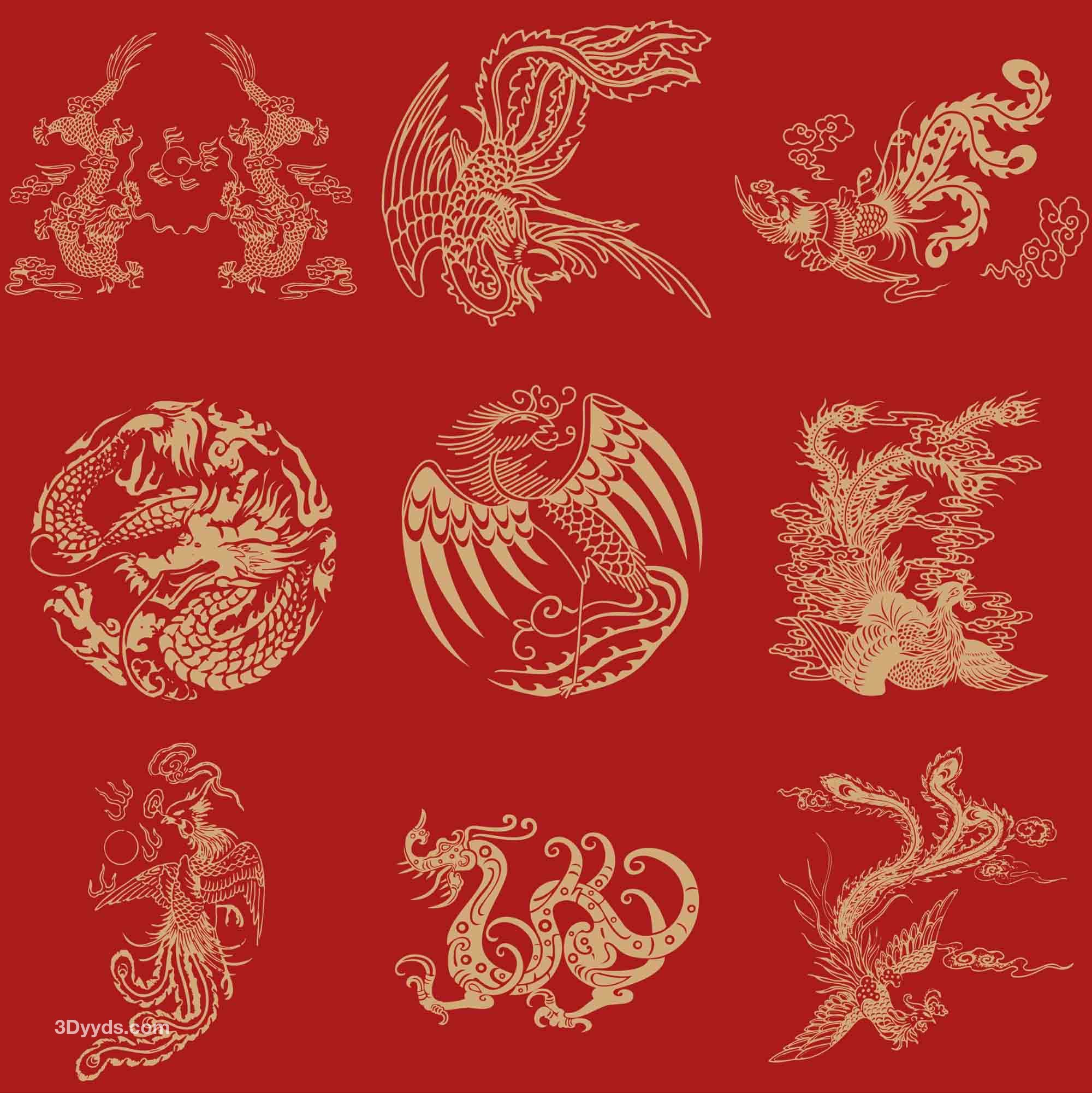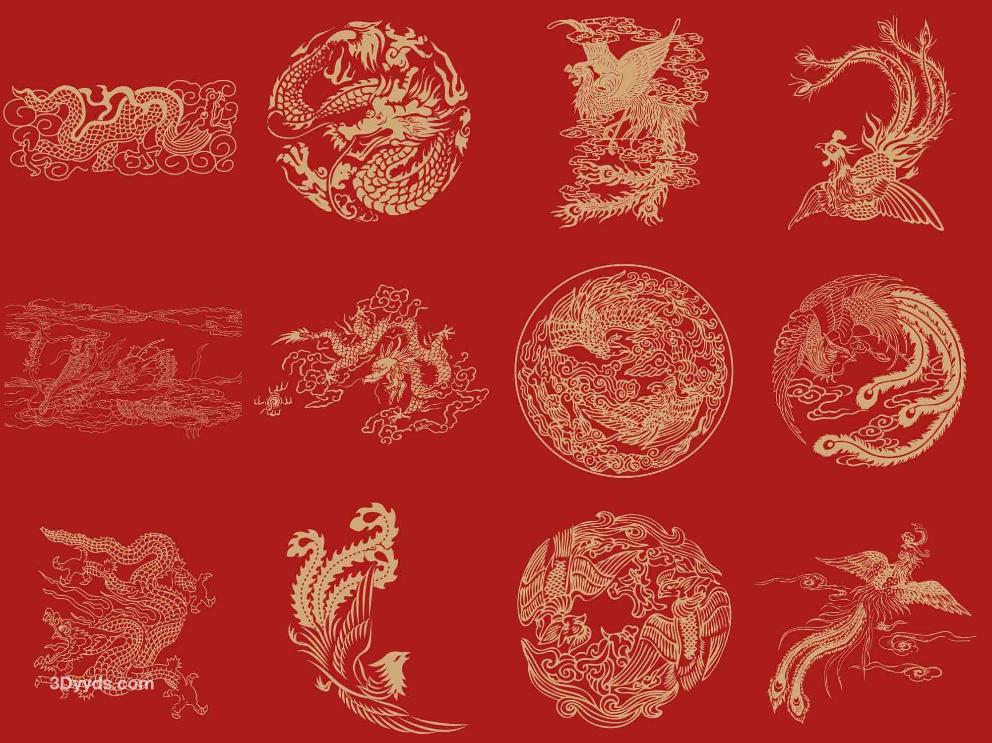中式中国风古典龙凤吉祥图案花纹样包装底纹背景设计AI矢量素材