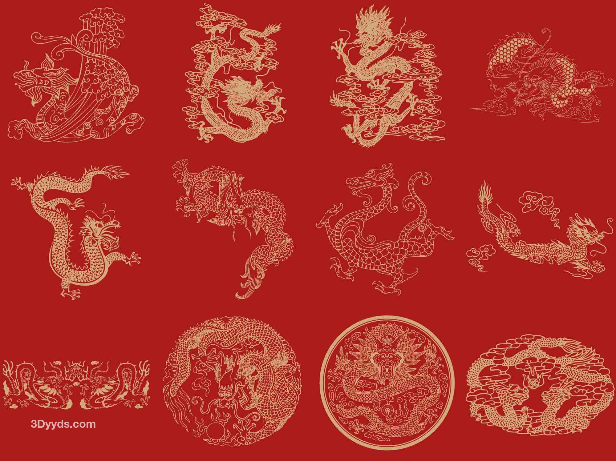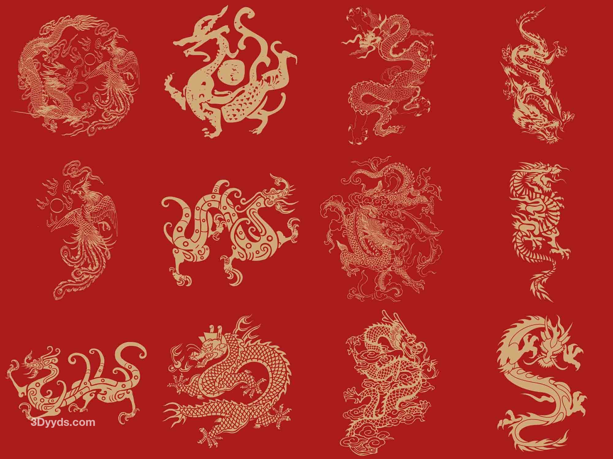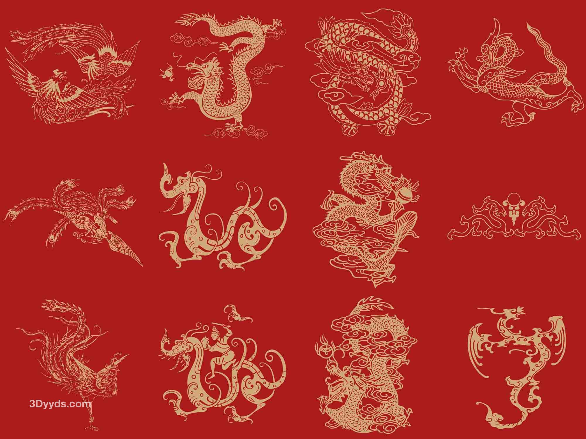 中式中国风古典龙凤吉祥图案花纹样包装底纹背景设计AI矢量素材