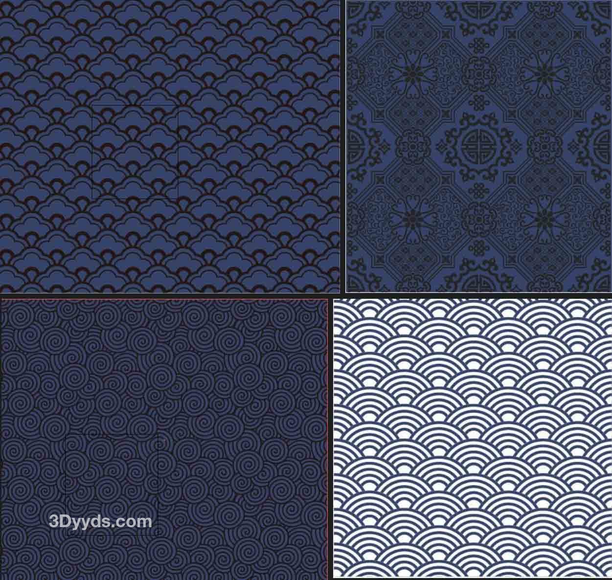 中国风古风传统云纹水波纹底纹印花背景图AI矢量设计素材