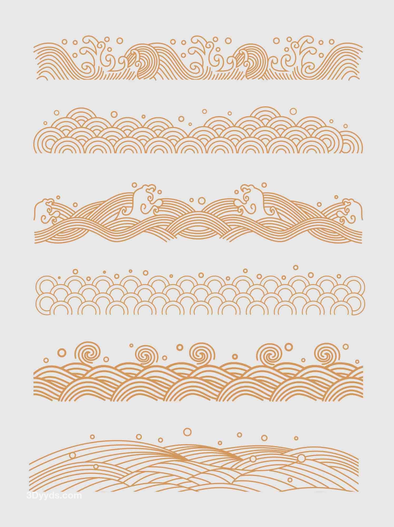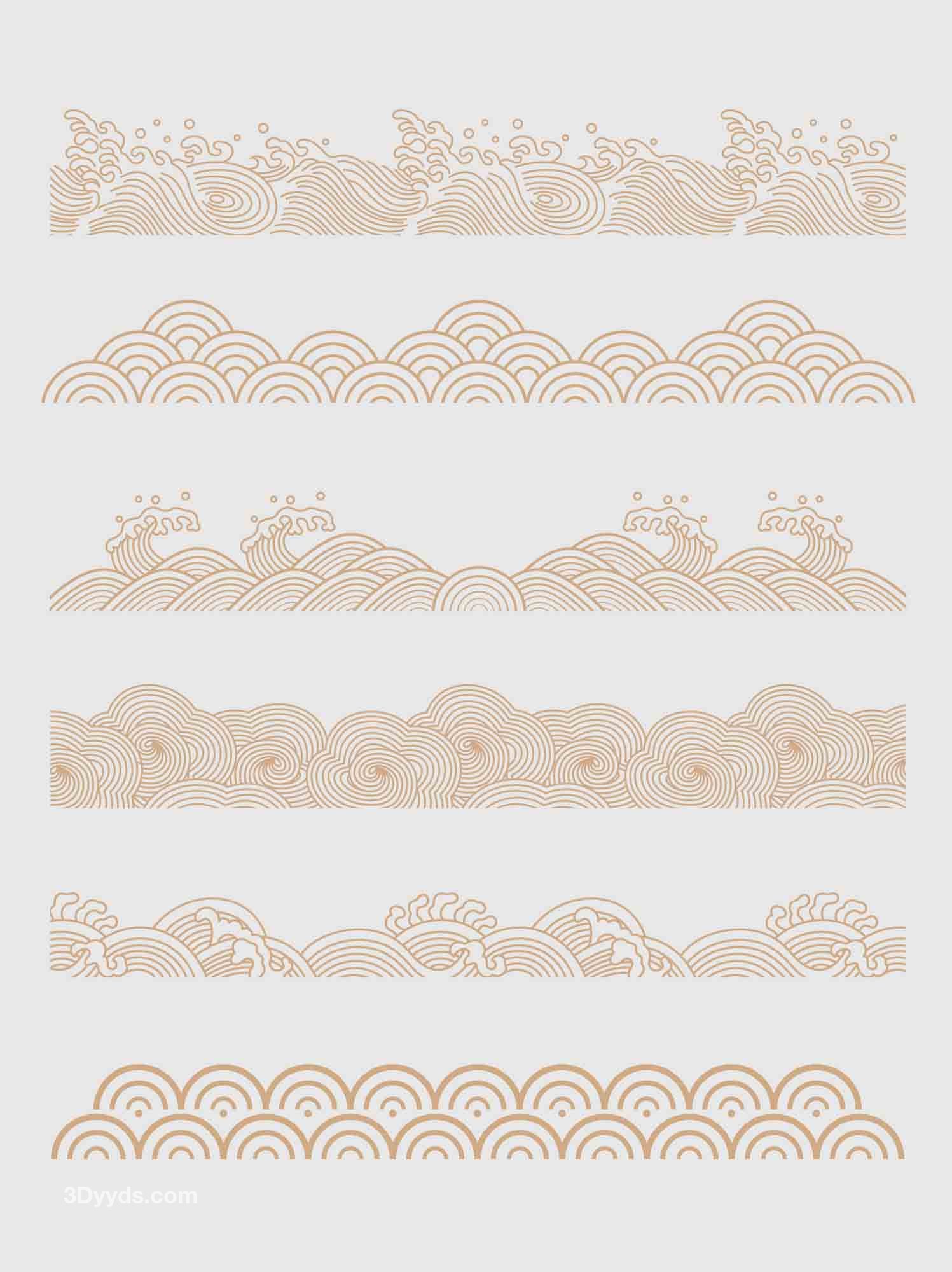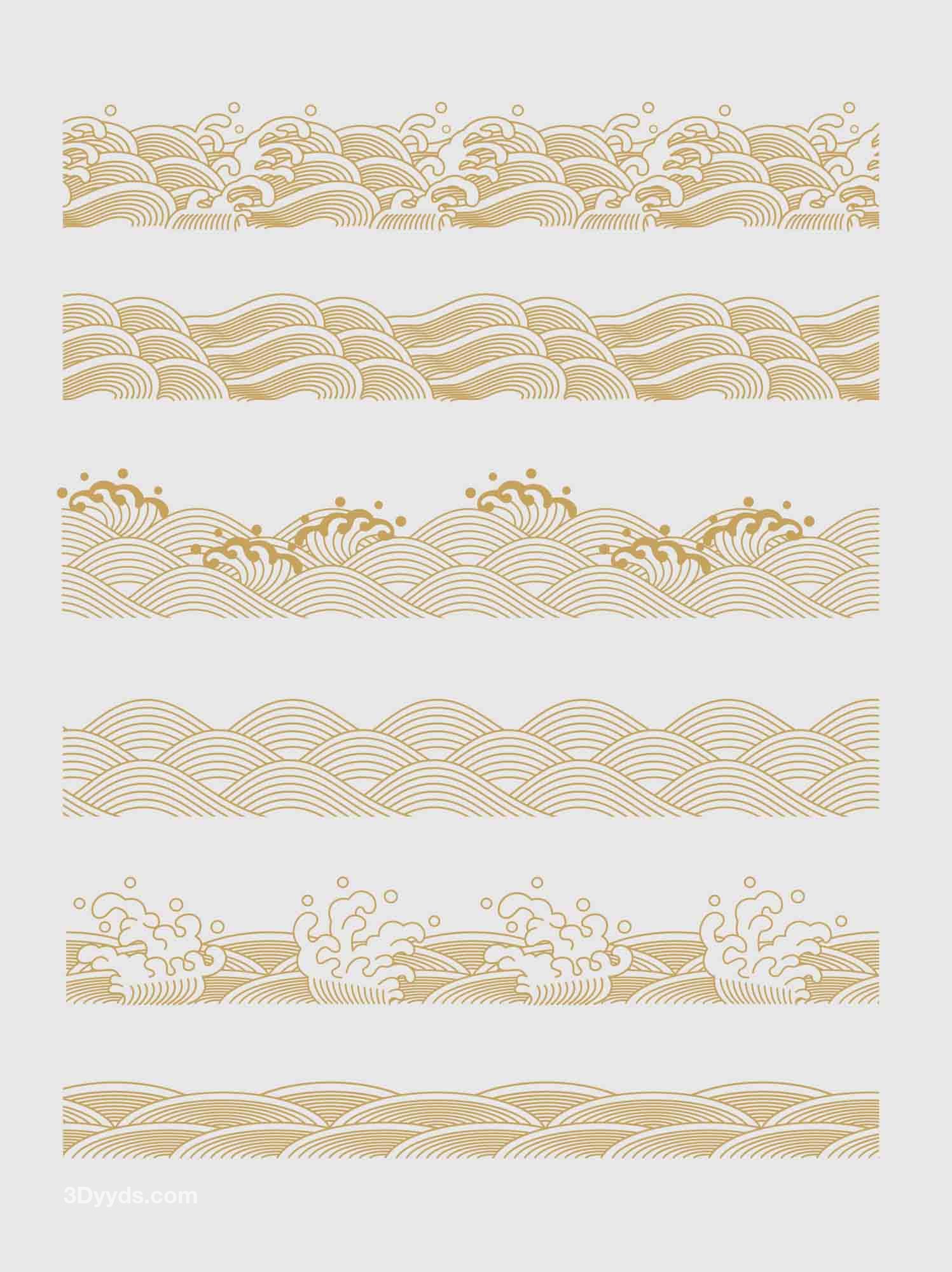 中国风传统纹理矢量浪花海浪水纹底边装饰线条AI线条元素素材