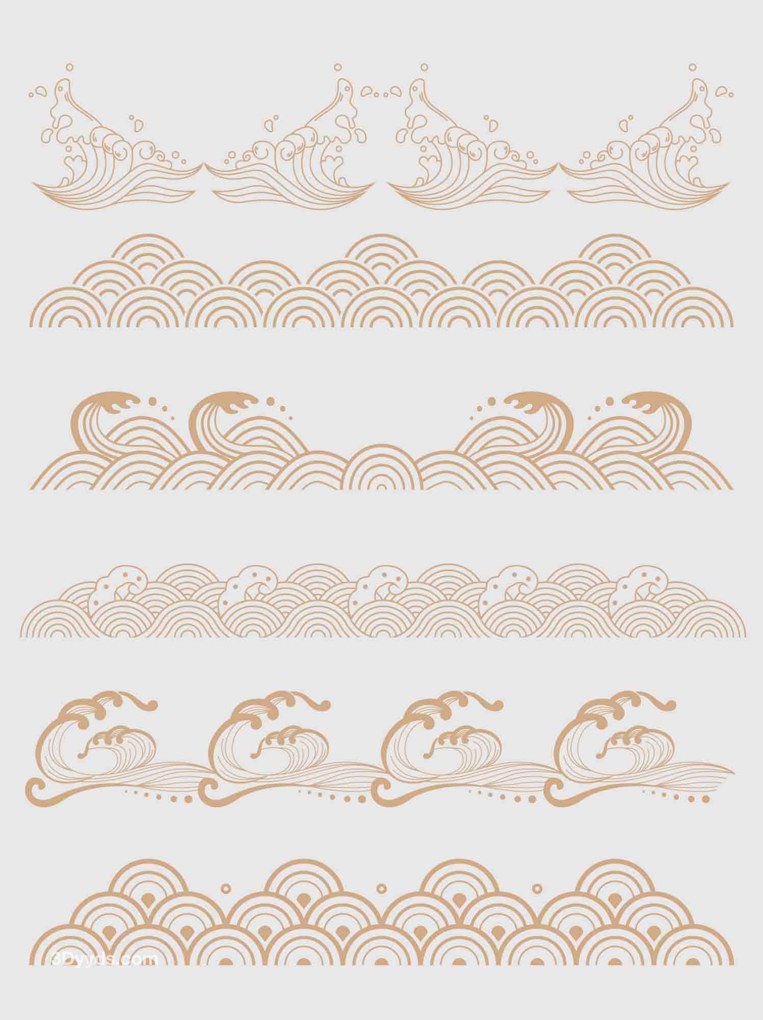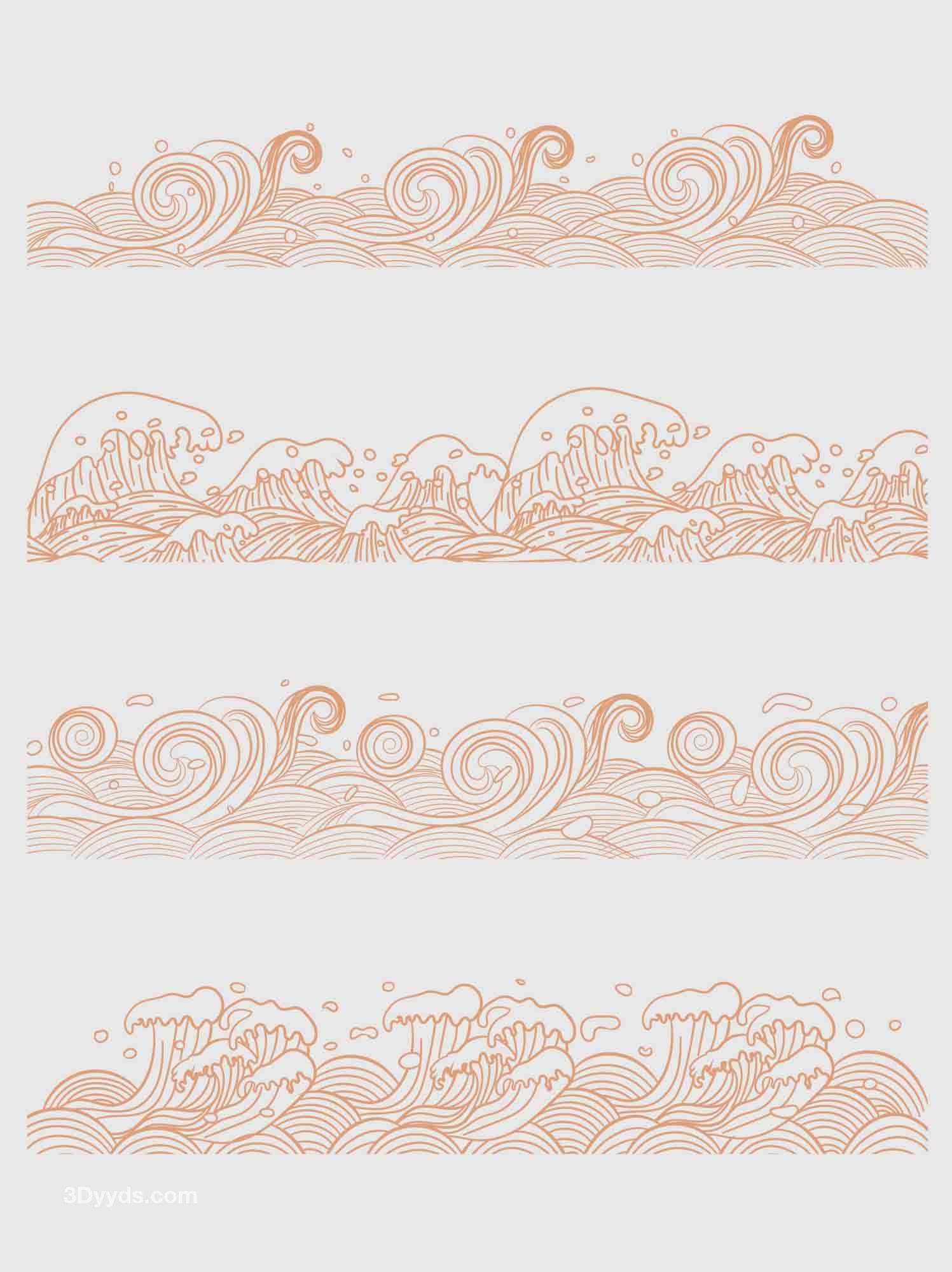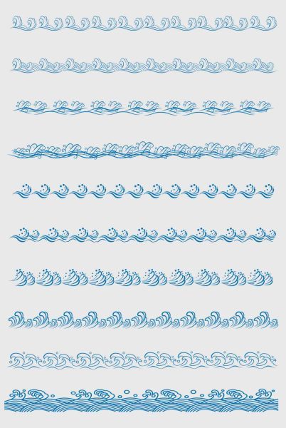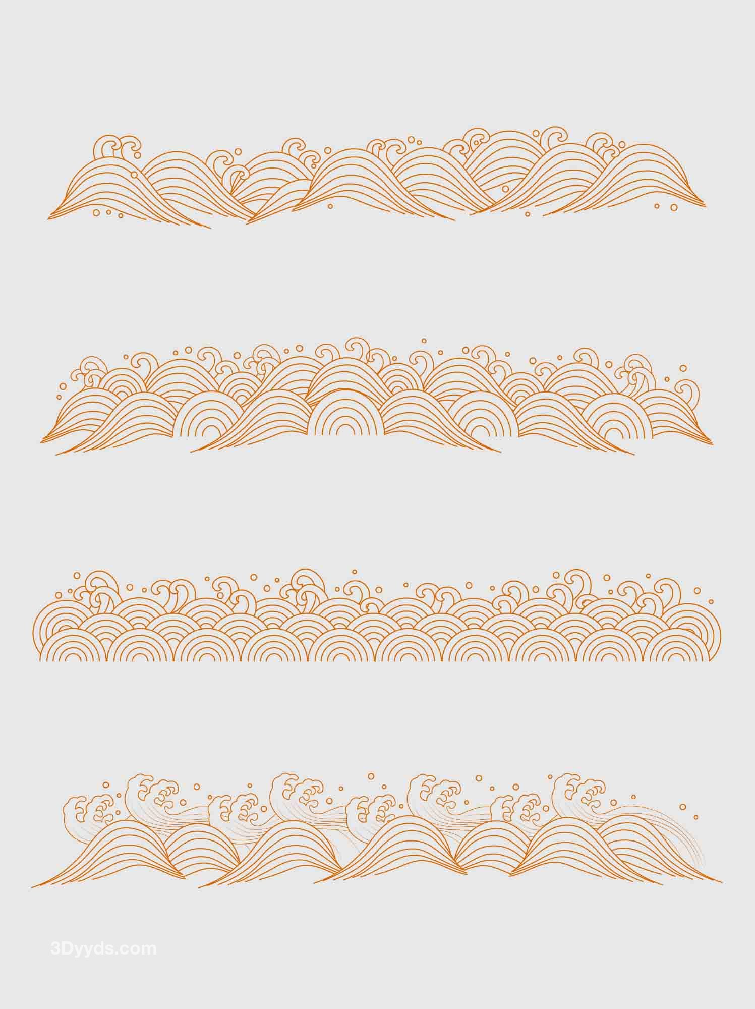 中国风传统纹理矢量浪花海浪水纹底边装饰线条AI线条元素素材