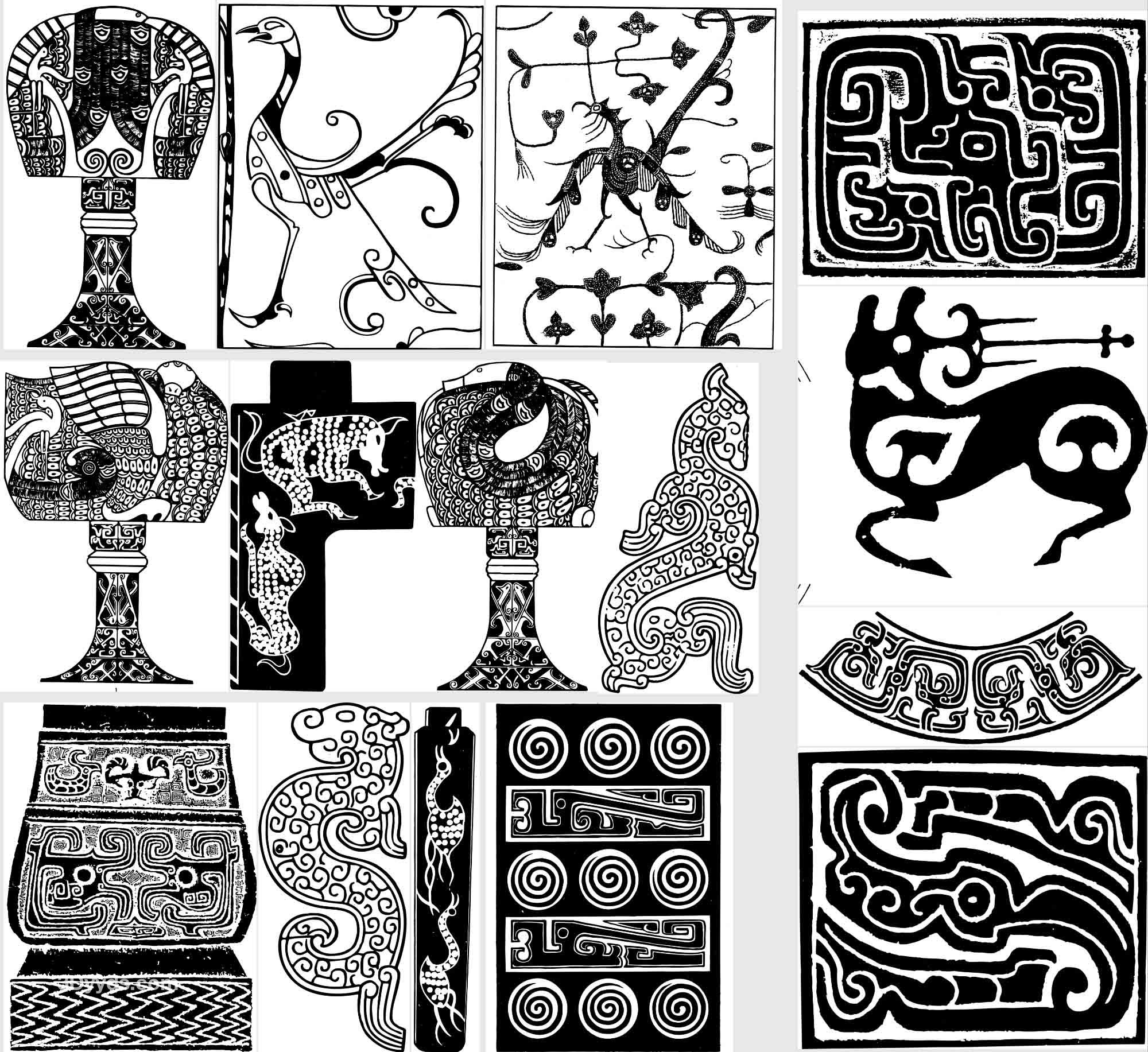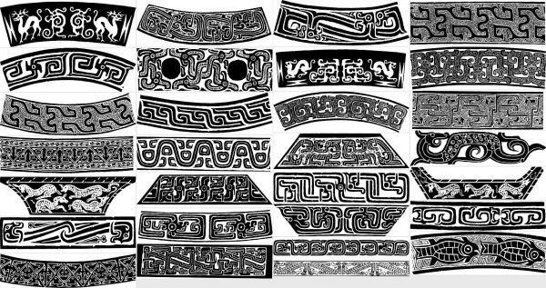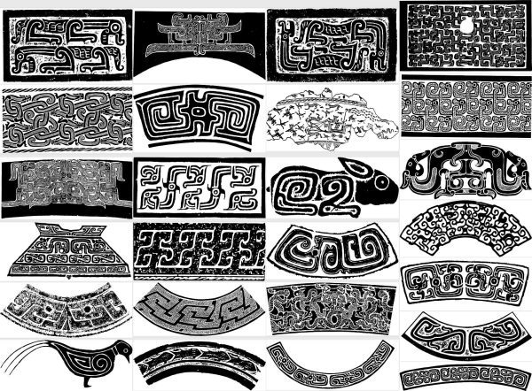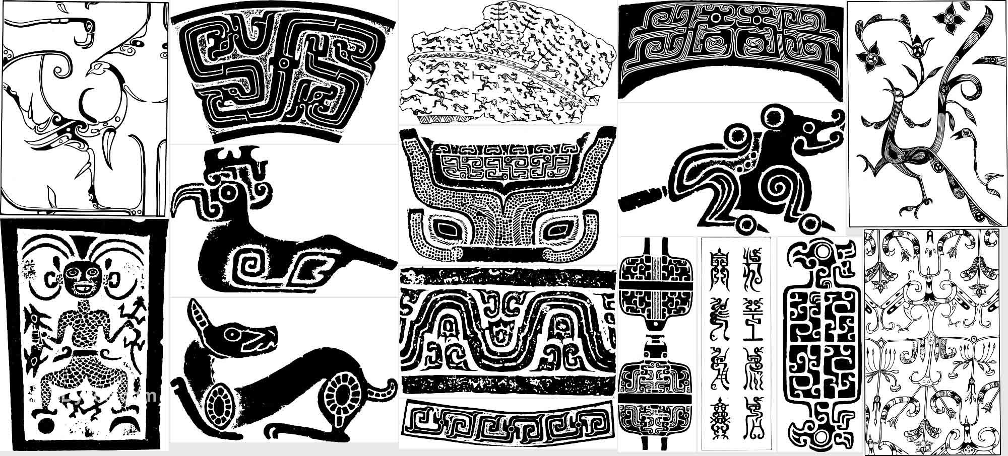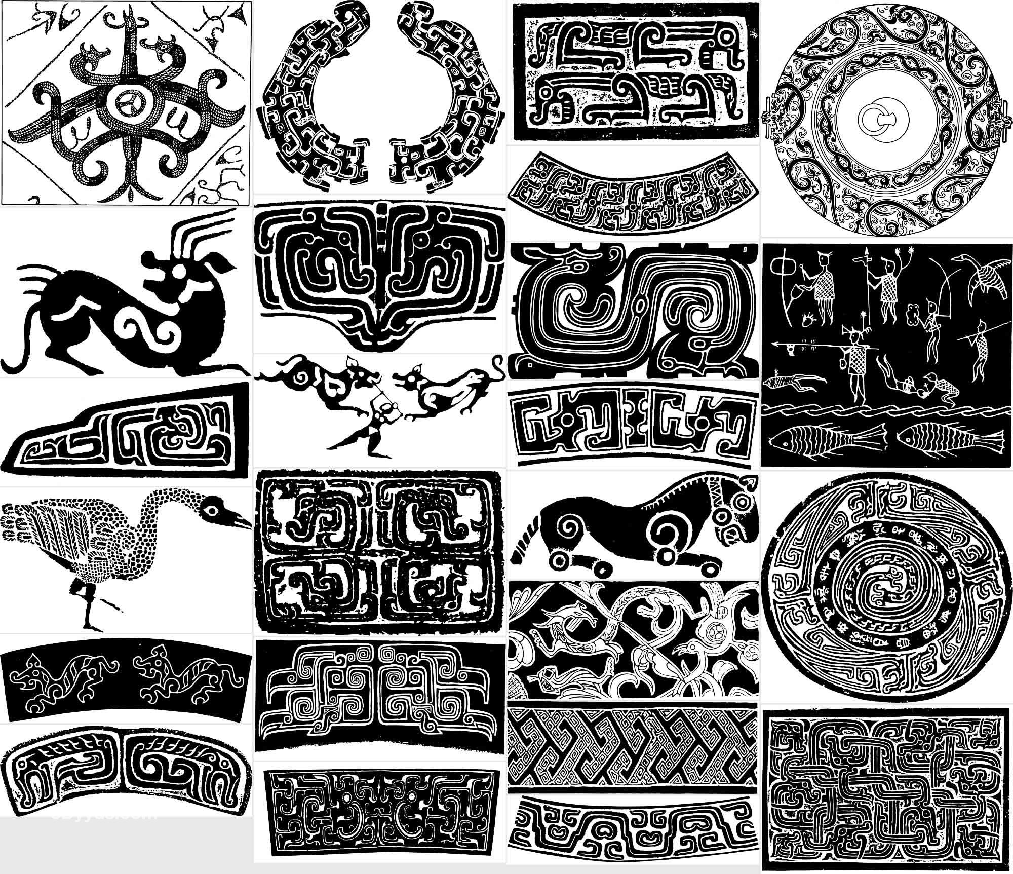 中国古代传统春秋战国纹样花纹青铜器拓片图案纹模板AI矢量素材