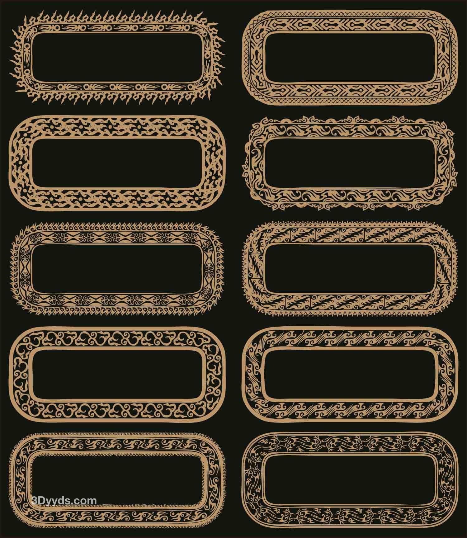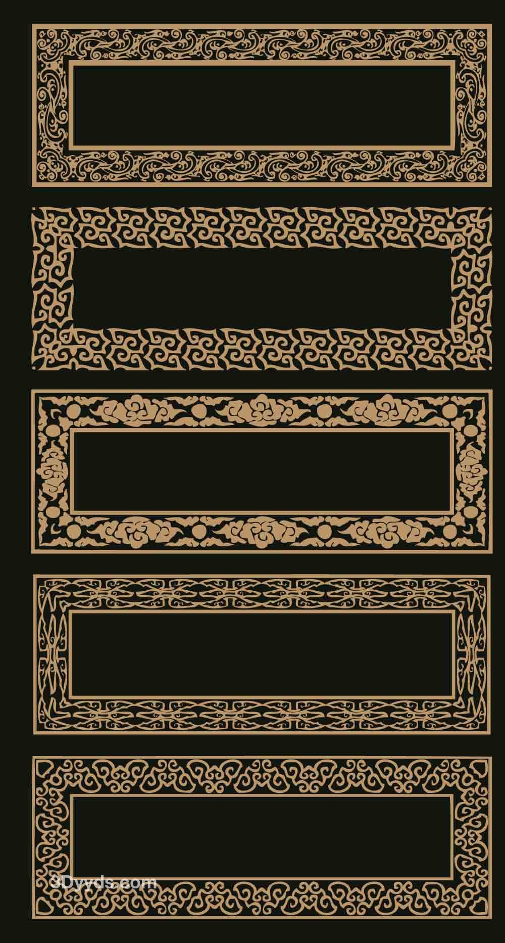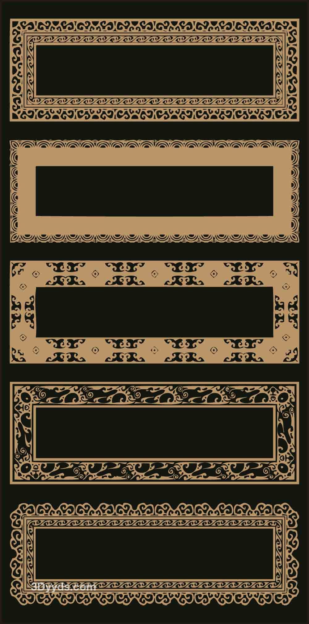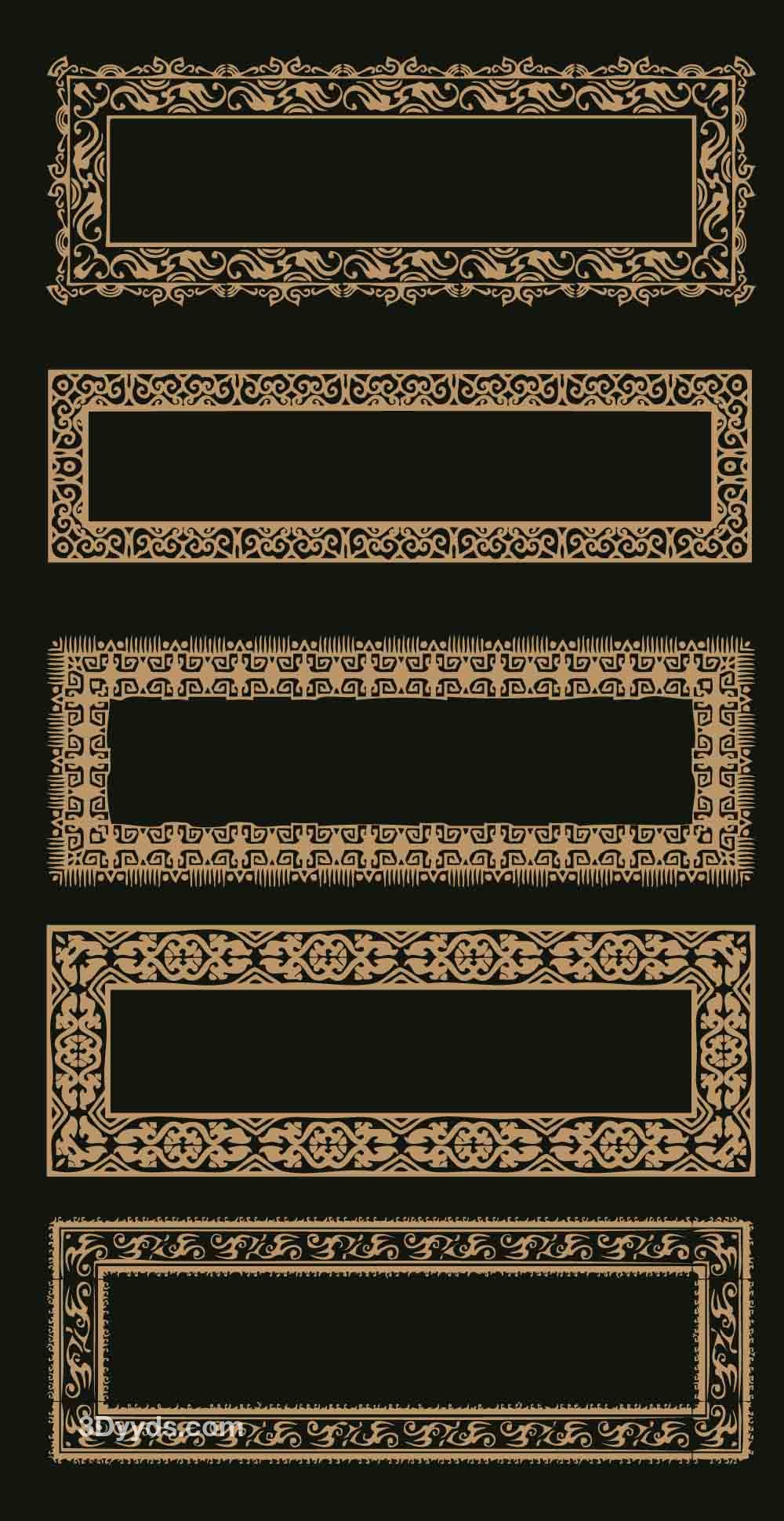 中式古典边框镂空雕刻花纹装饰文字框牌匾矢量PNG素材