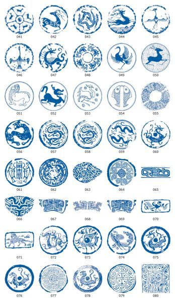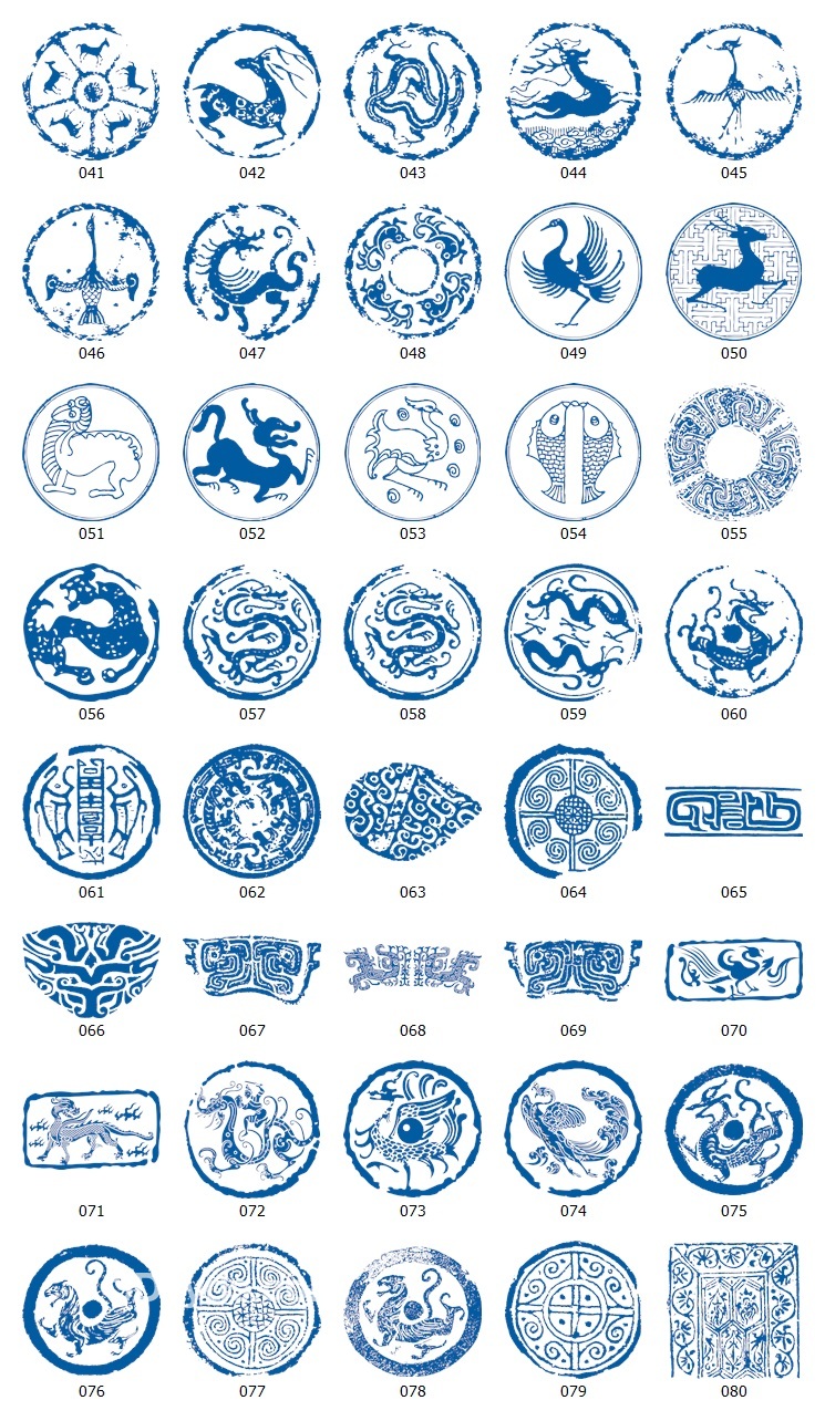 瓦当图案中国传统古典纹样拓片中式汉代装饰花纹免抠图AI矢量素材
