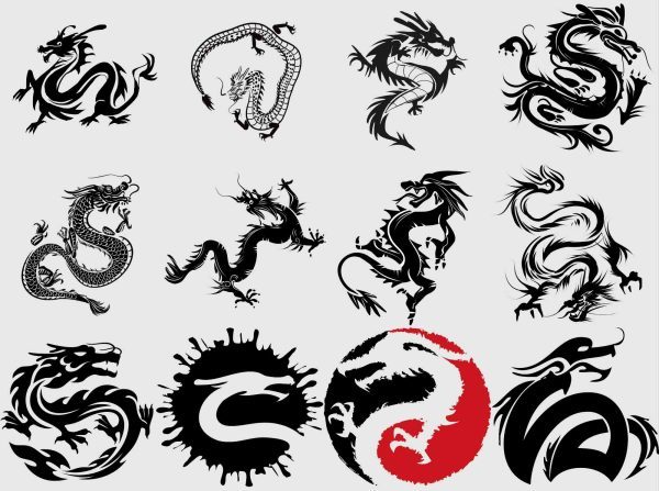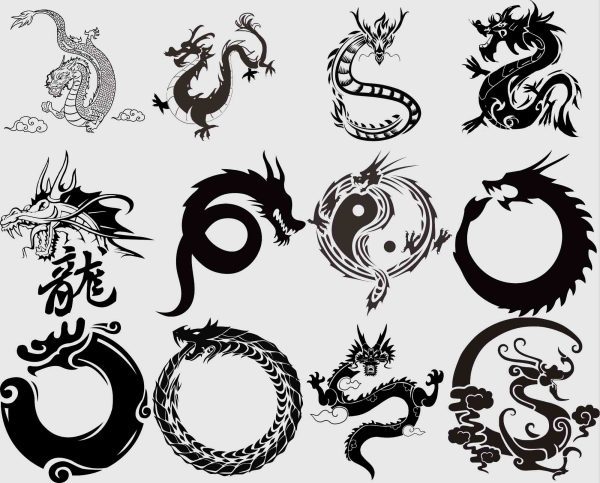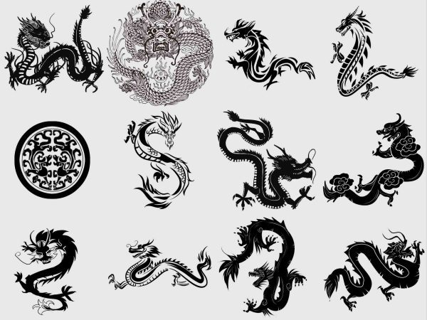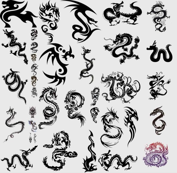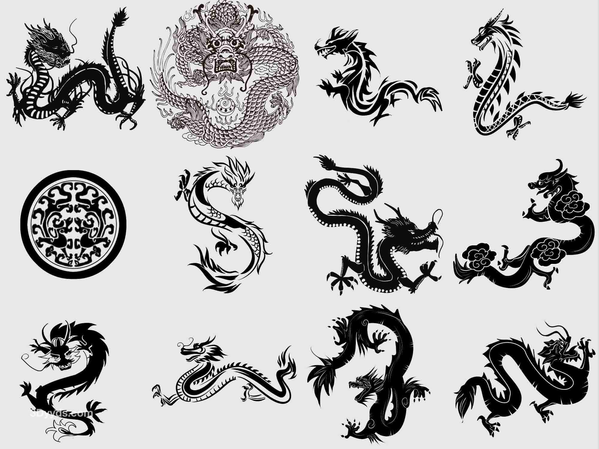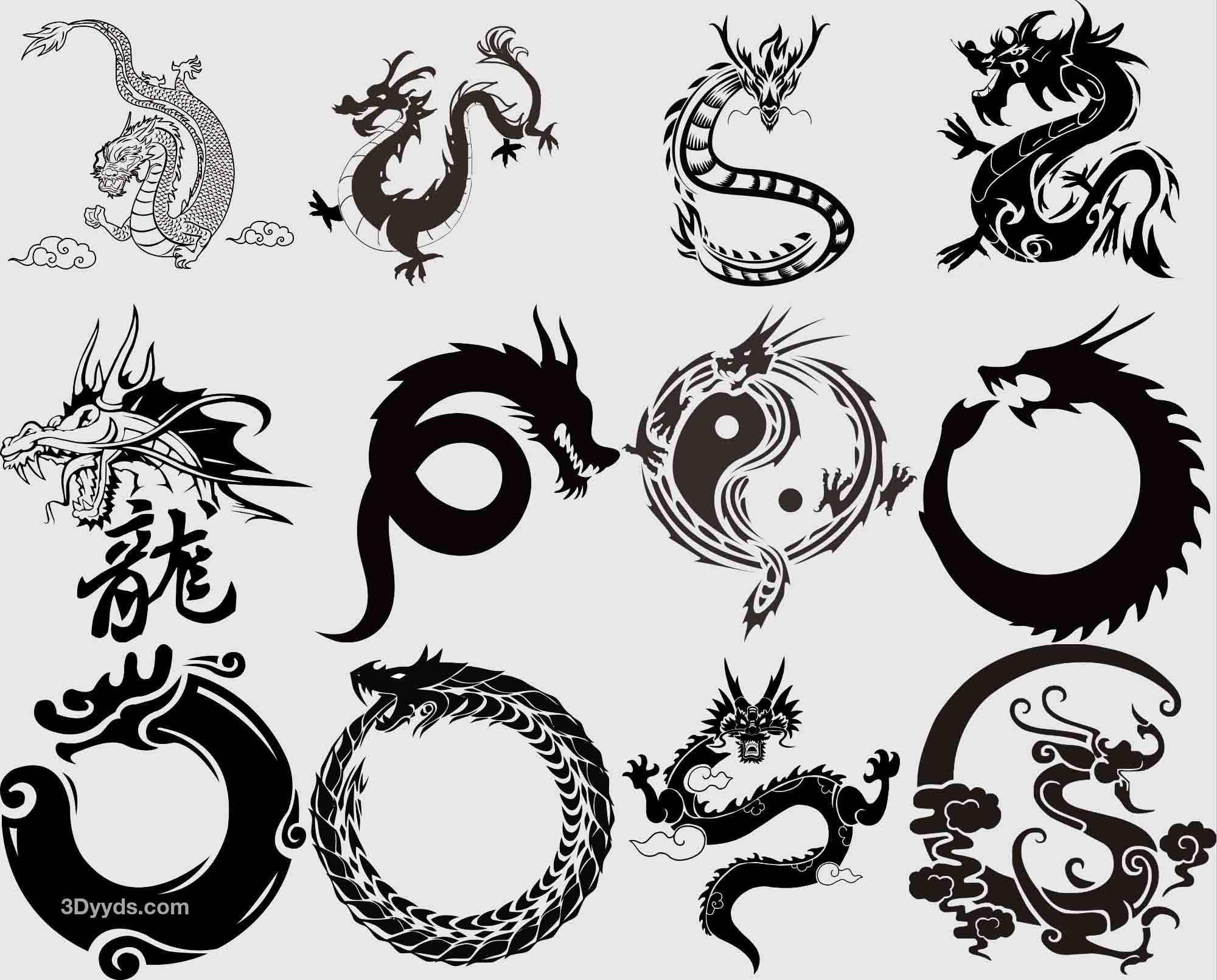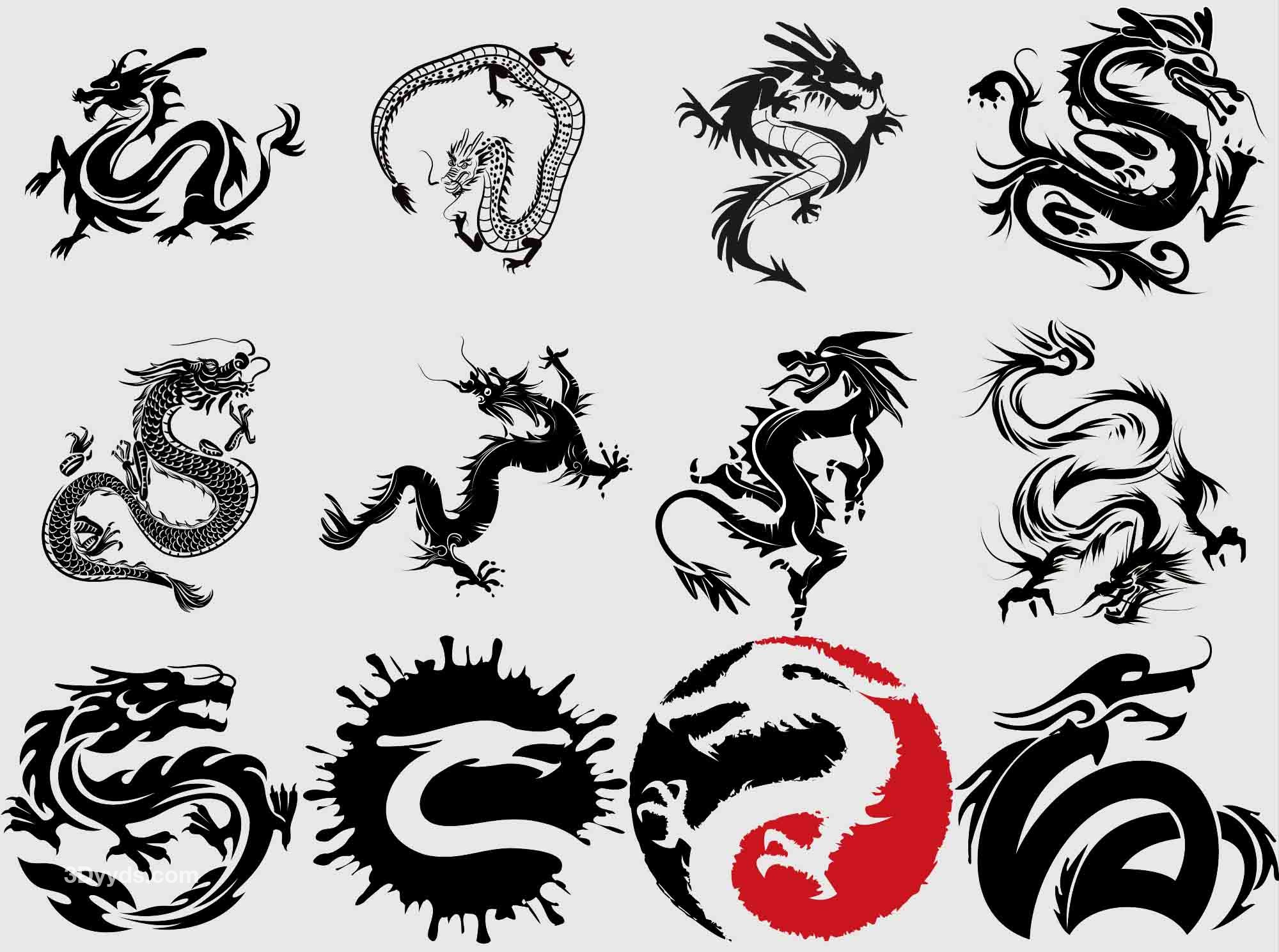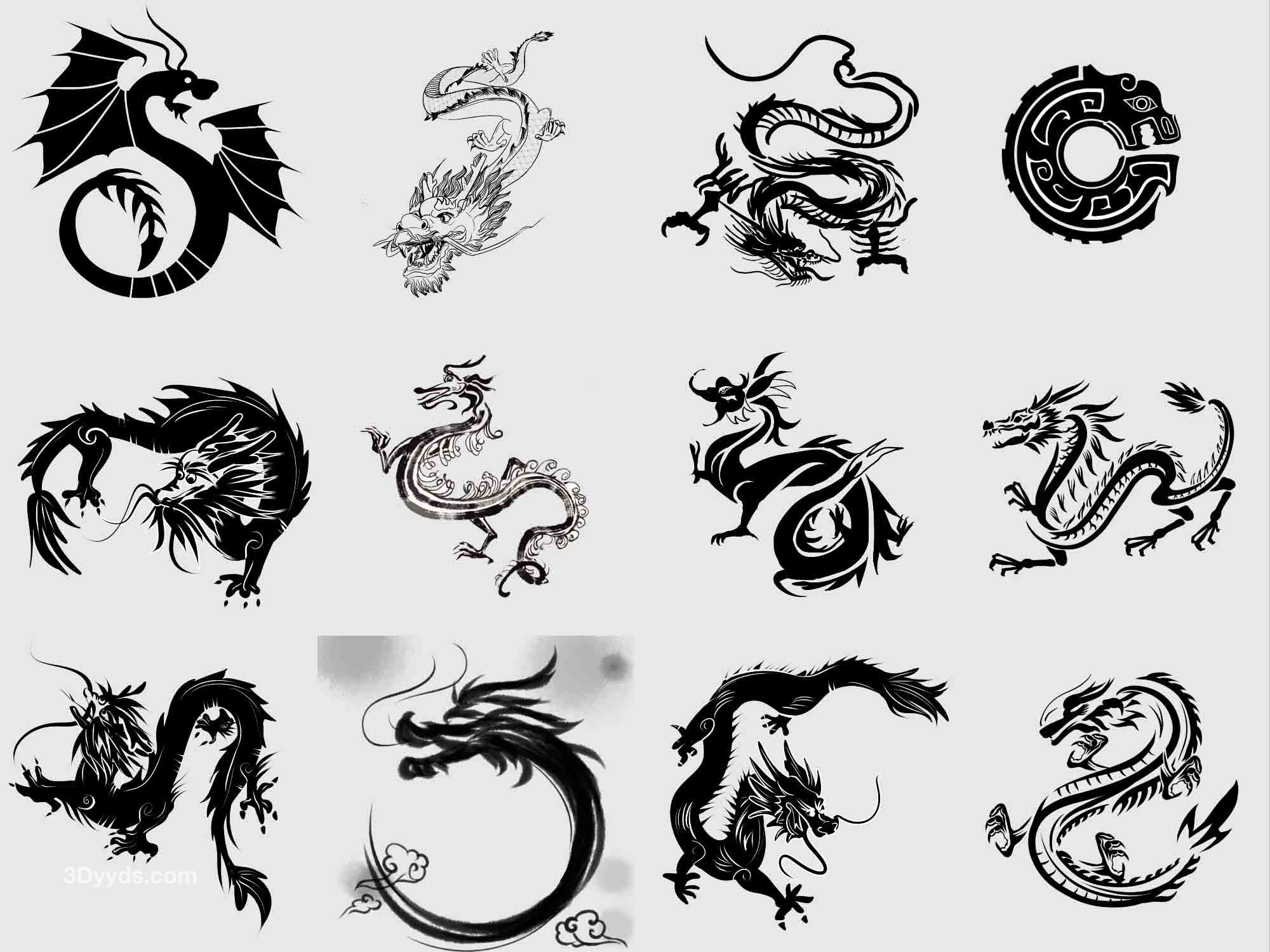 传统中国风古典龙纹龙图腾龙纹身贴纸图案PNG透明背景免扣素材图