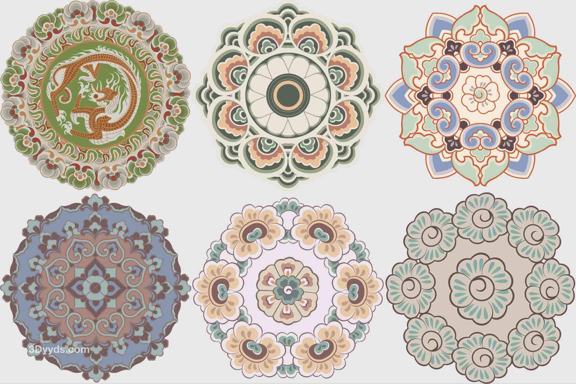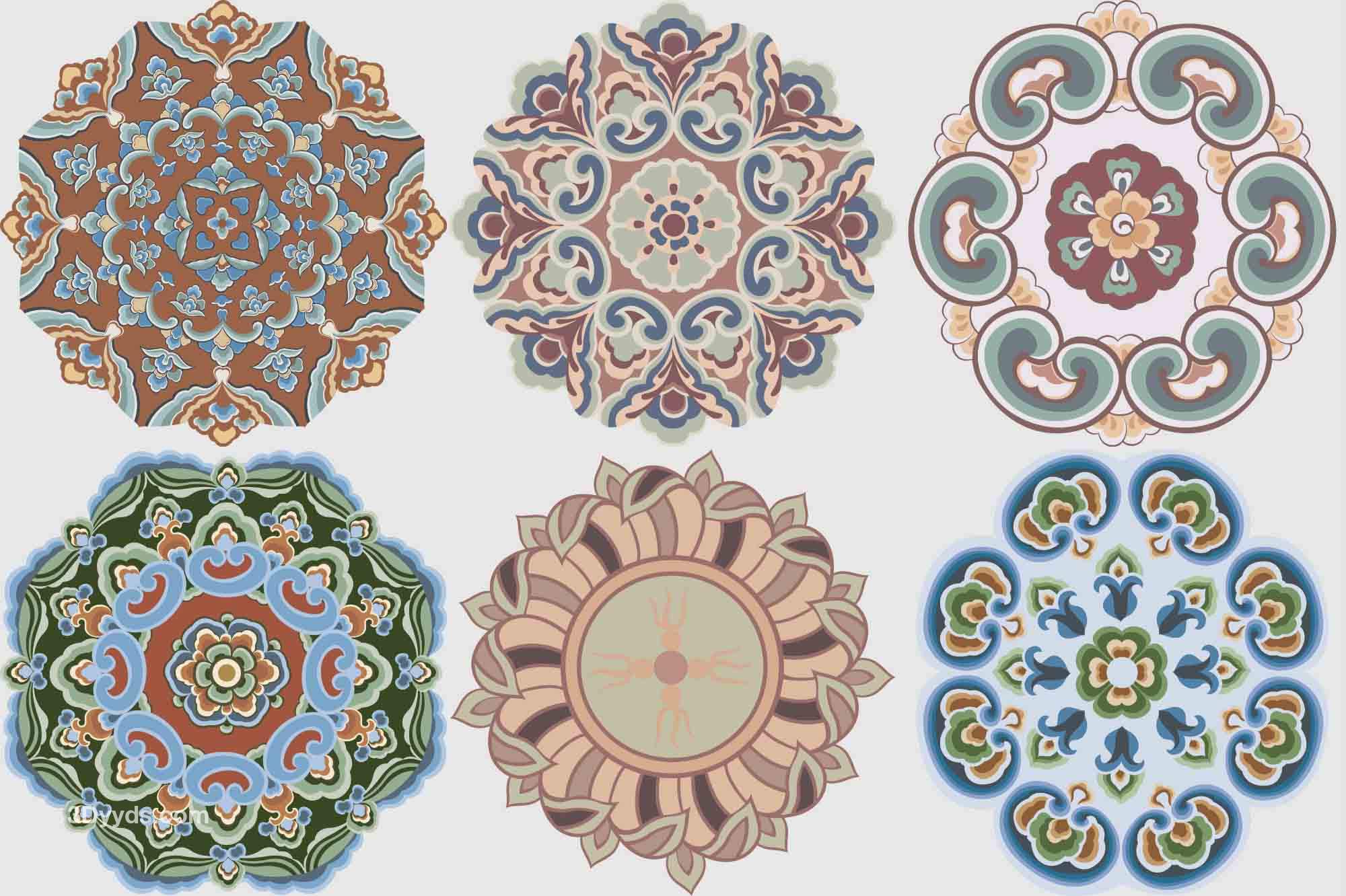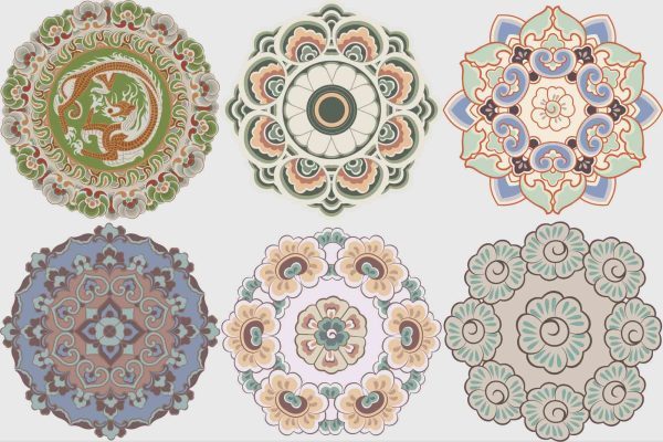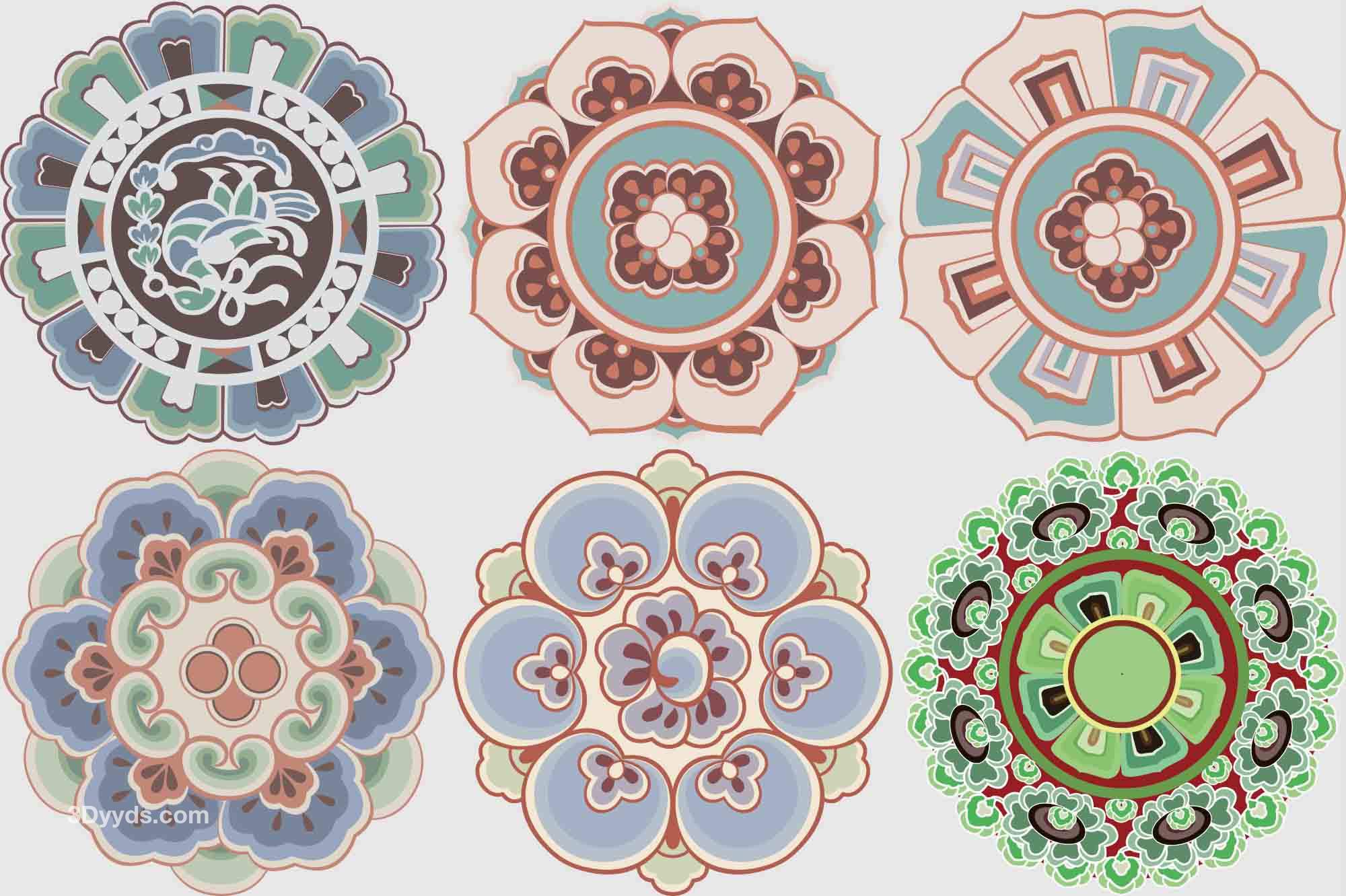 敦煌莫高窟藻井圆光图案纹样古典装饰花纹PNG对称图形AI矢量素材