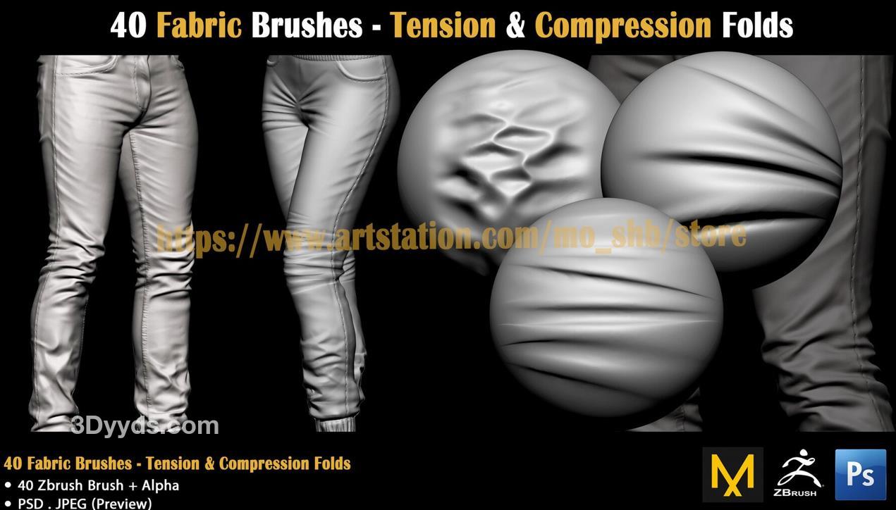 zbrush衣物裤子关节弯曲褶皱笔刷含演示视频
