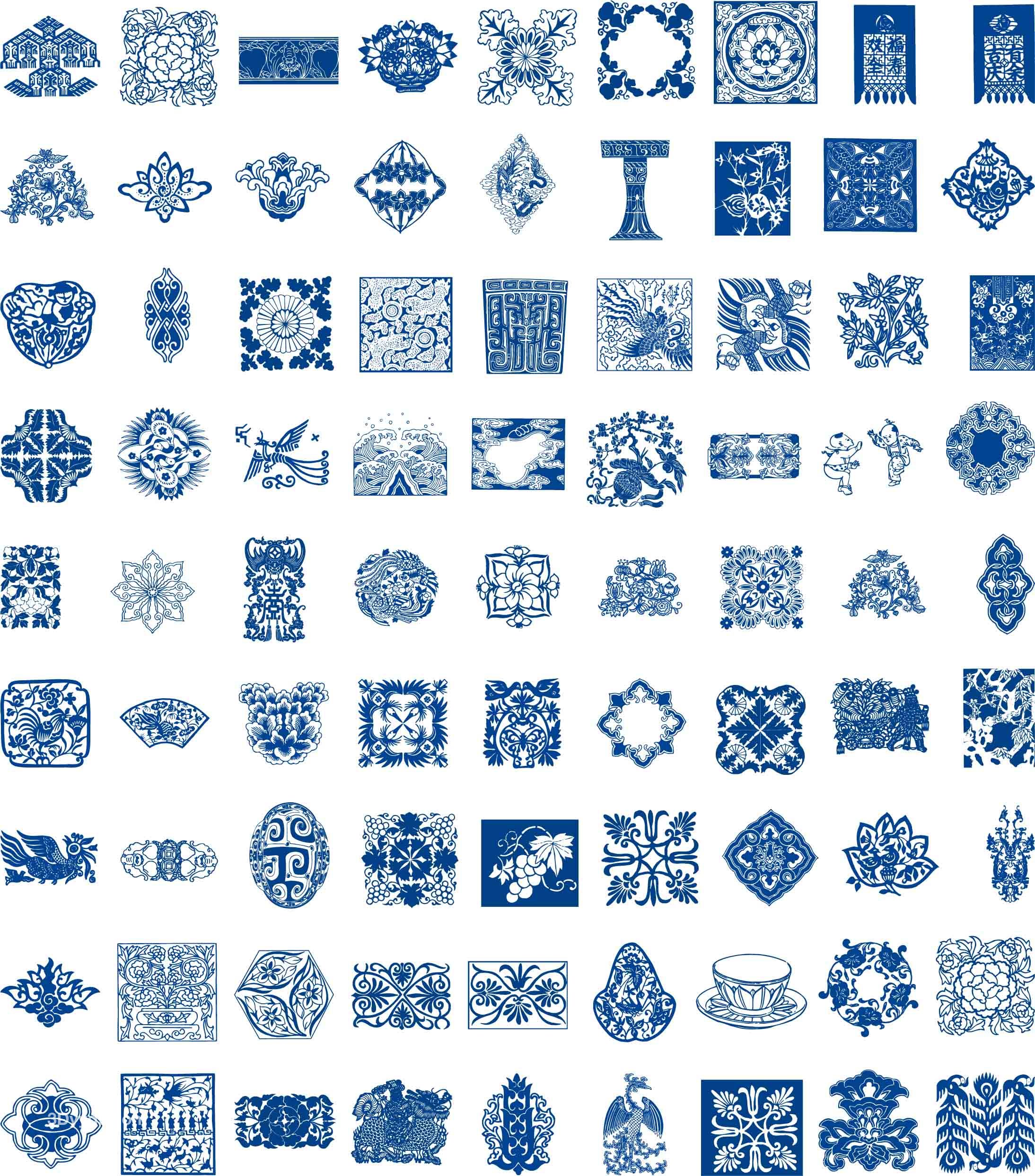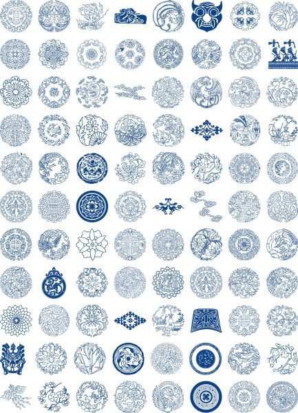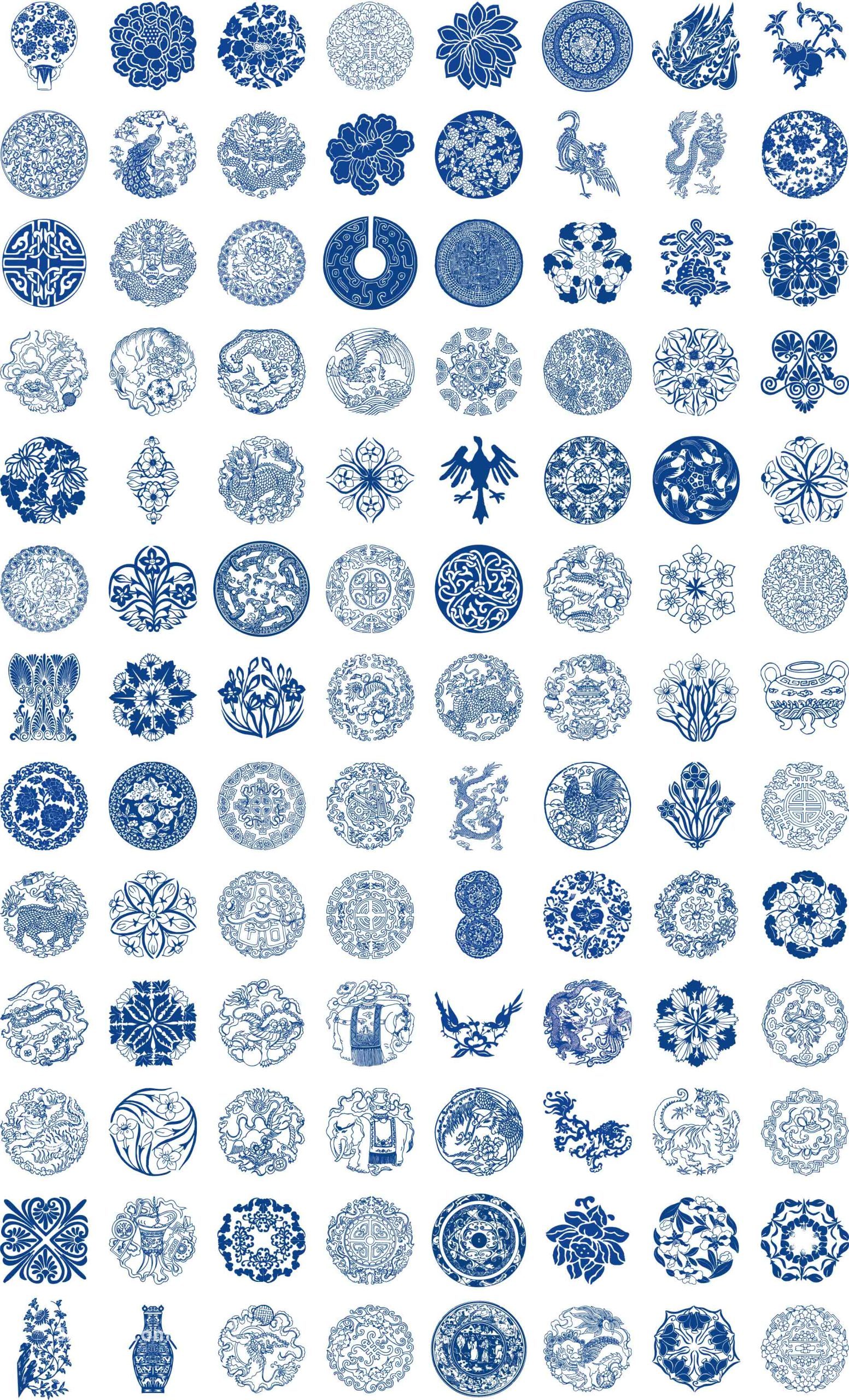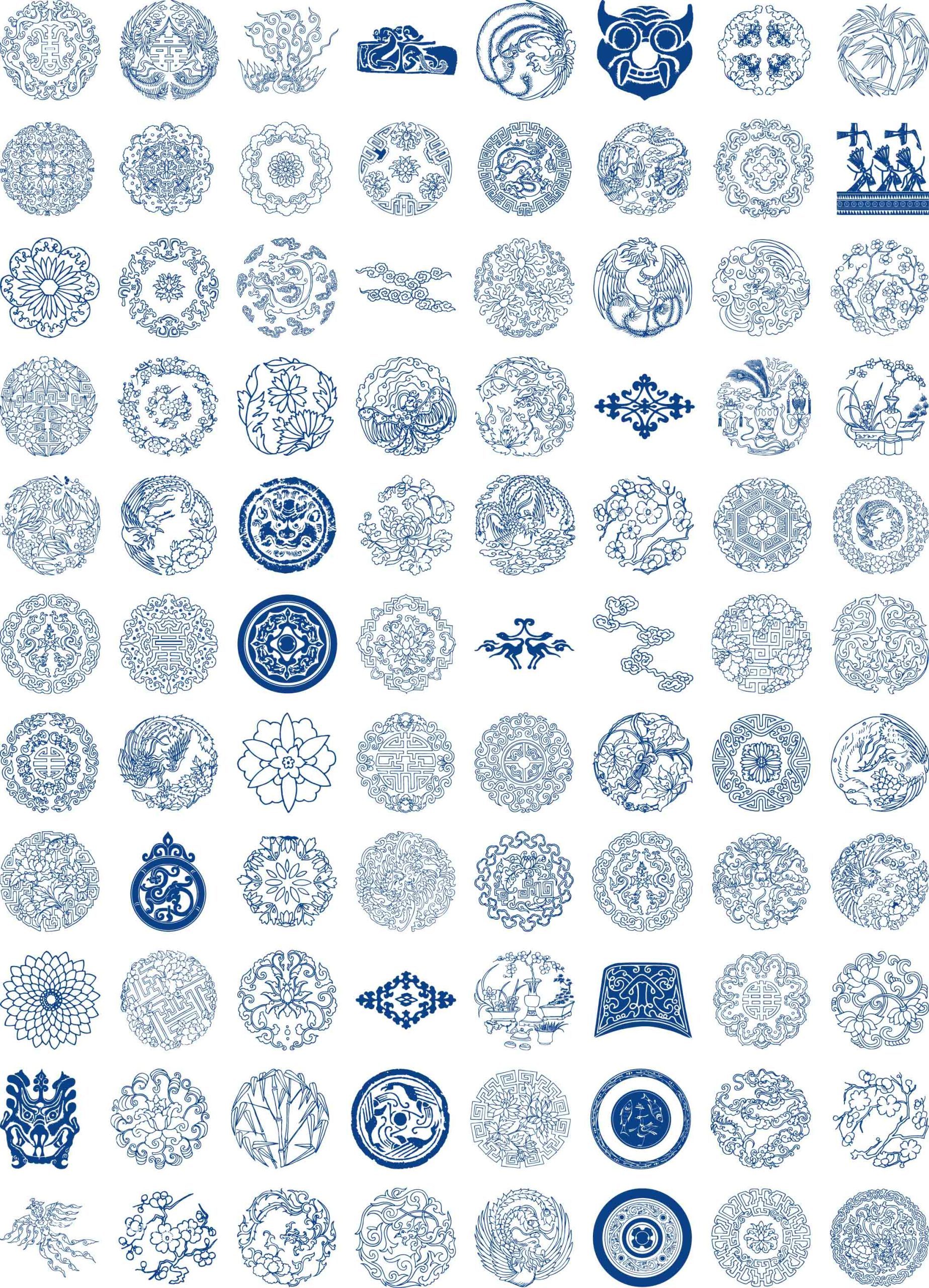 传统古典青花瓷花纹圆环圆形回形图案纹样AI矢量图PNG免抠图素材