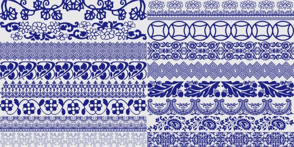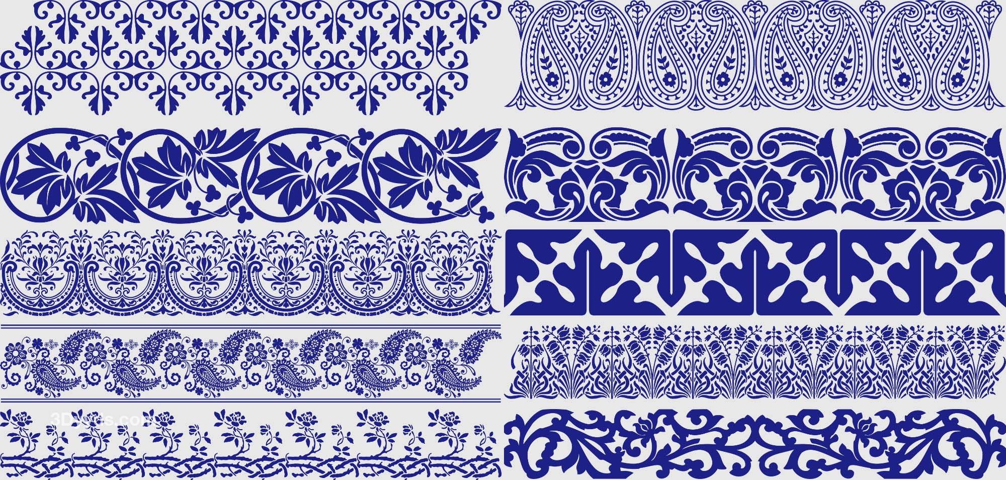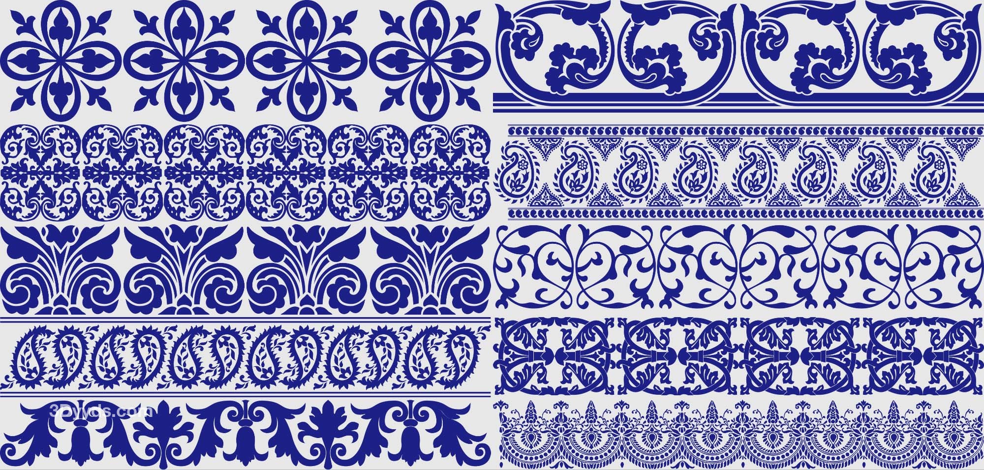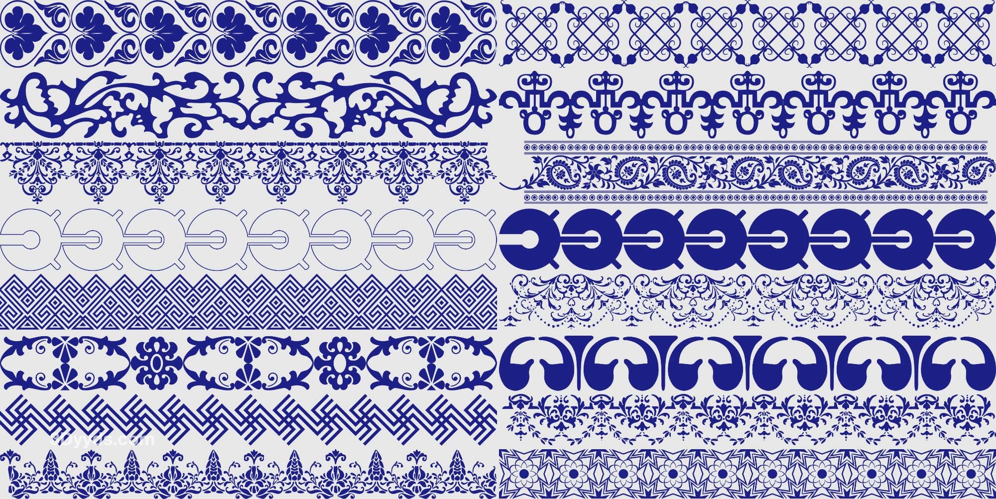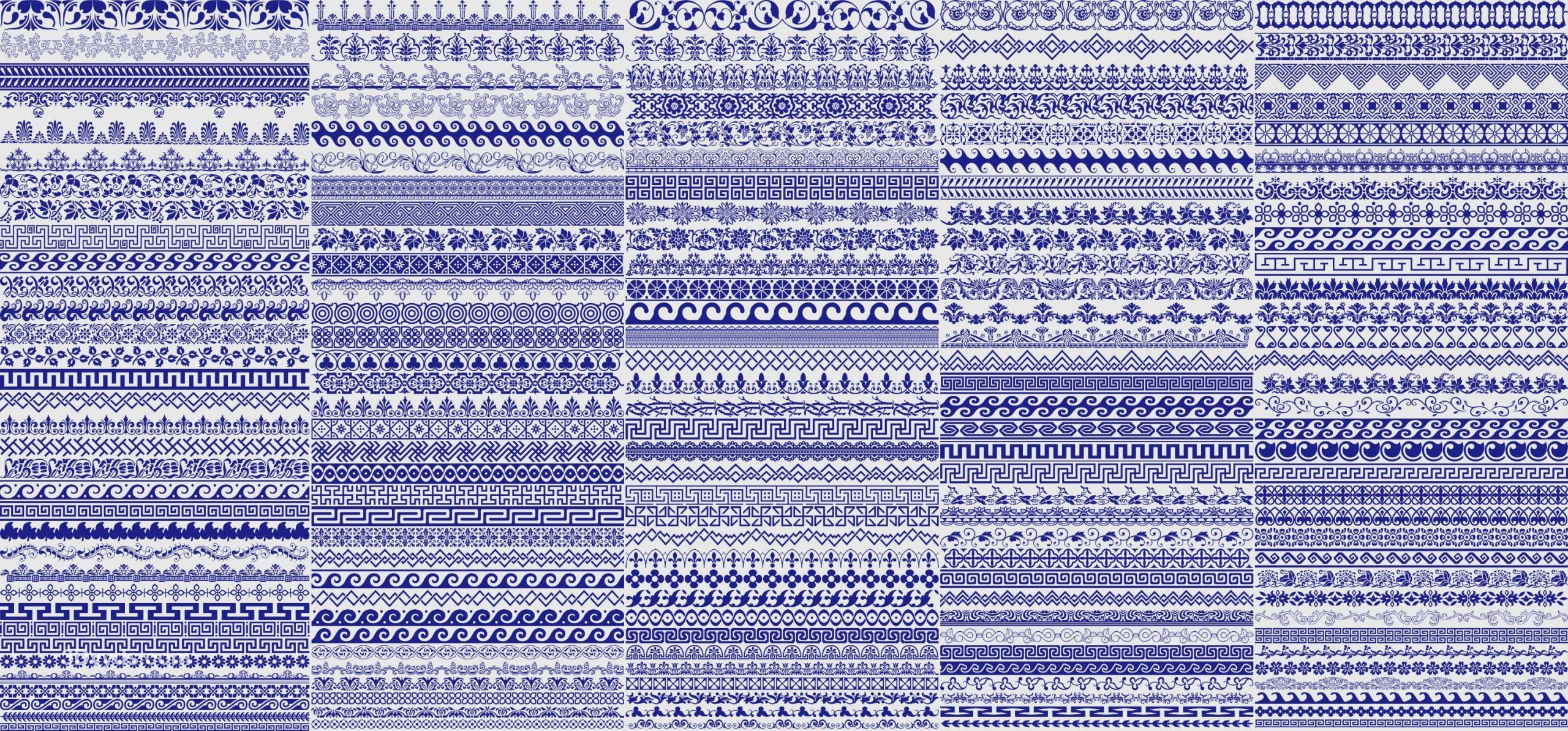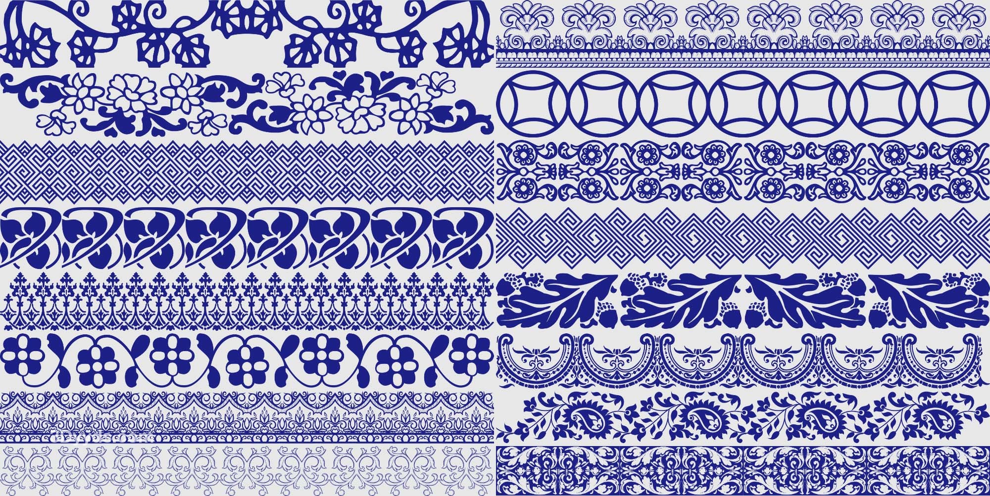 中式古典传统青花瓷边饰贴边花纹图案纹样装饰AI矢量设计PNG素材
