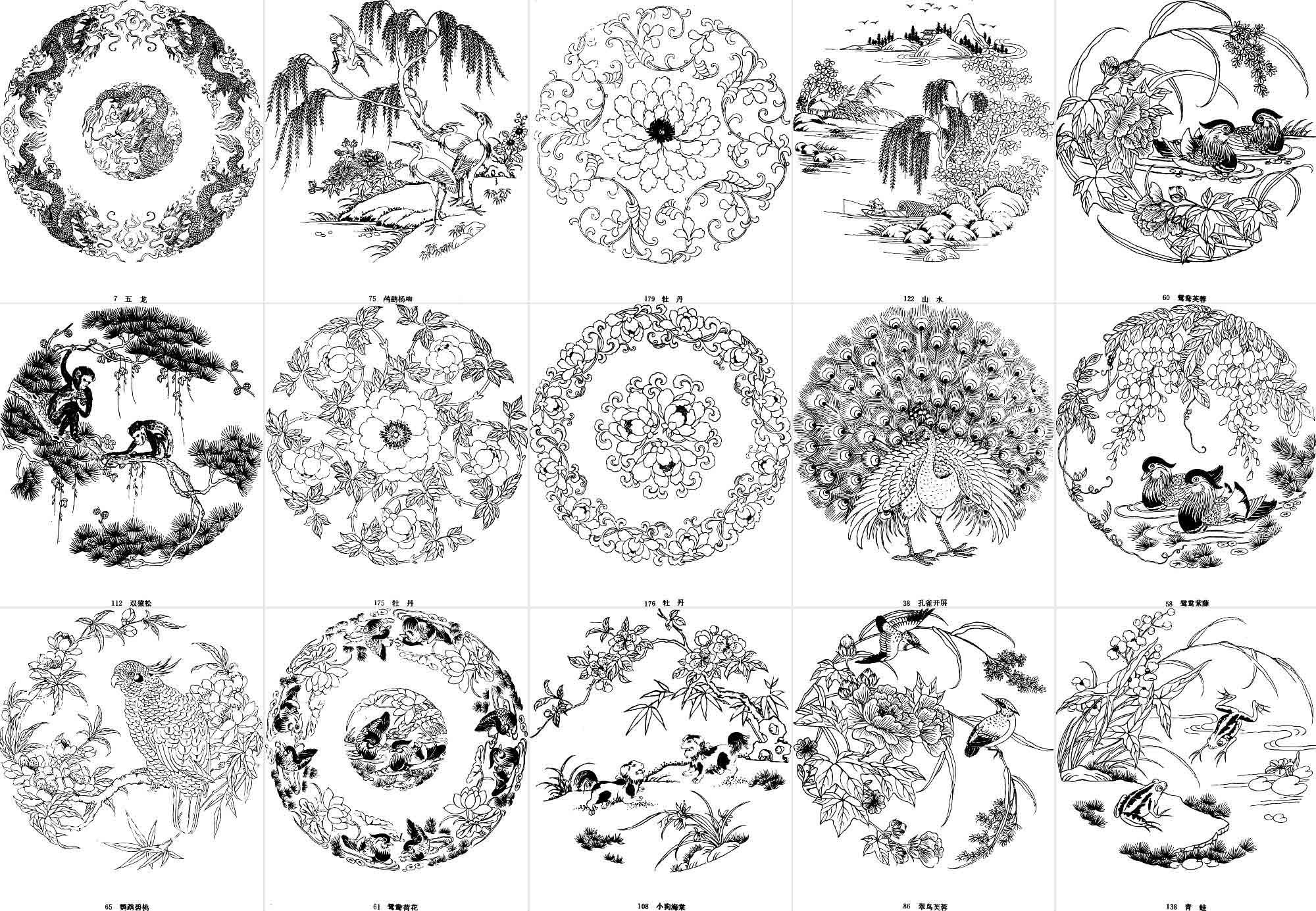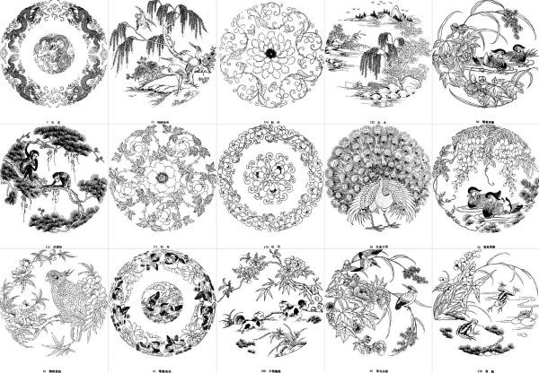 古典传统苏绣刺绣图案纹样龙凤鸳鸯孔雀AI矢量设计素材PNG免抠图