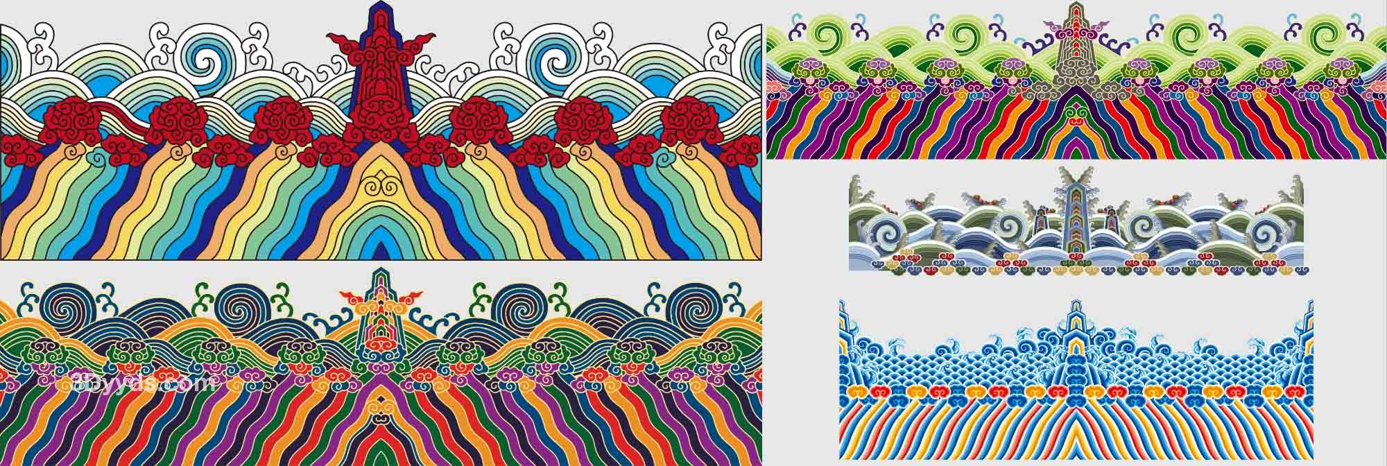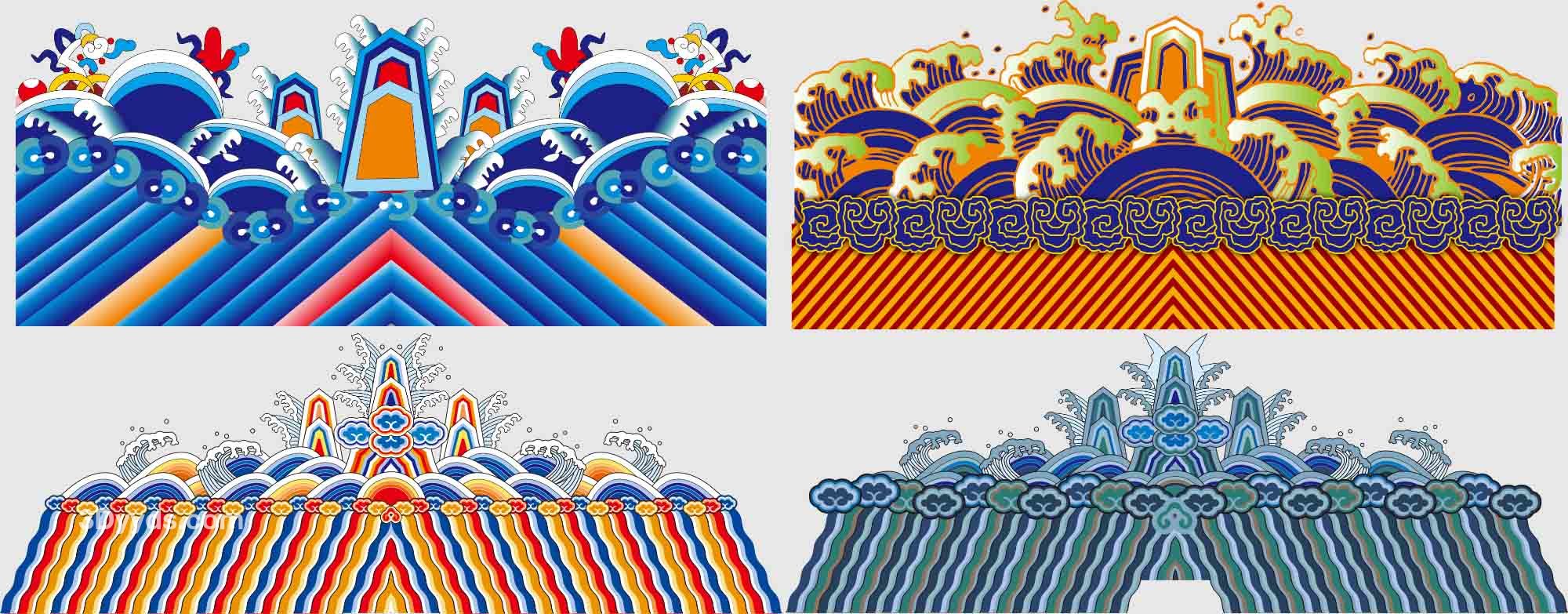 江崖海水纹底纹理纹样图案官服龙袍下摆袖口刺绣AI矢量图设计素材