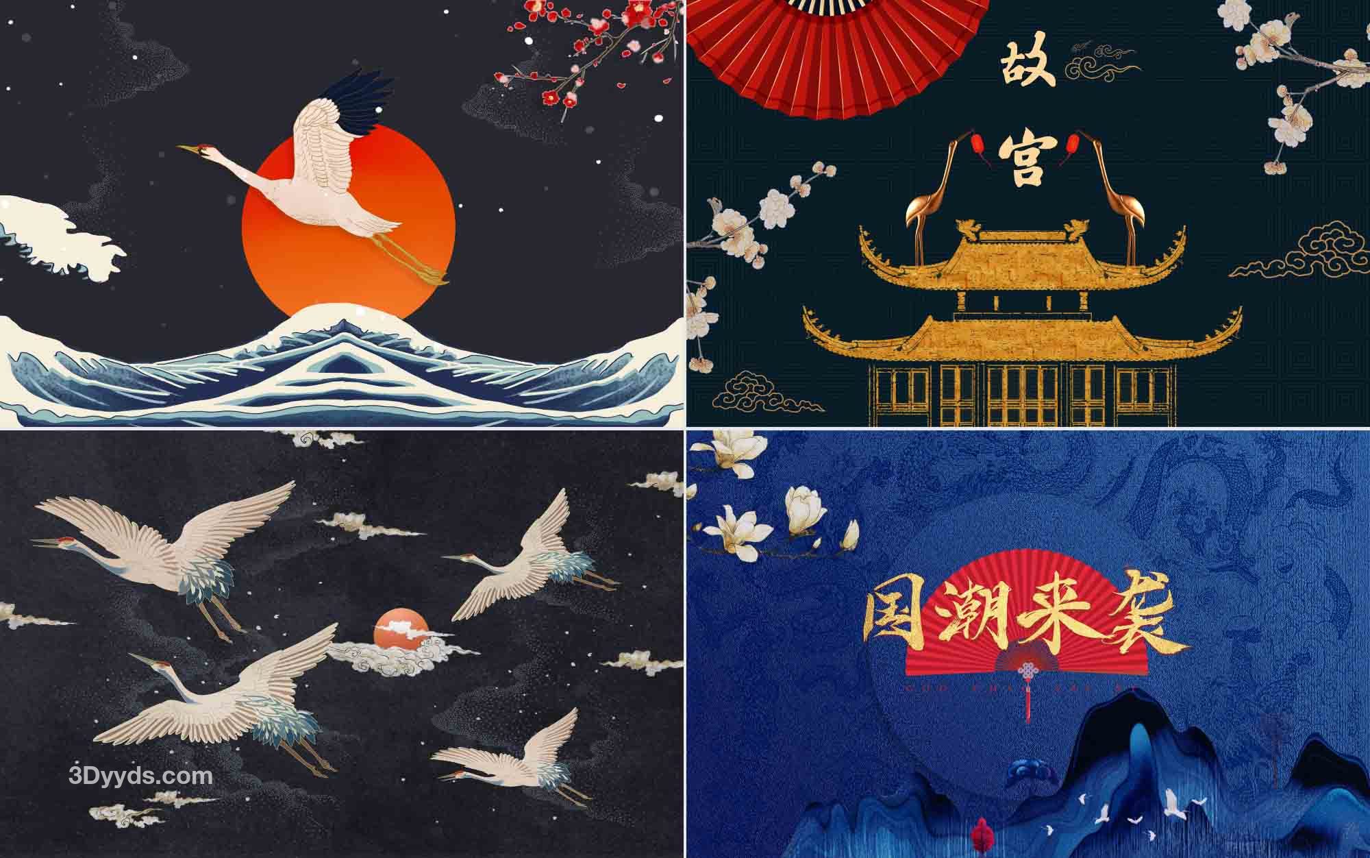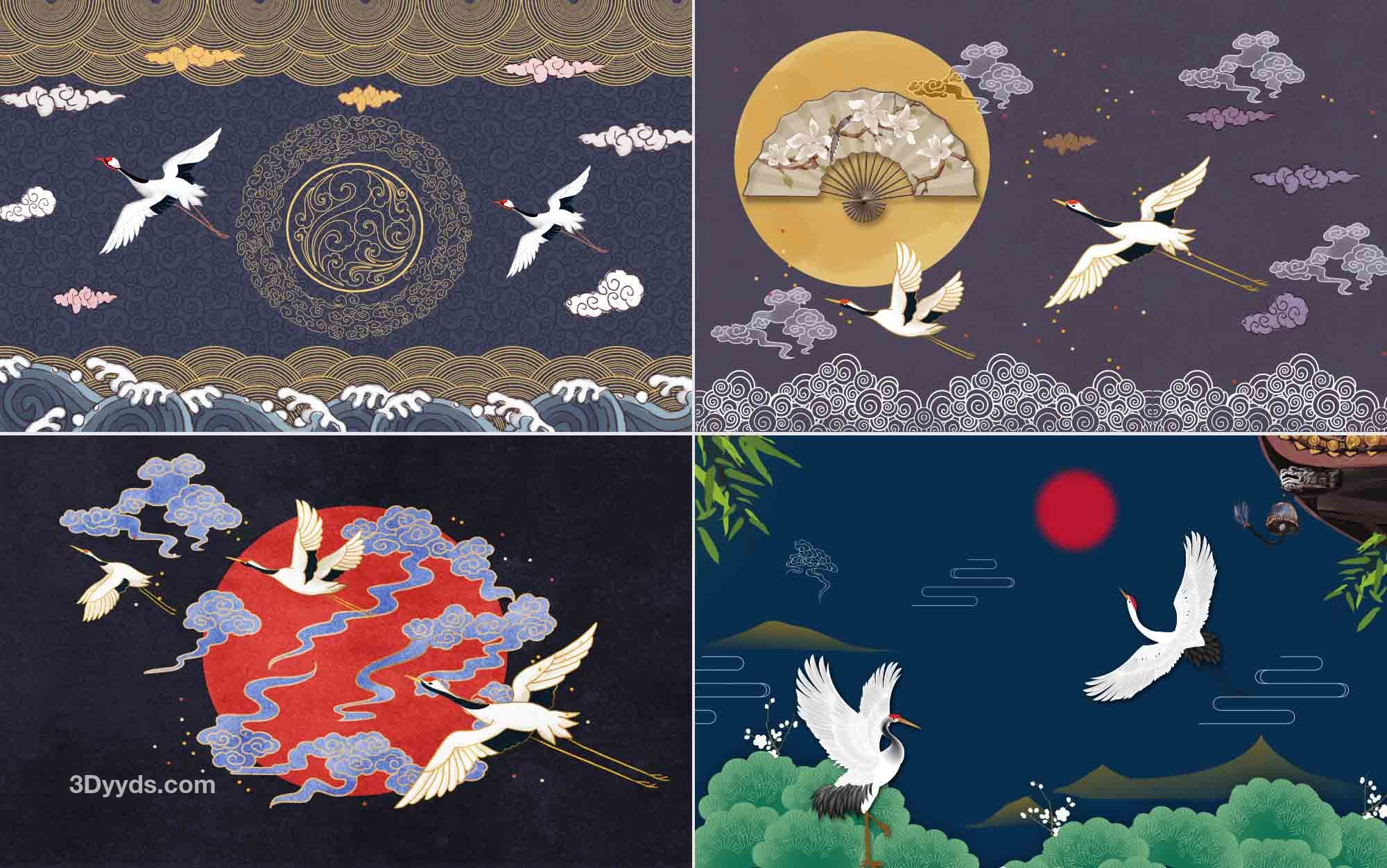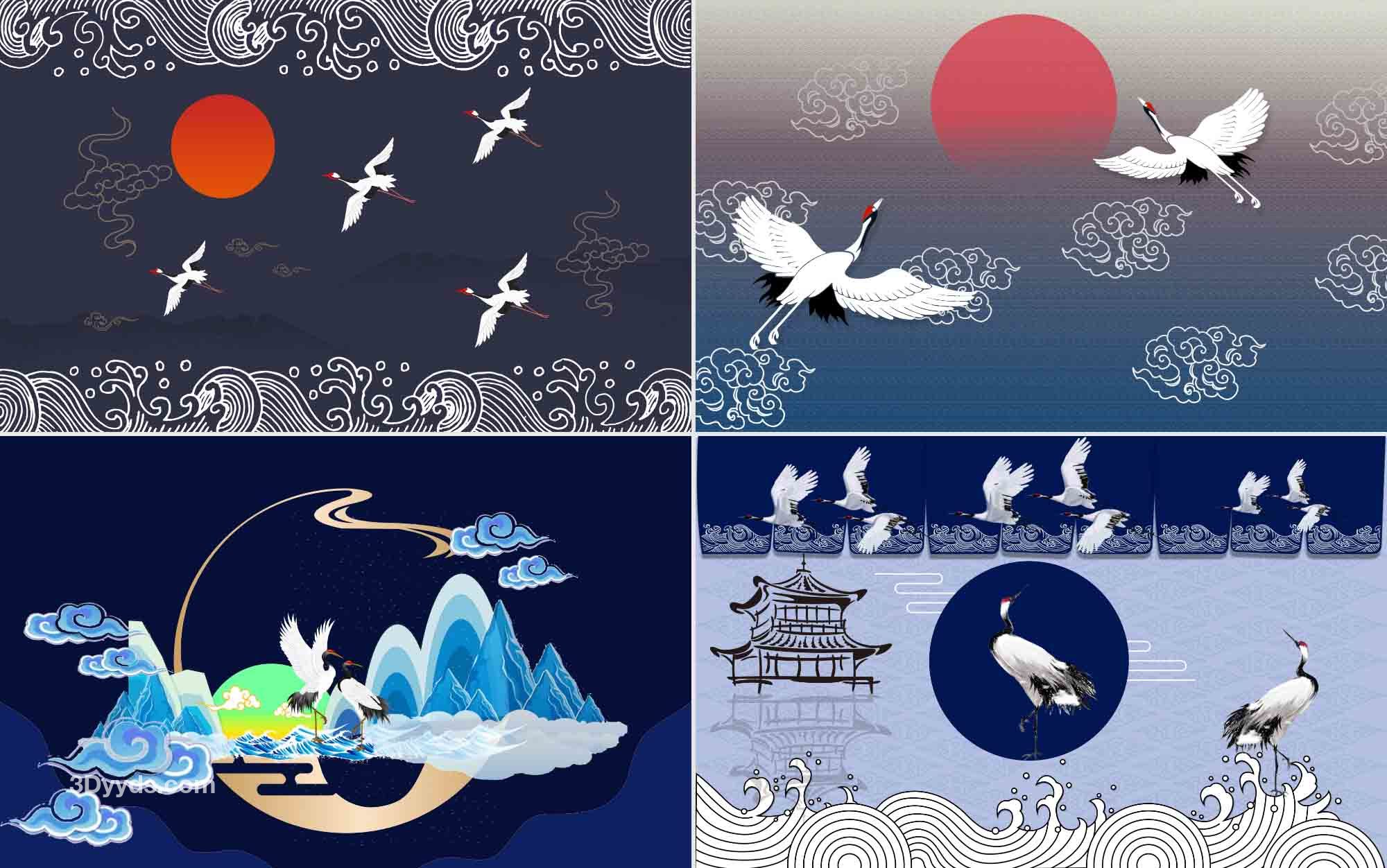 中国风中式仙鹤凤凰神鸟背景底纹理包装饰海报模板psd源文件素材