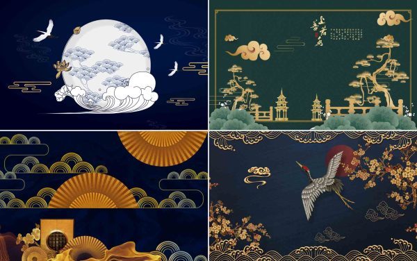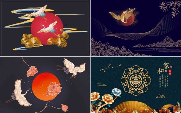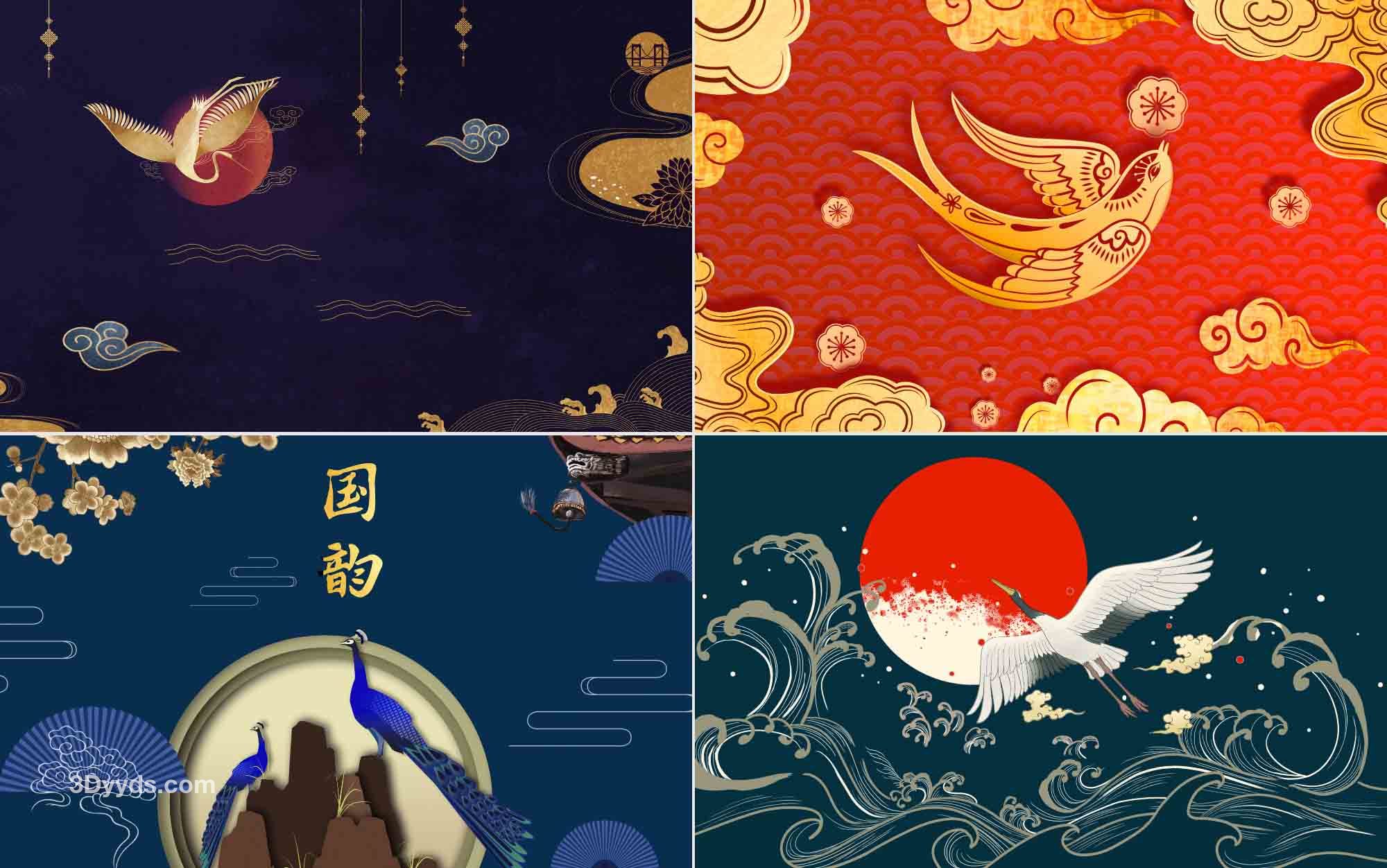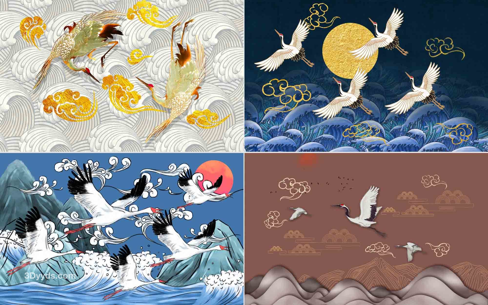 中国风中式仙鹤凤凰神鸟背景底纹理包装饰海报模板psd源文件素材