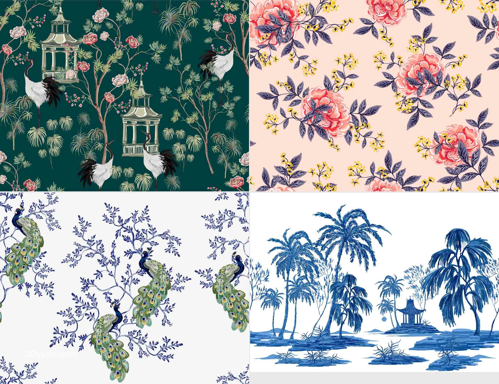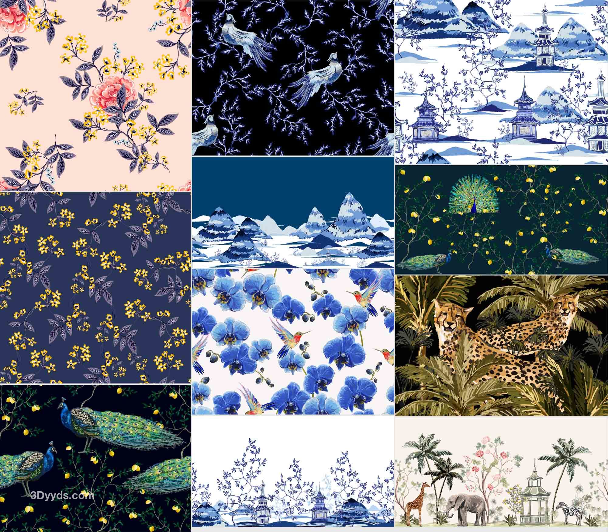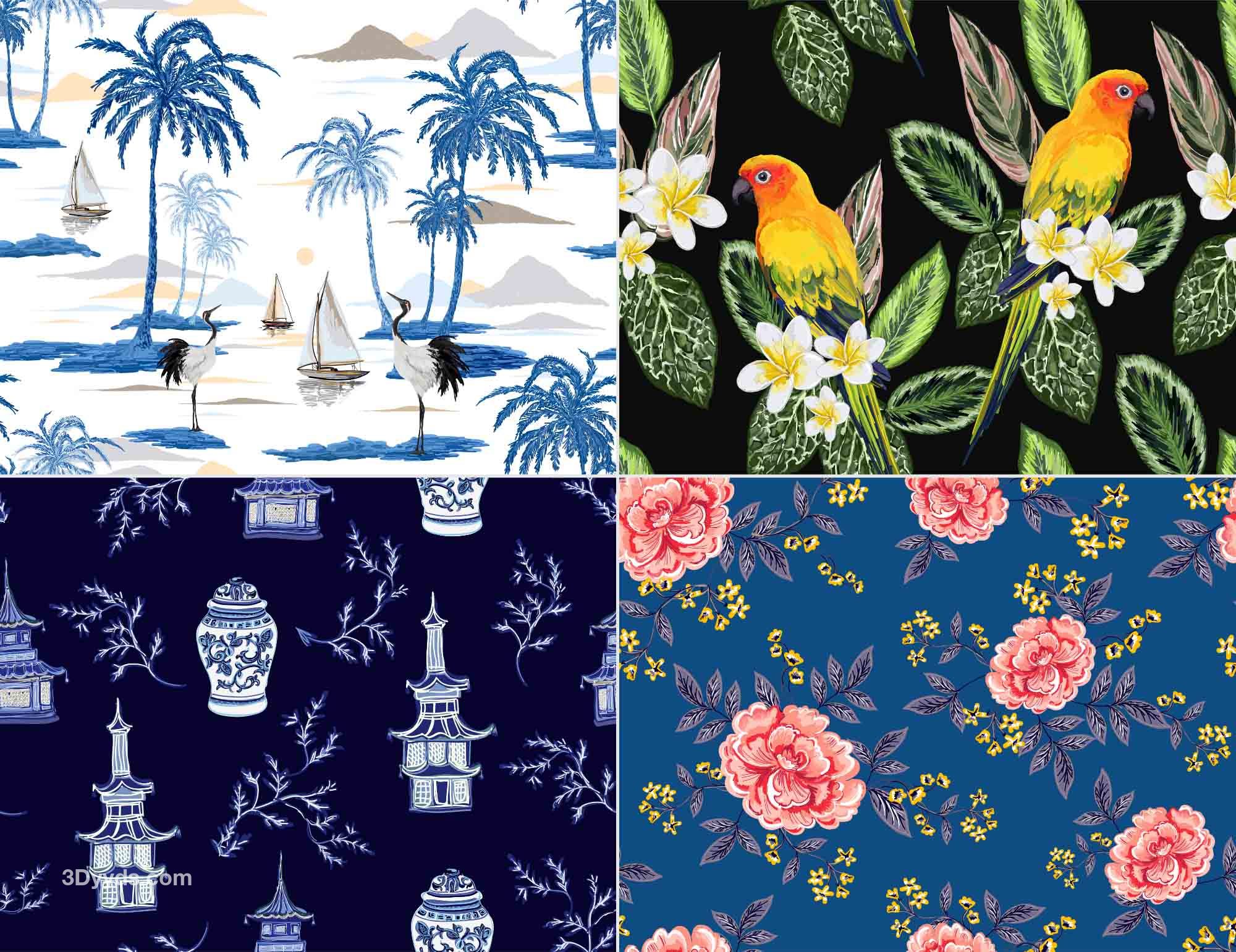 中式传统古典无缝花纹背景壁纸底纹理植物插画图案设计矢量AI素材