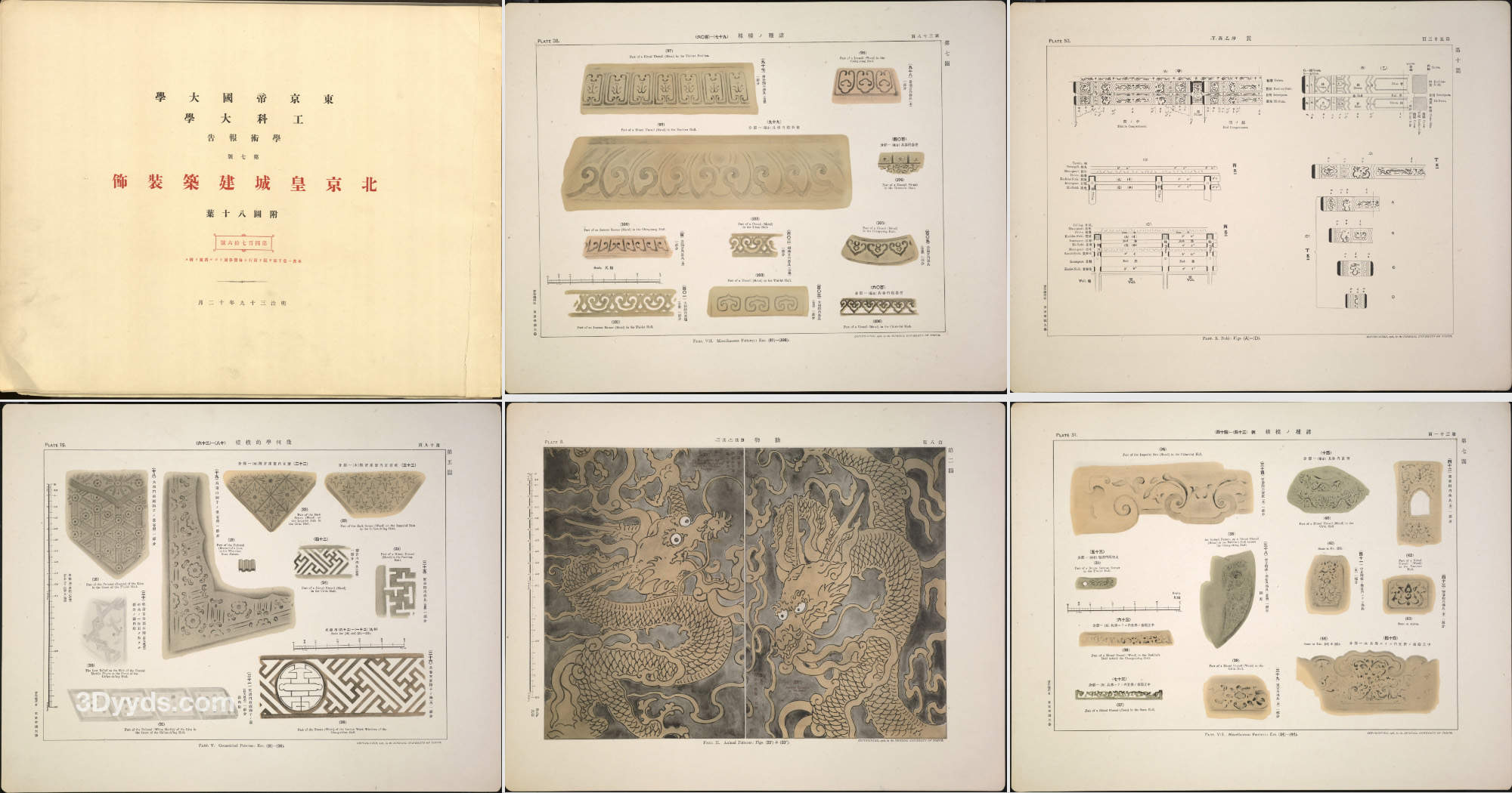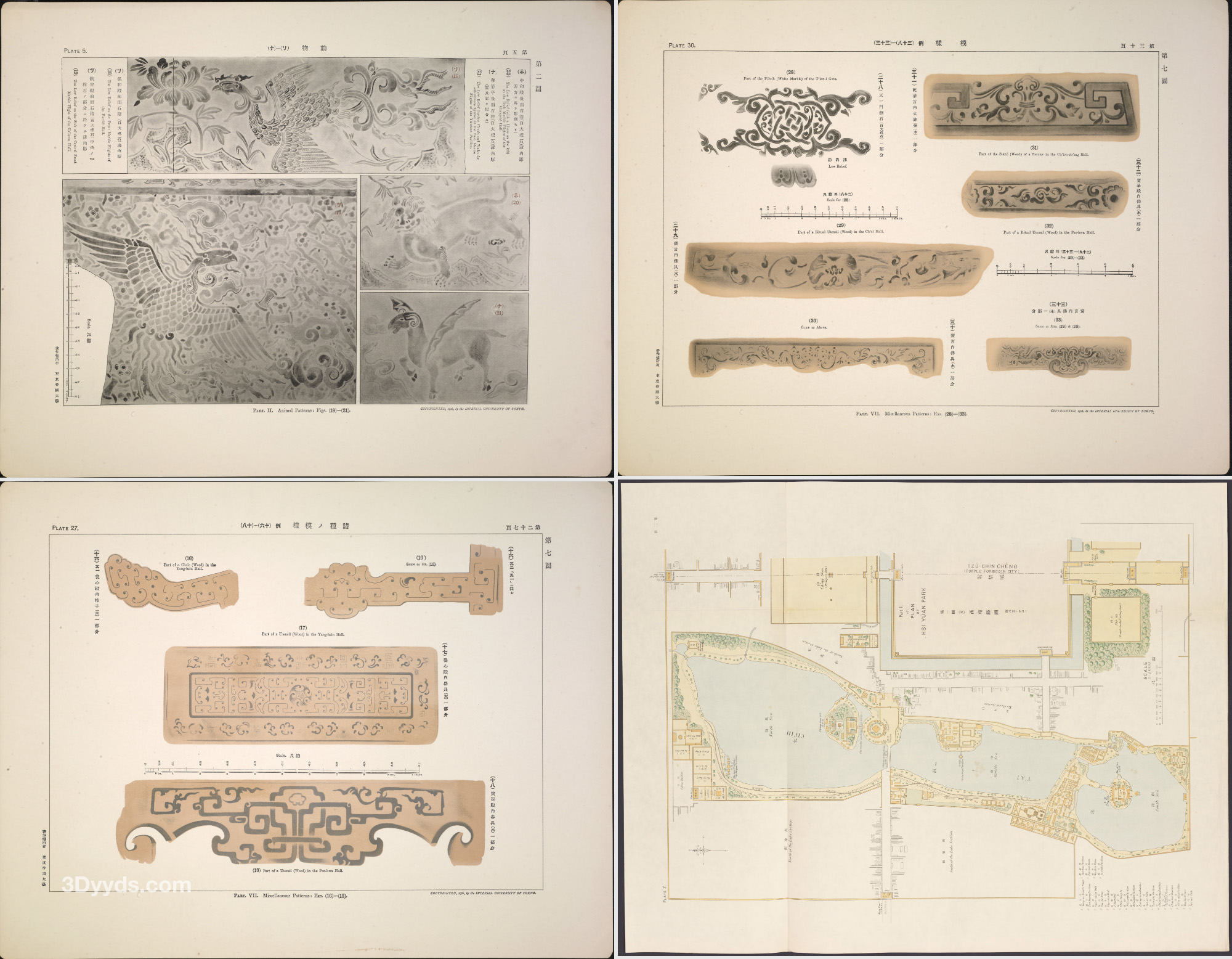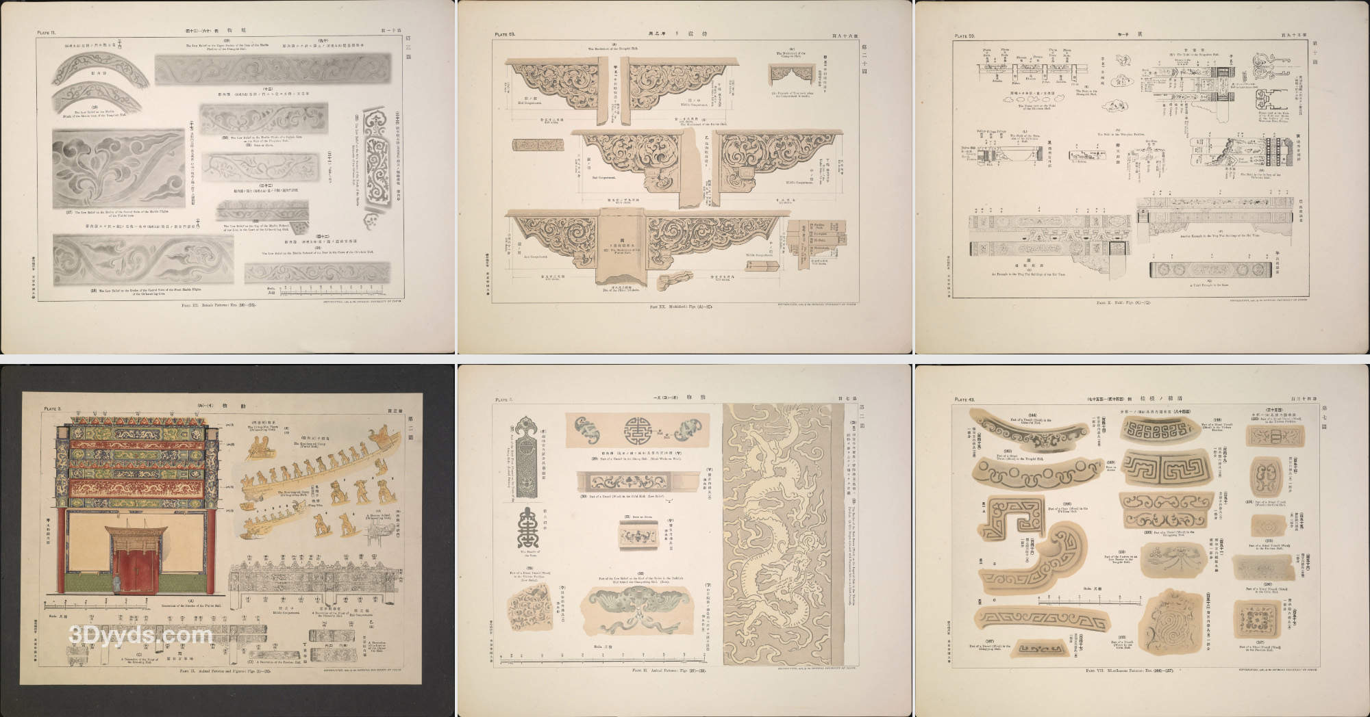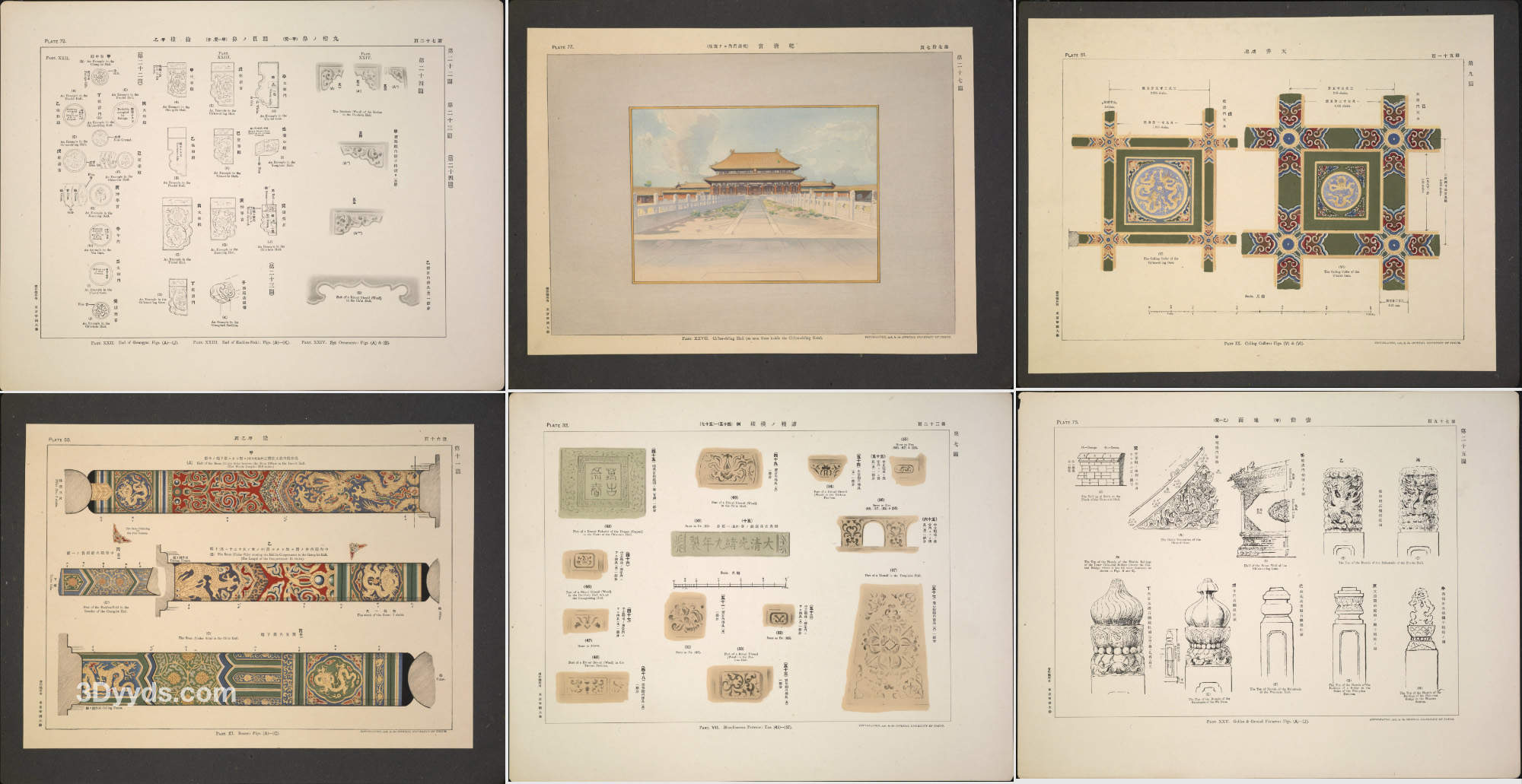 北京皇城建筑装饰图样古代建筑手绘图北京皇城故宫纹样彩绘图素材