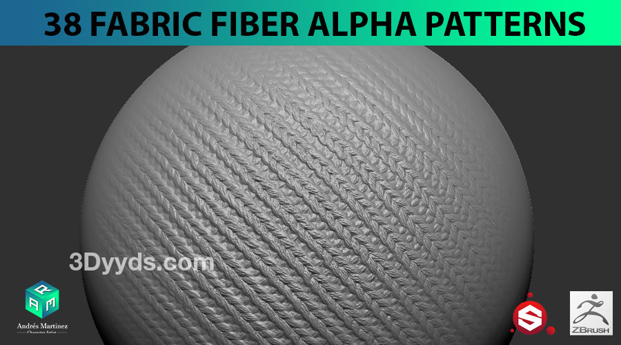 此包包含 38 个 2048x2048 像素的 Alpha 贴图,可在 Zbrush 和 Substance Painter 中为您的布料添加纳米细节。