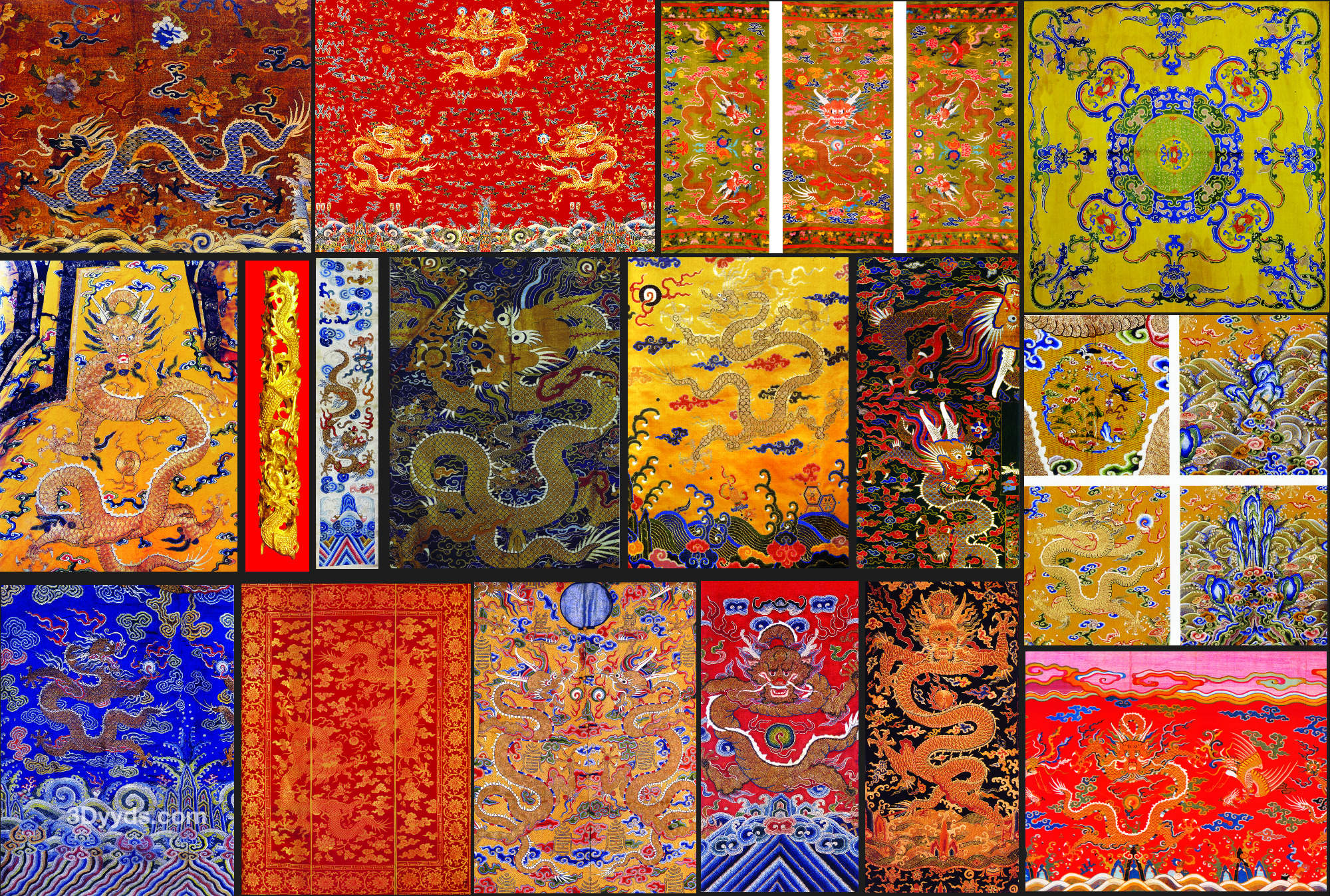 中国古代传统元素龙纹龙袍皇帝服装刺绣元素