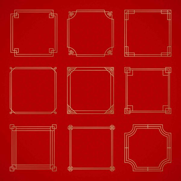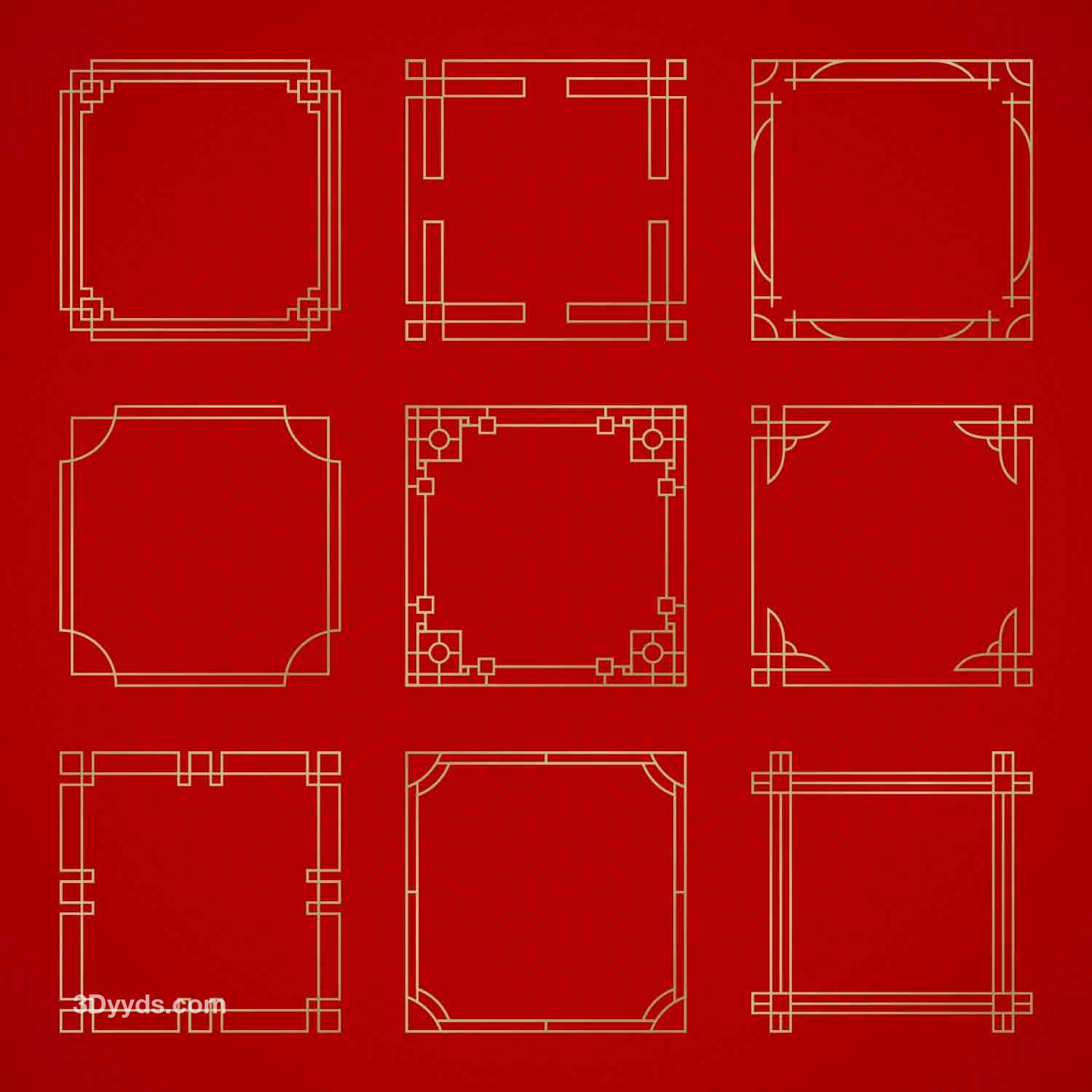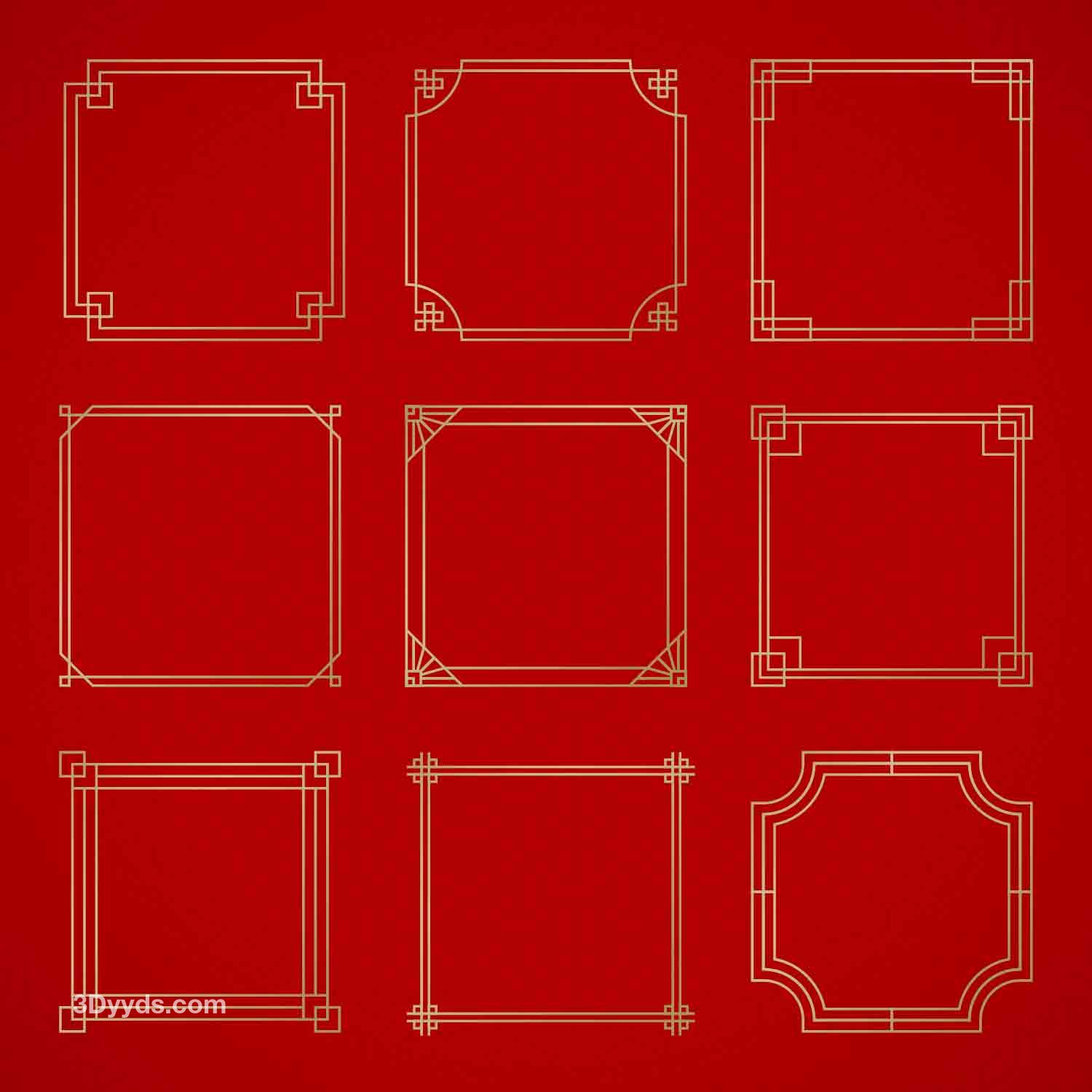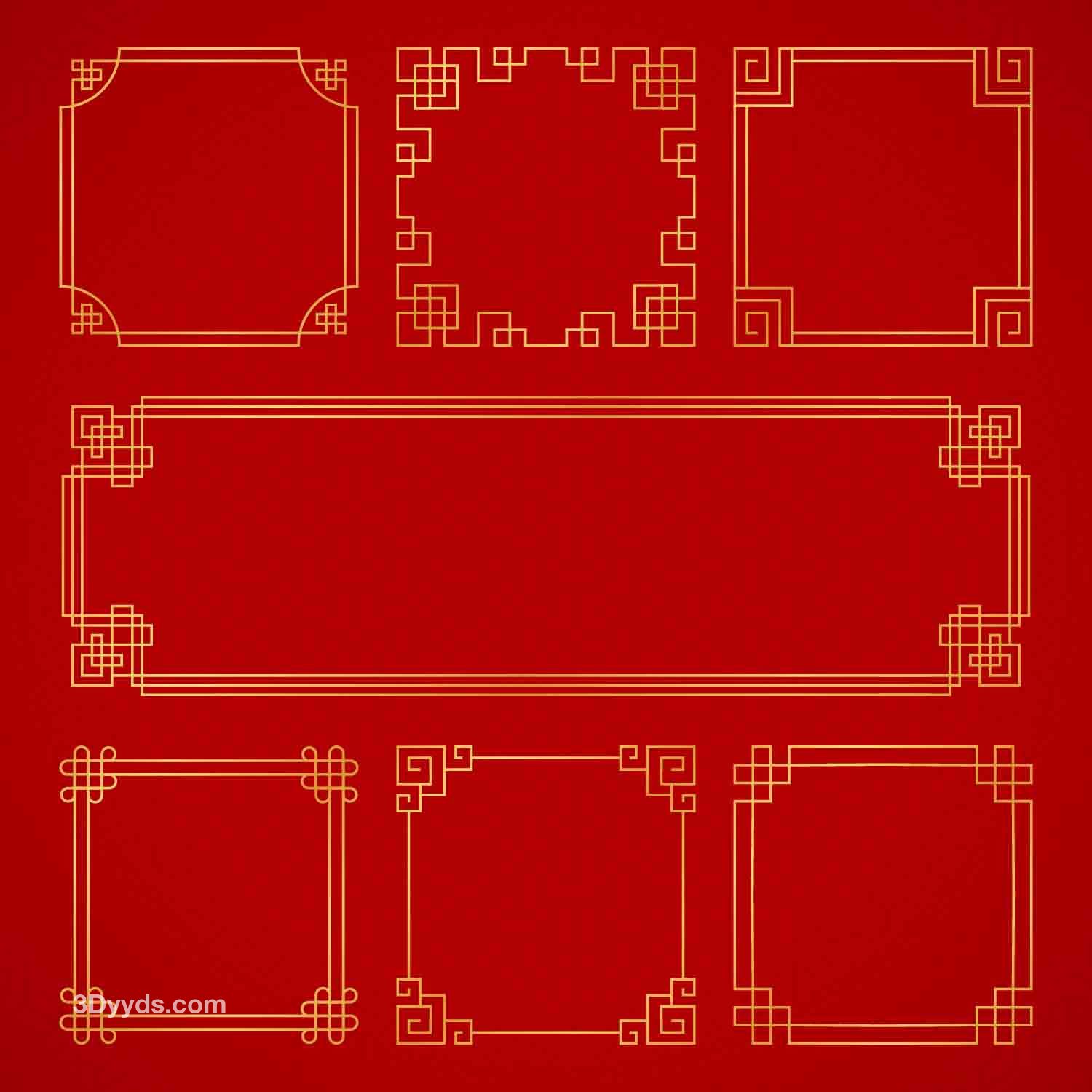 中式中国风装饰中国结边框正方形文字框贴边图案点缀纹样矢量素材