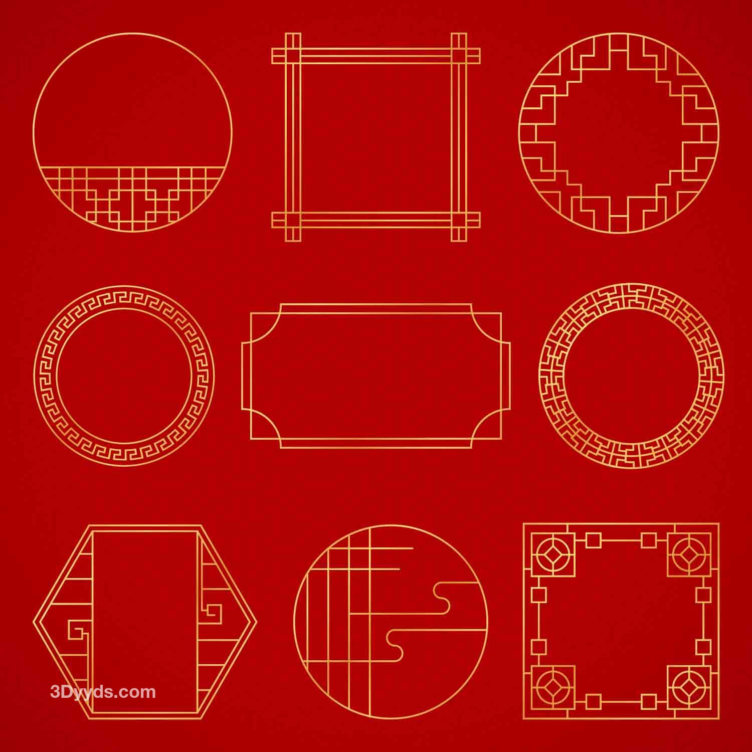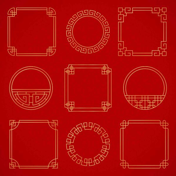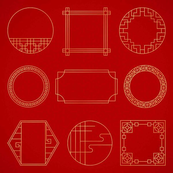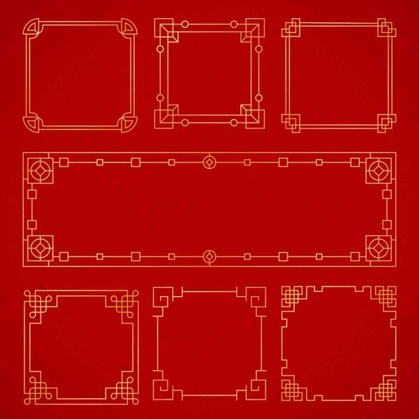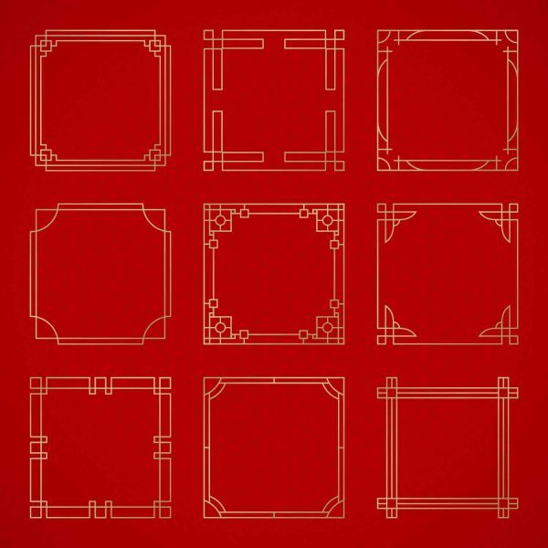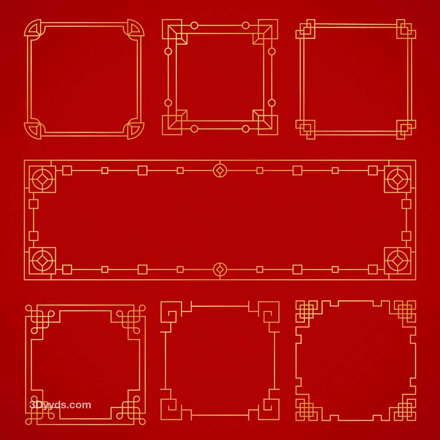 中式中国风装饰中国结边框正方形文字框贴边图案点缀纹样矢量素材