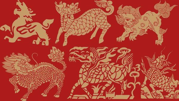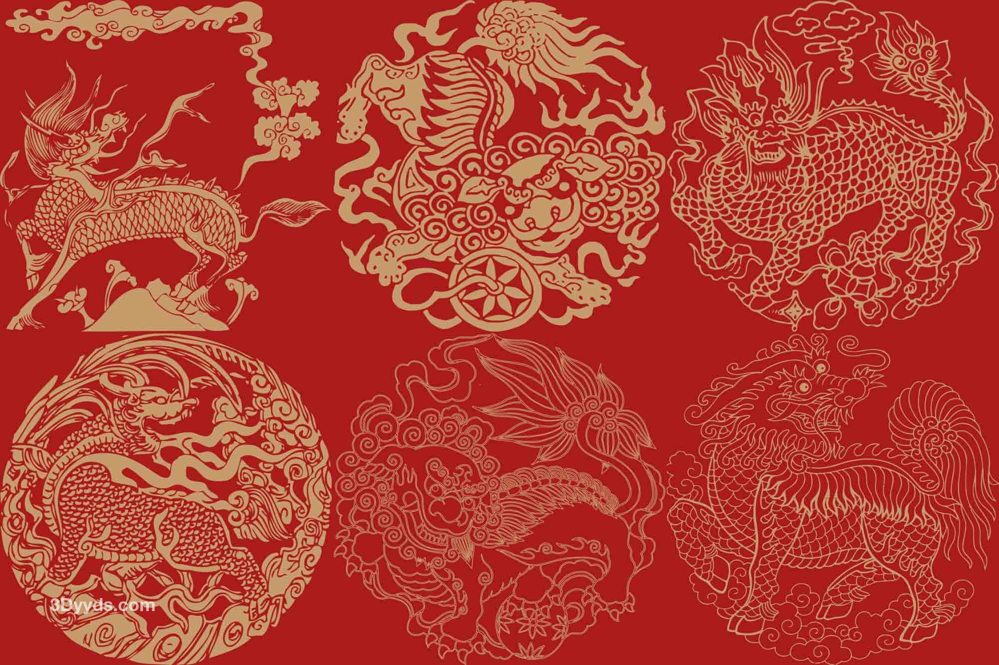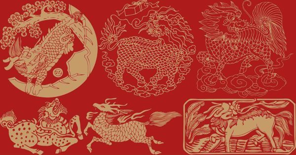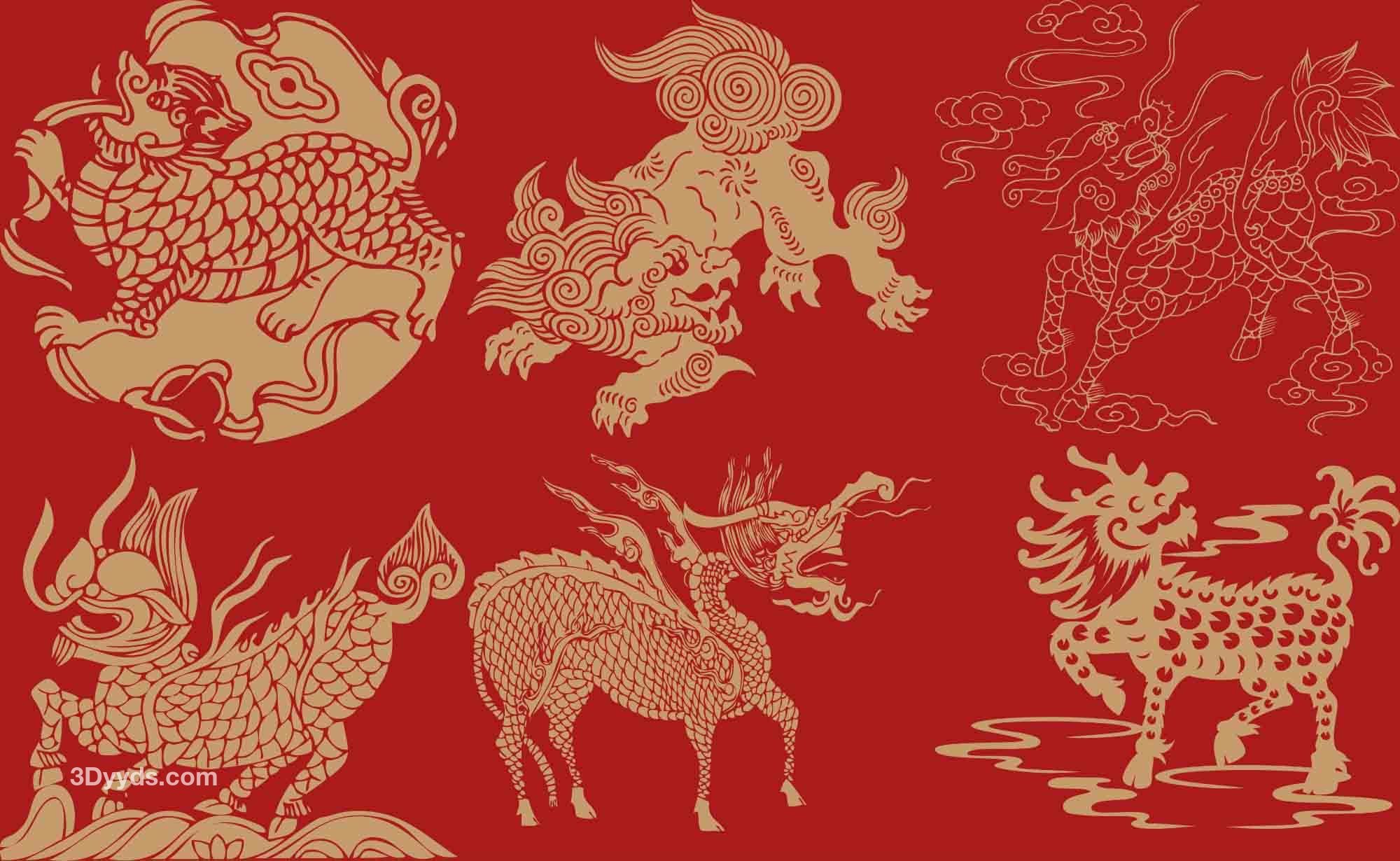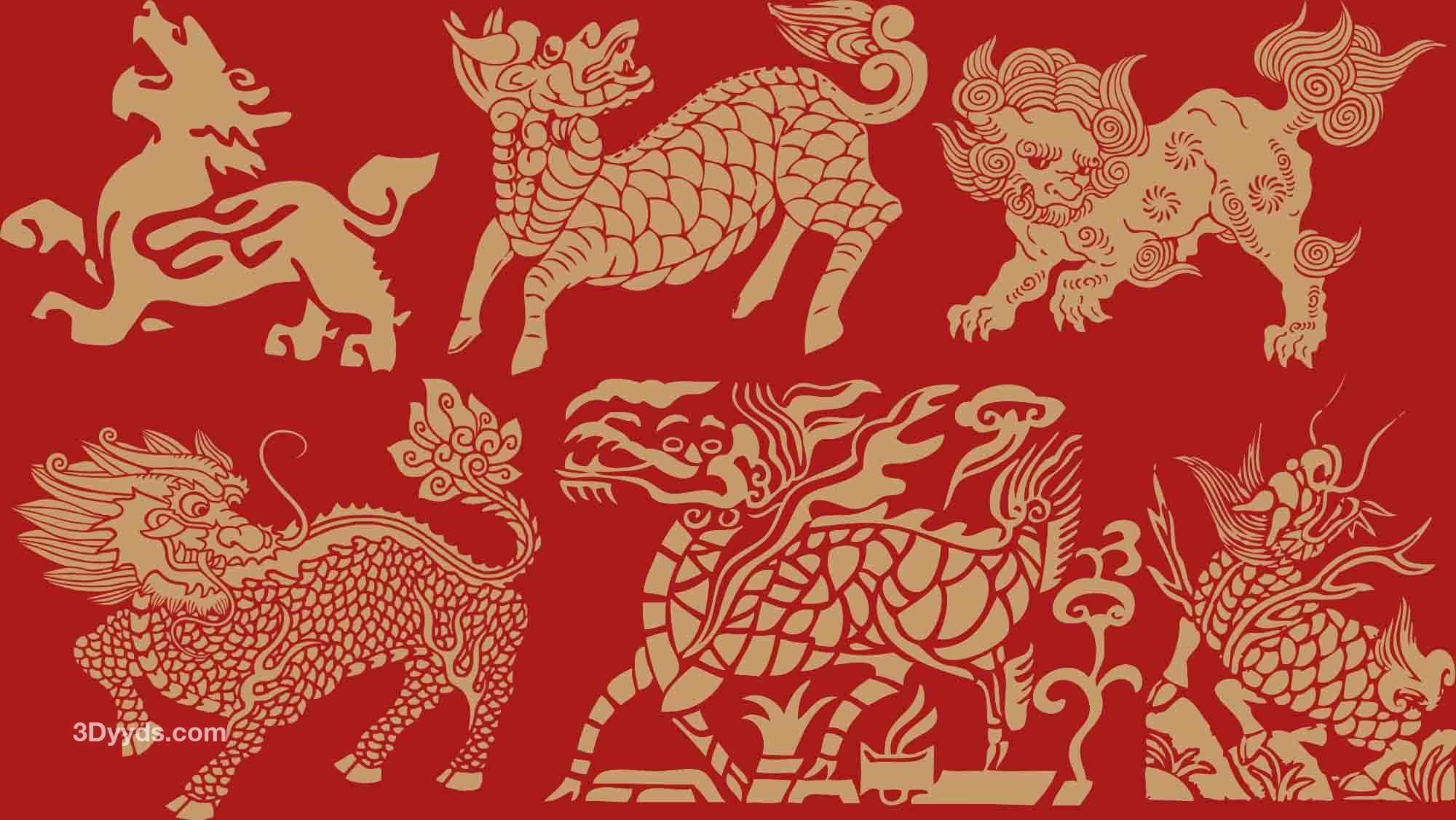 中国传统麒麟狮子神话神兽图案剪纸纹样矢量素材png免抠素材