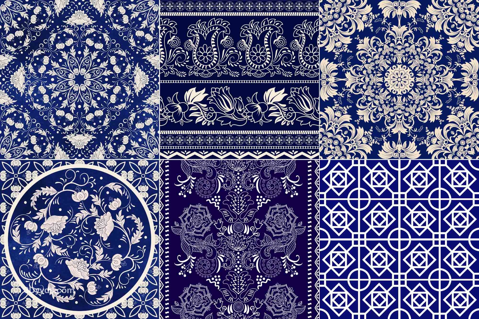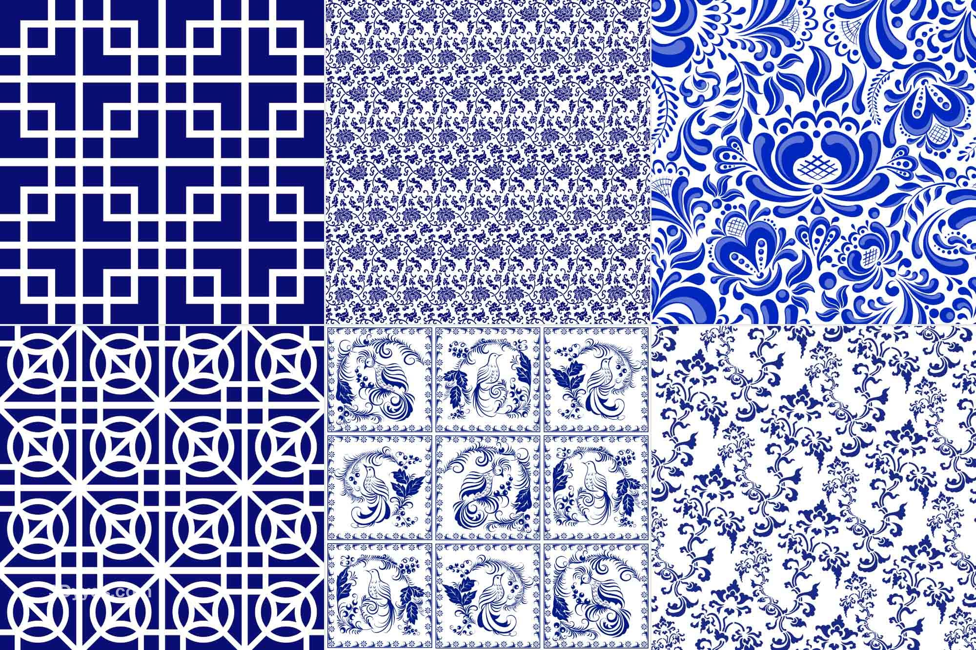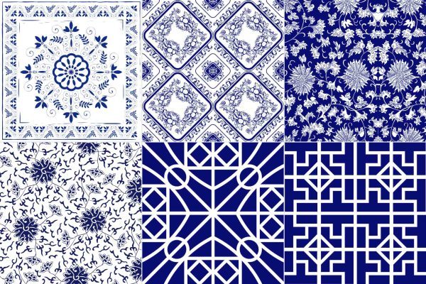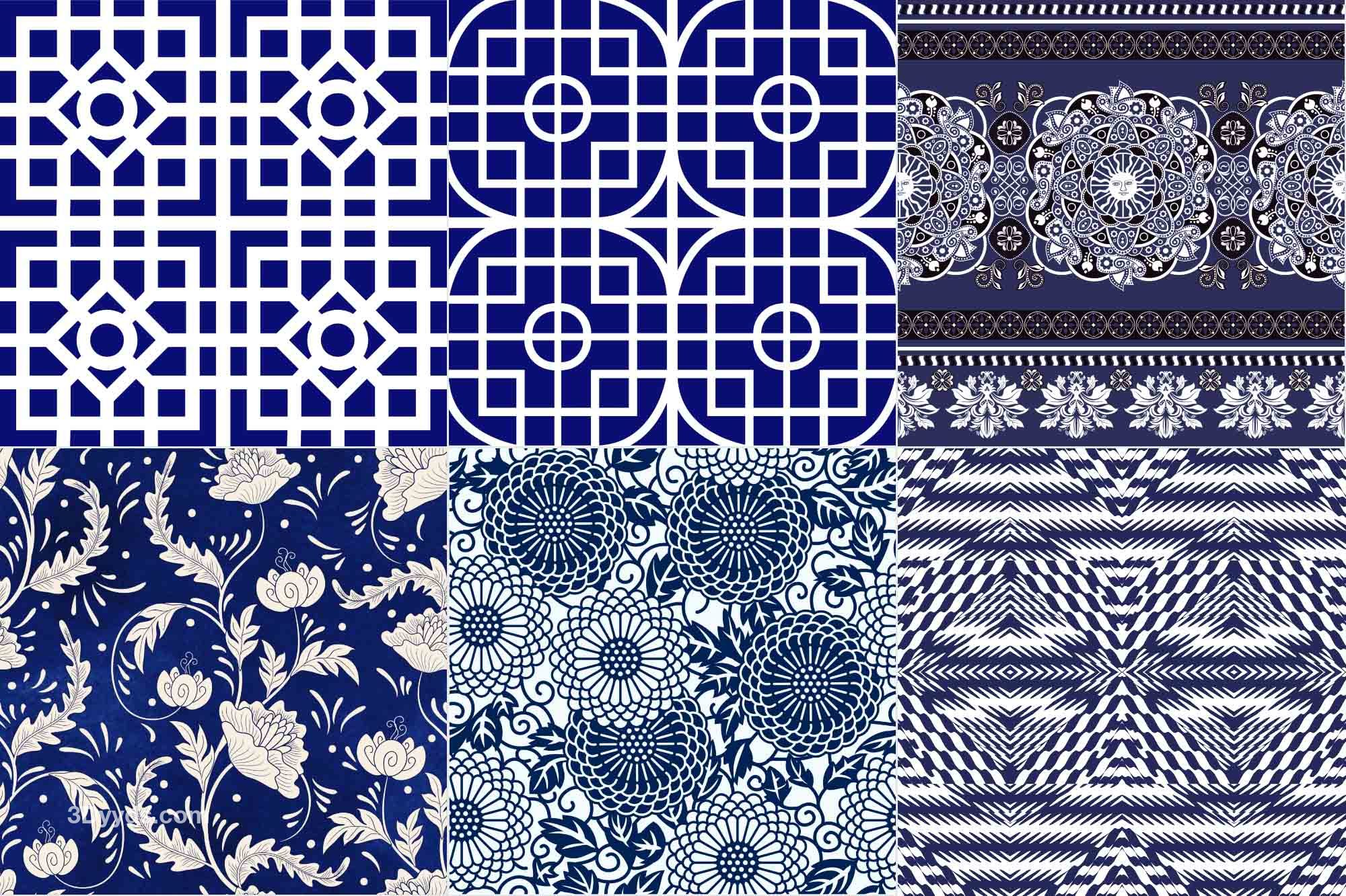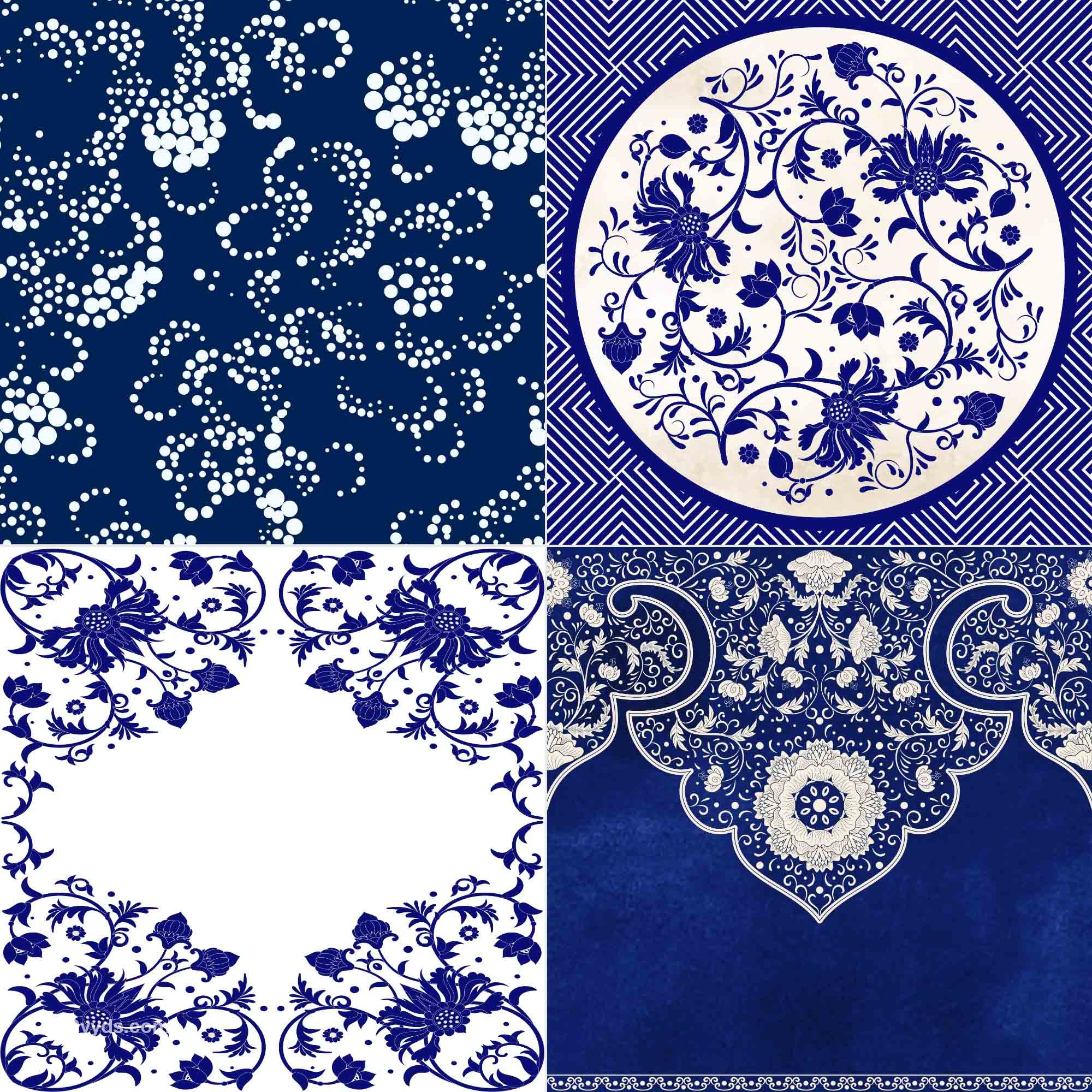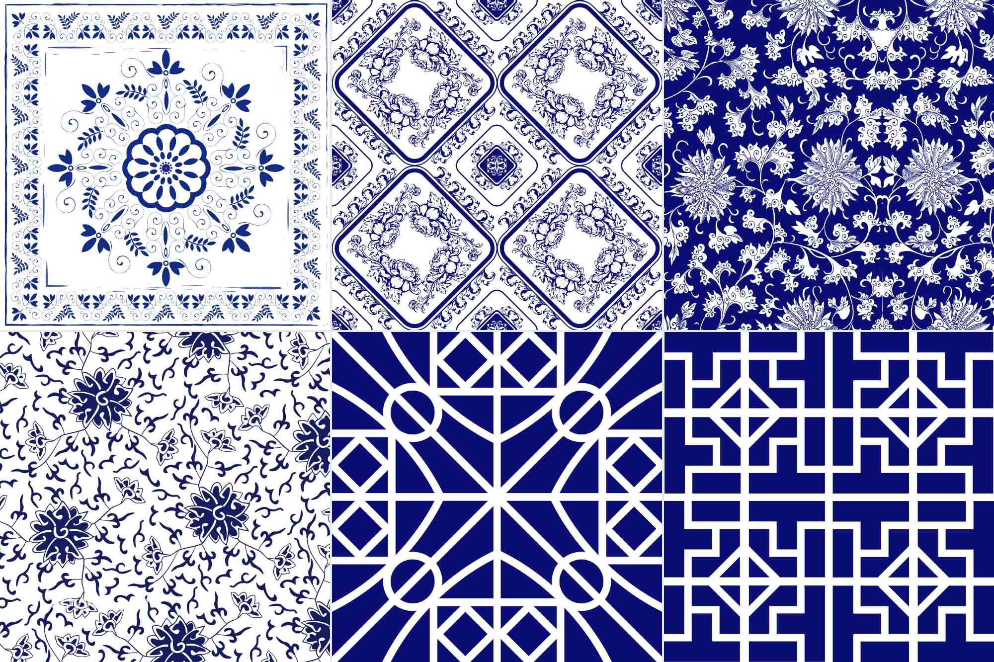 34款青花瓷图案花纹中国风图案祥云纹理传统图腾矢量AI模板素材