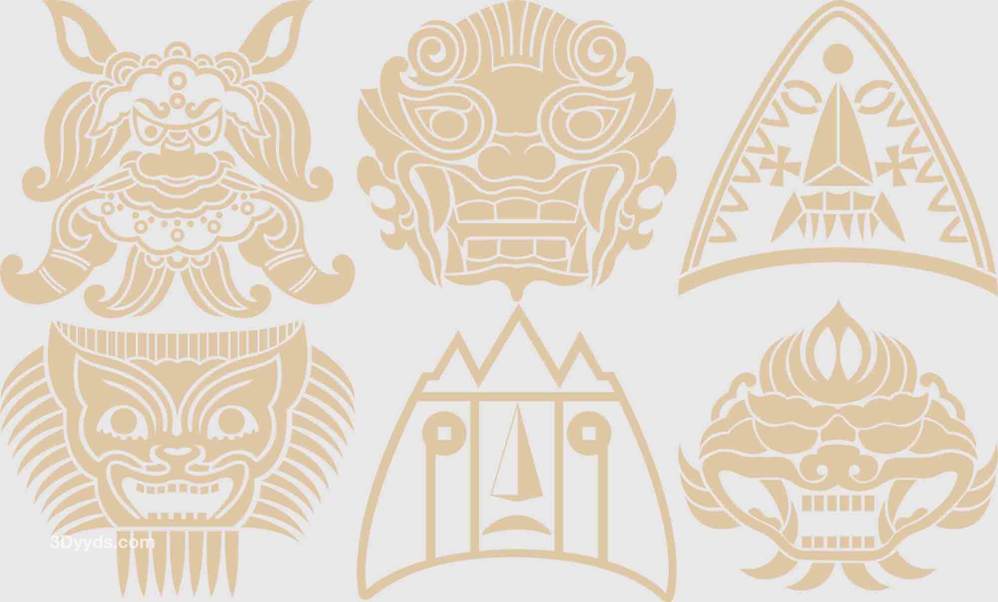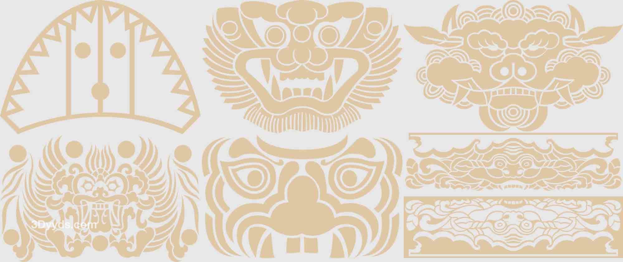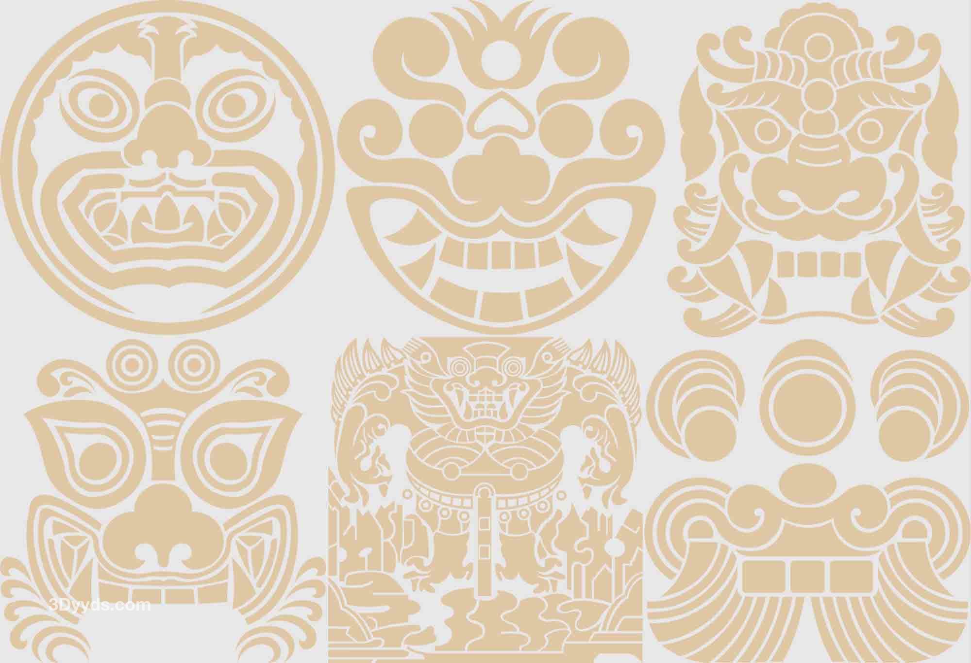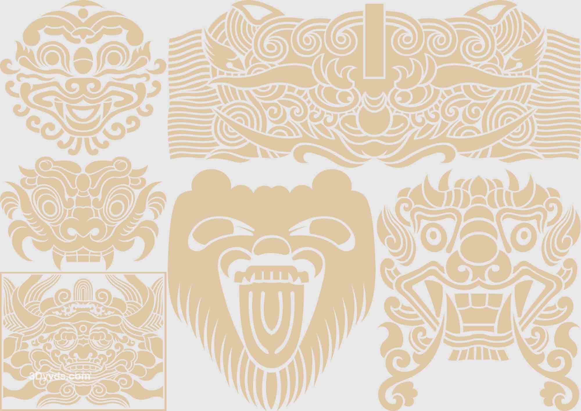 传统古典兽头虎头狮头兽纹图腾装饰纹样图案AI矢量PNG面抠图素材