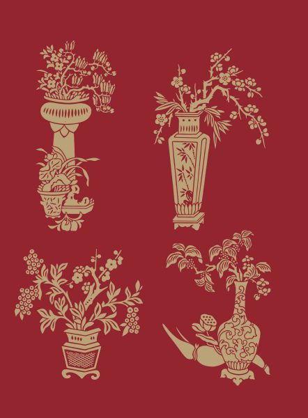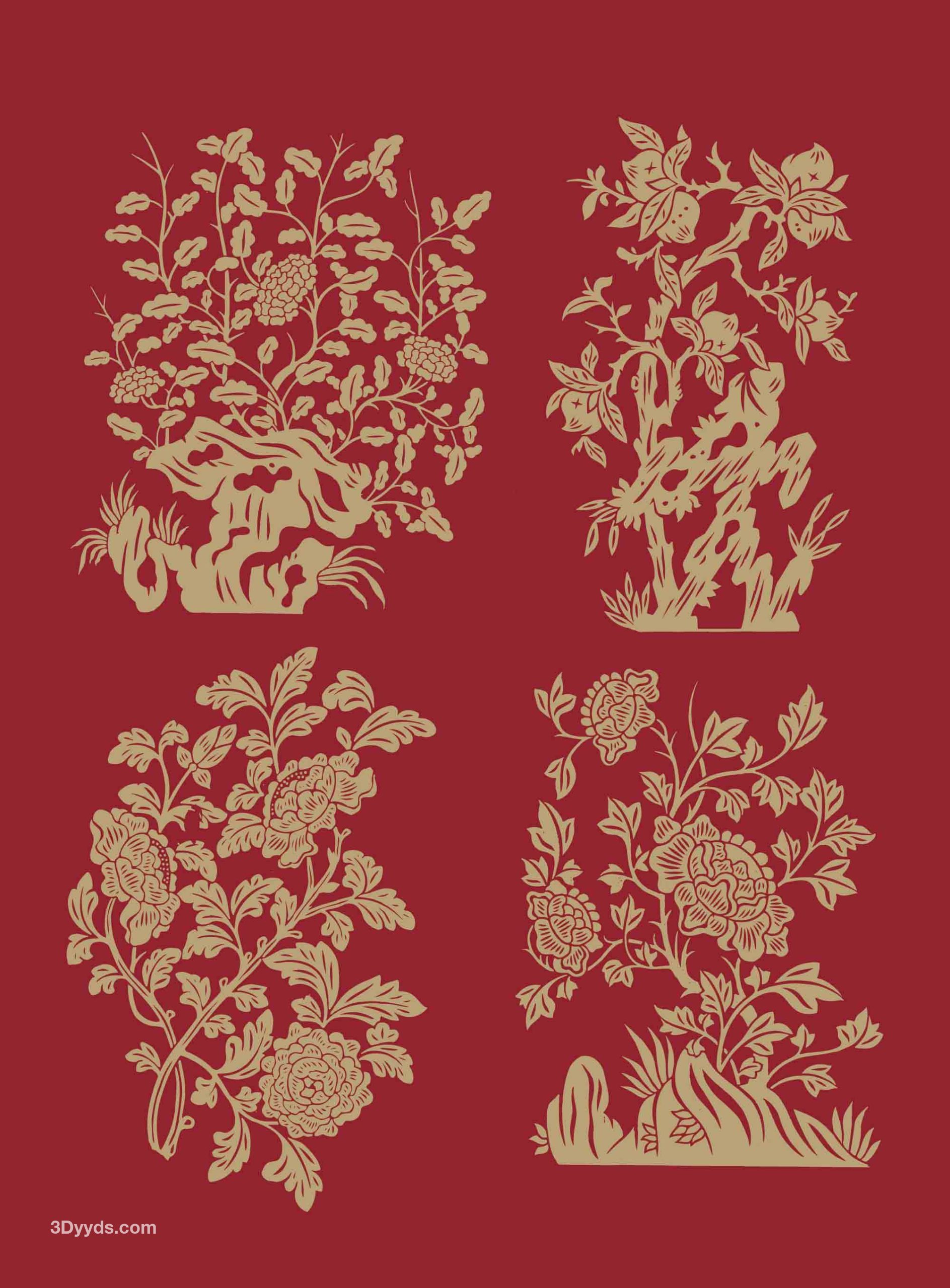 中式古代古典传统花草纹样花纹AI矢量中国风植物图案设计素材PNG
