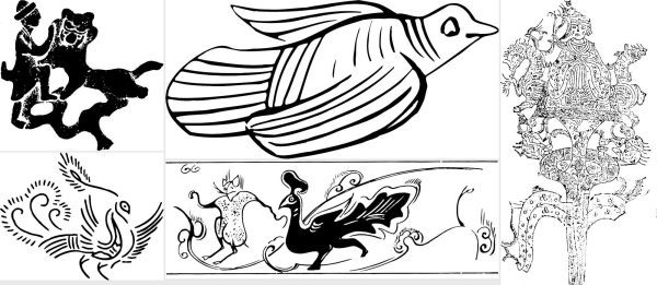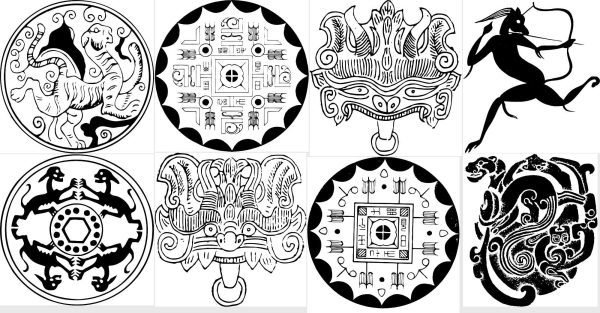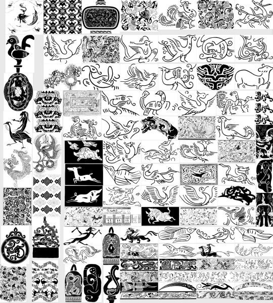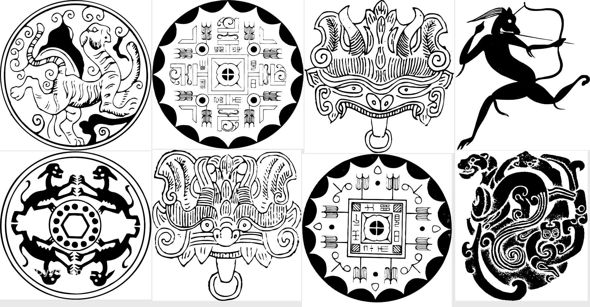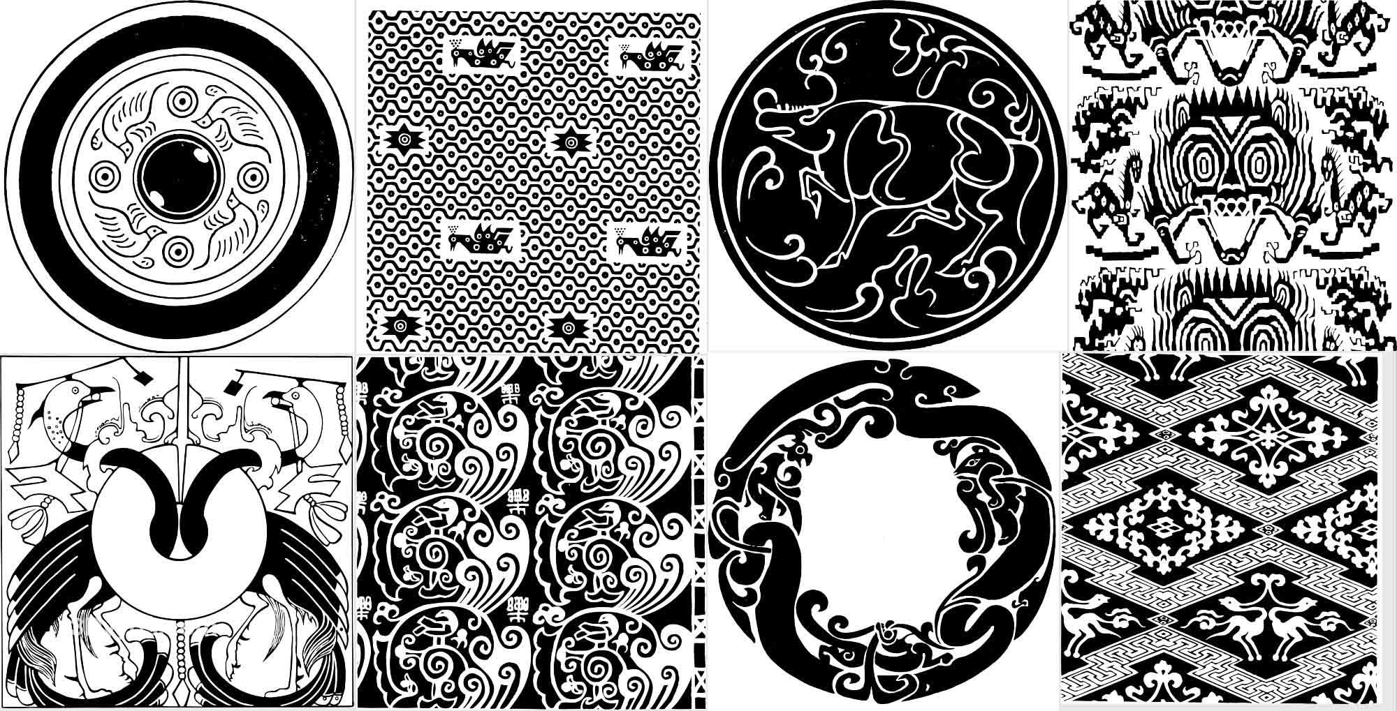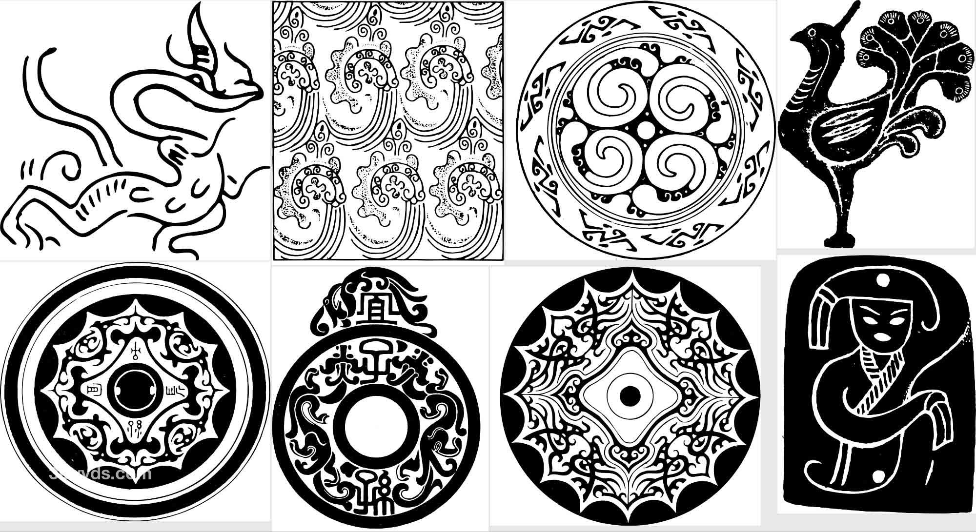 秦汉中国古朝代拓片神兽图腾装饰纹样花纹AI矢量免抠图案设计素材