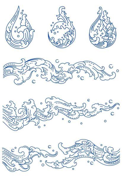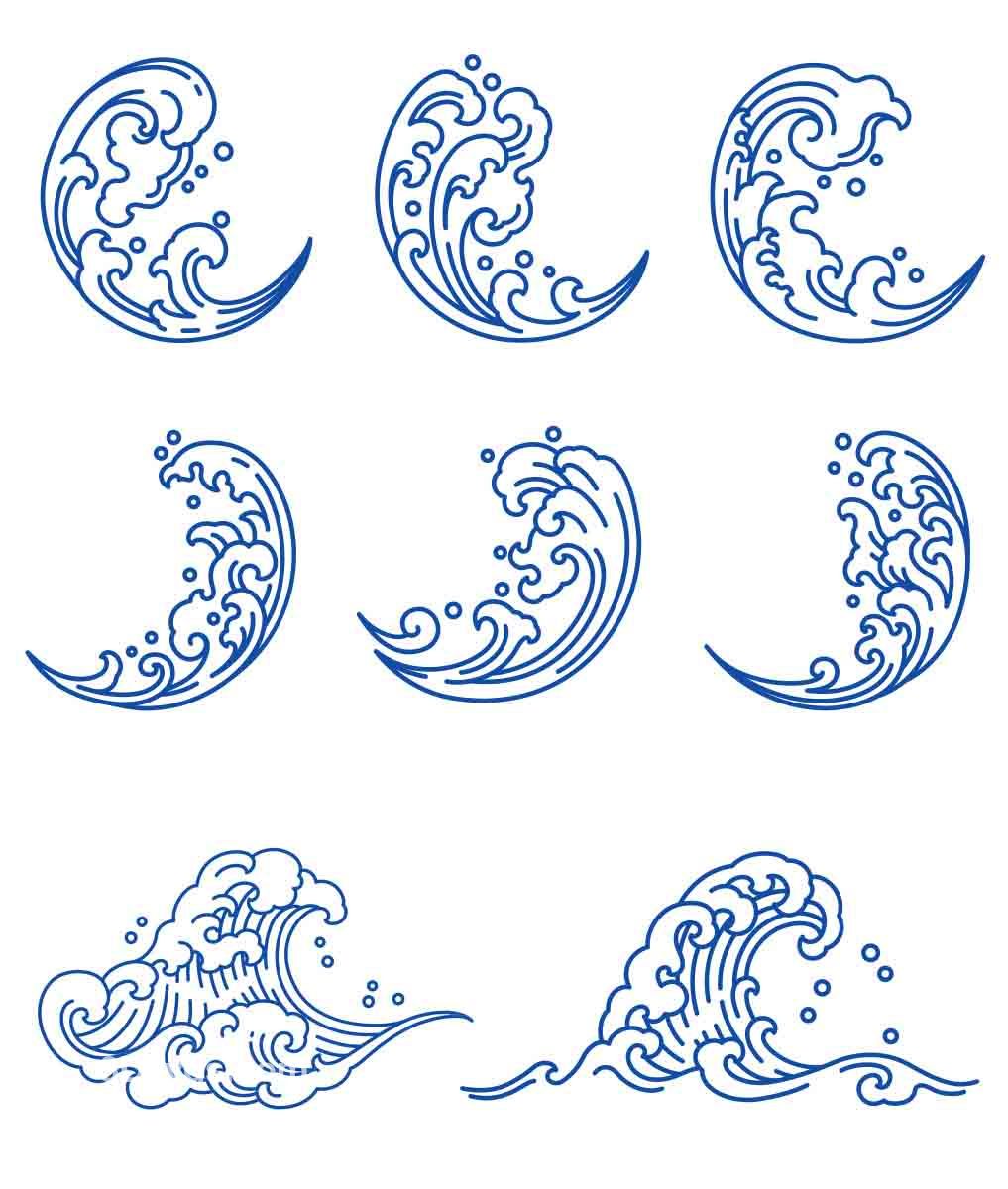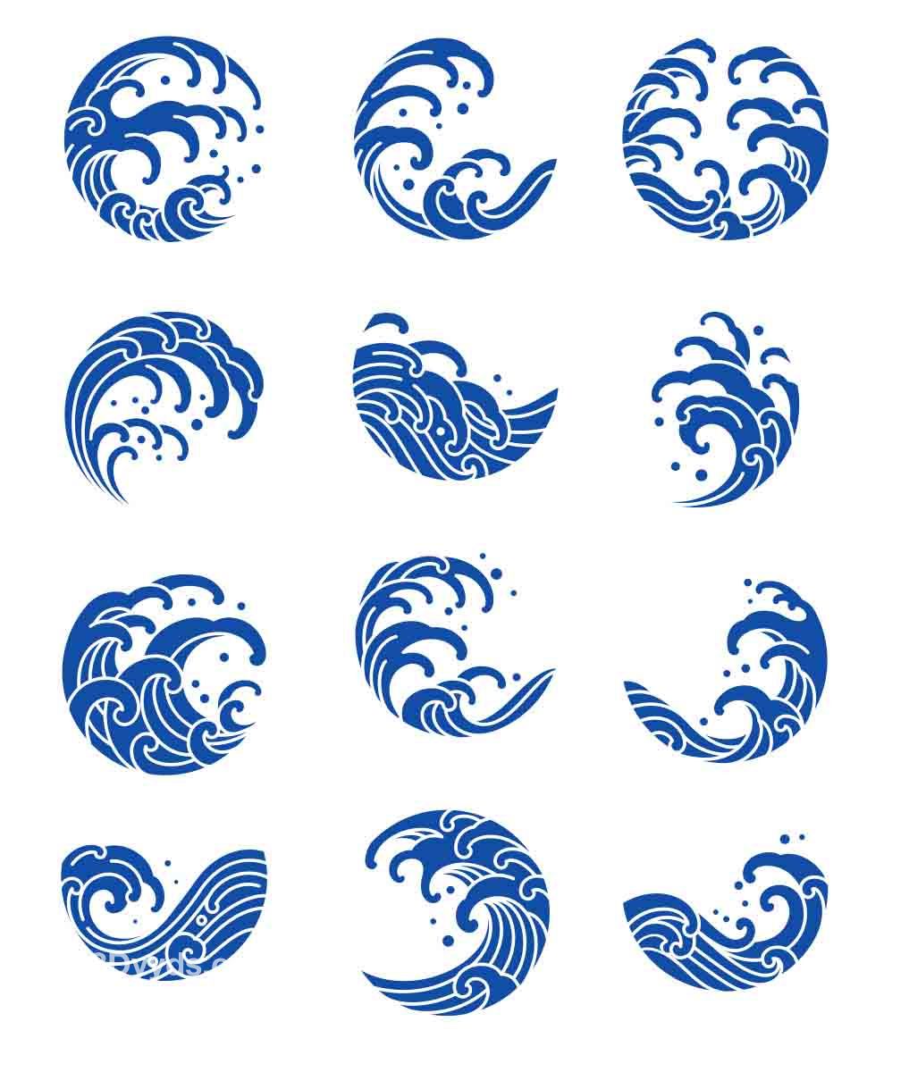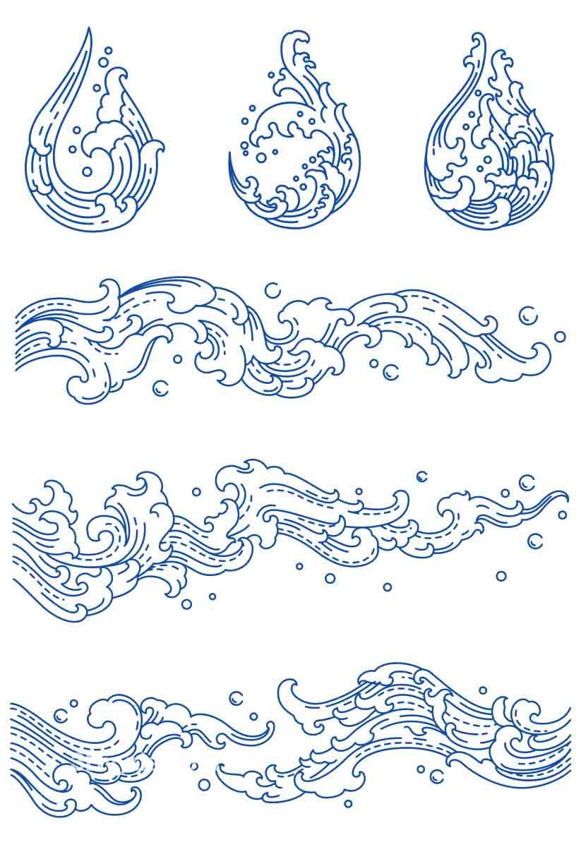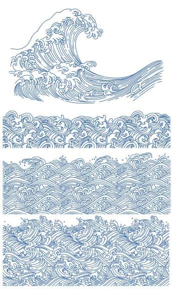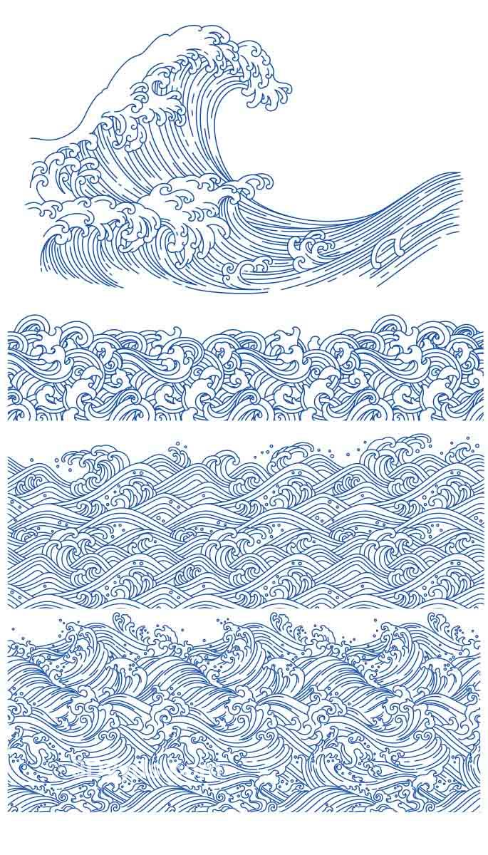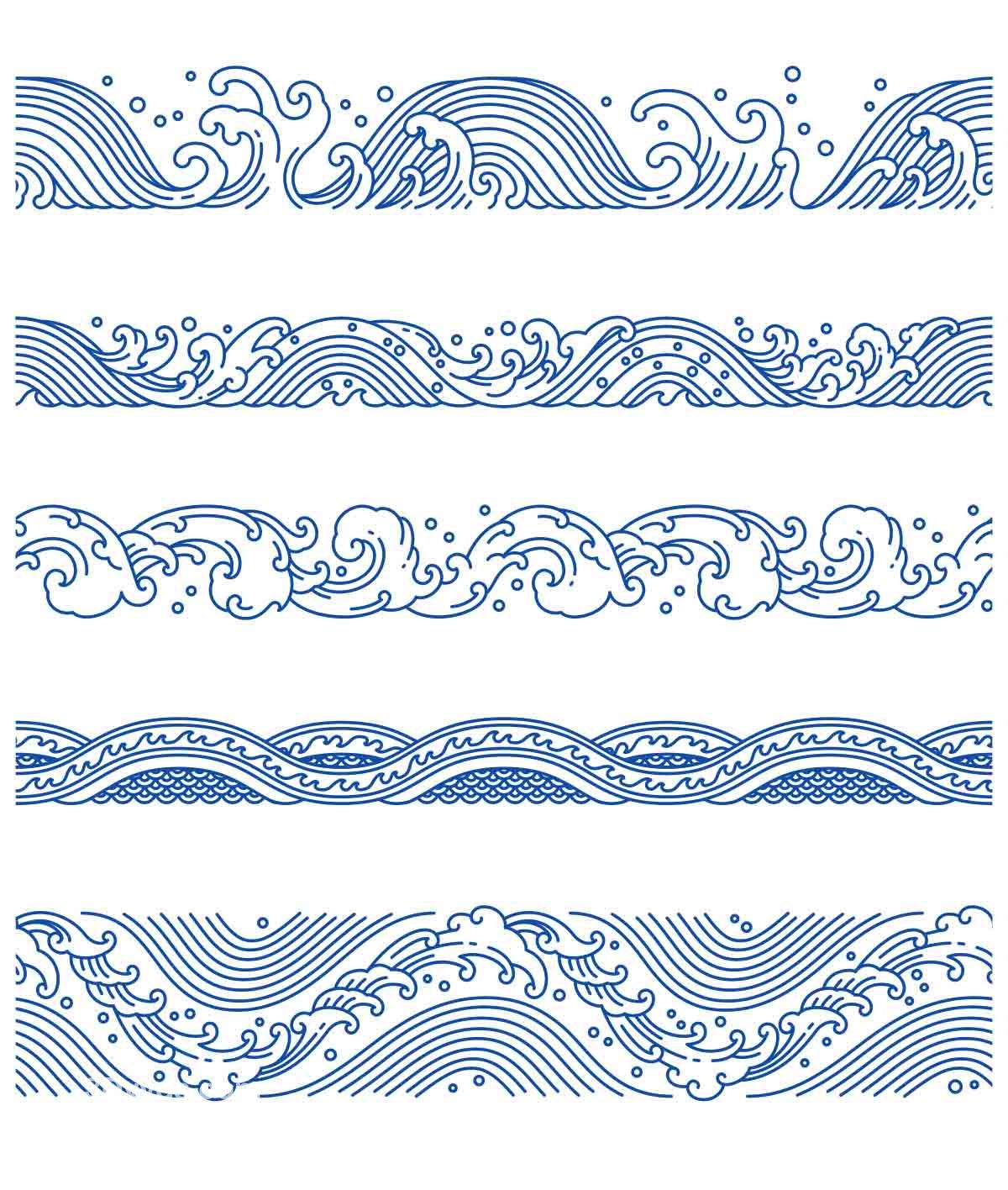 中式古风海浪波纹水纹图案东方古典纹样背景AI矢量设计素材PNG